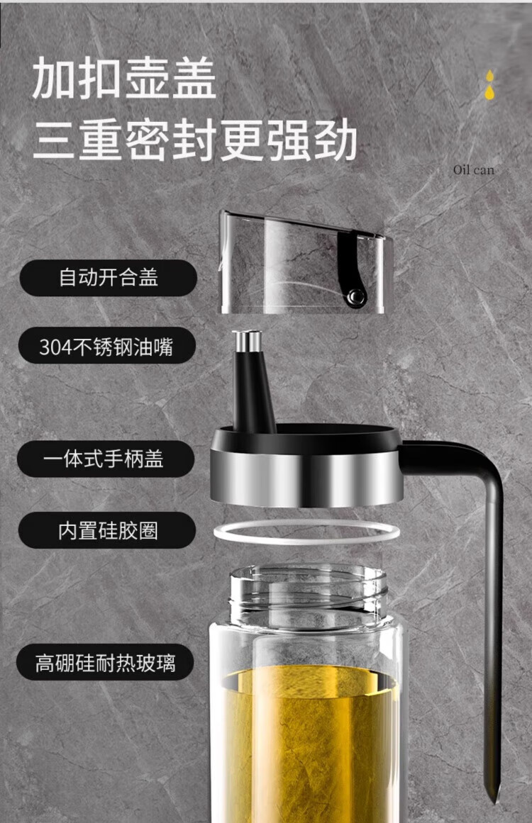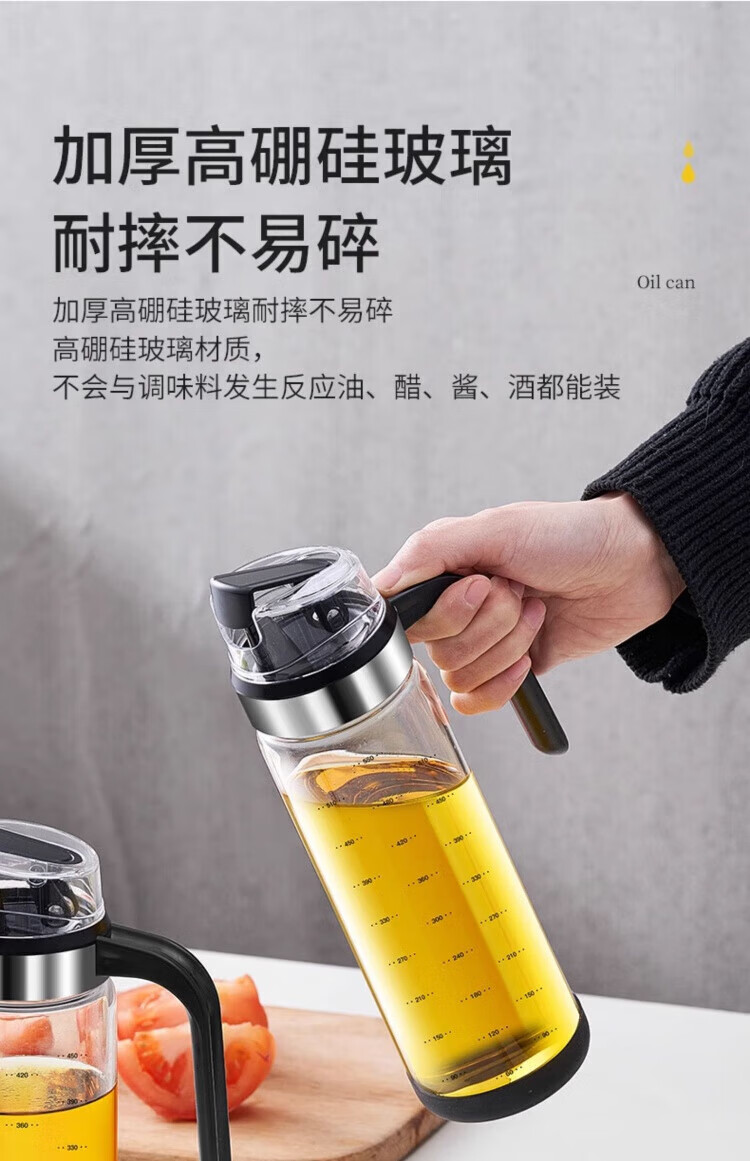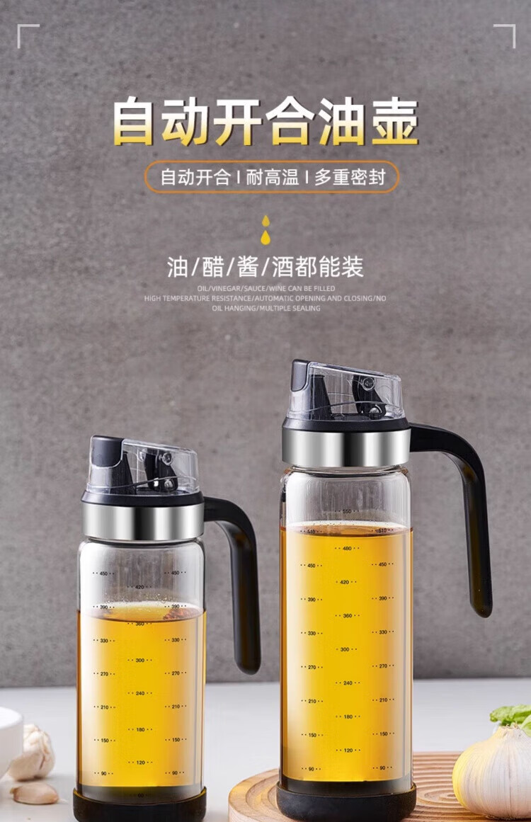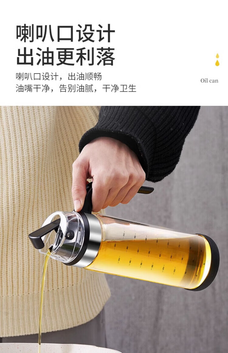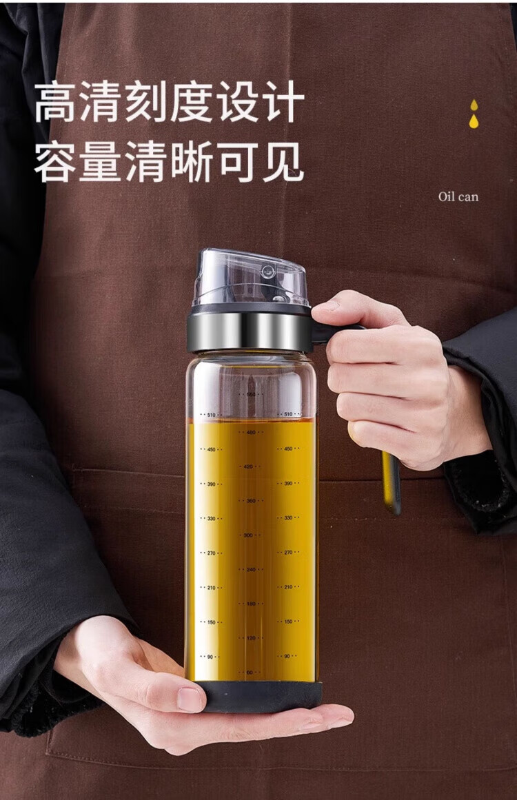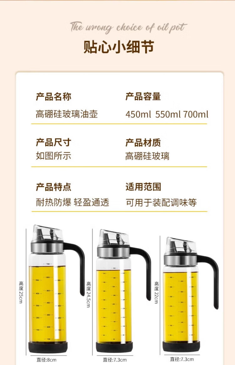 GERTHRON German oil pot kitchen special anti-leak spout food-grade glass oil bottle seasoning bottle soy sauce vinegar pouring oil bottle four-pack oil pot with label + anti-slip bottom ring 450ml