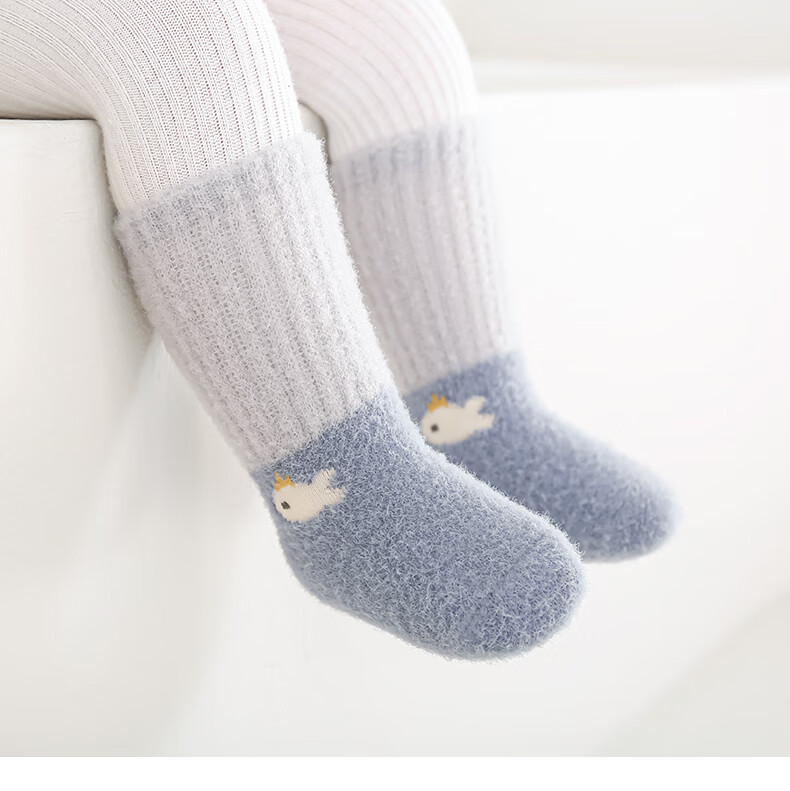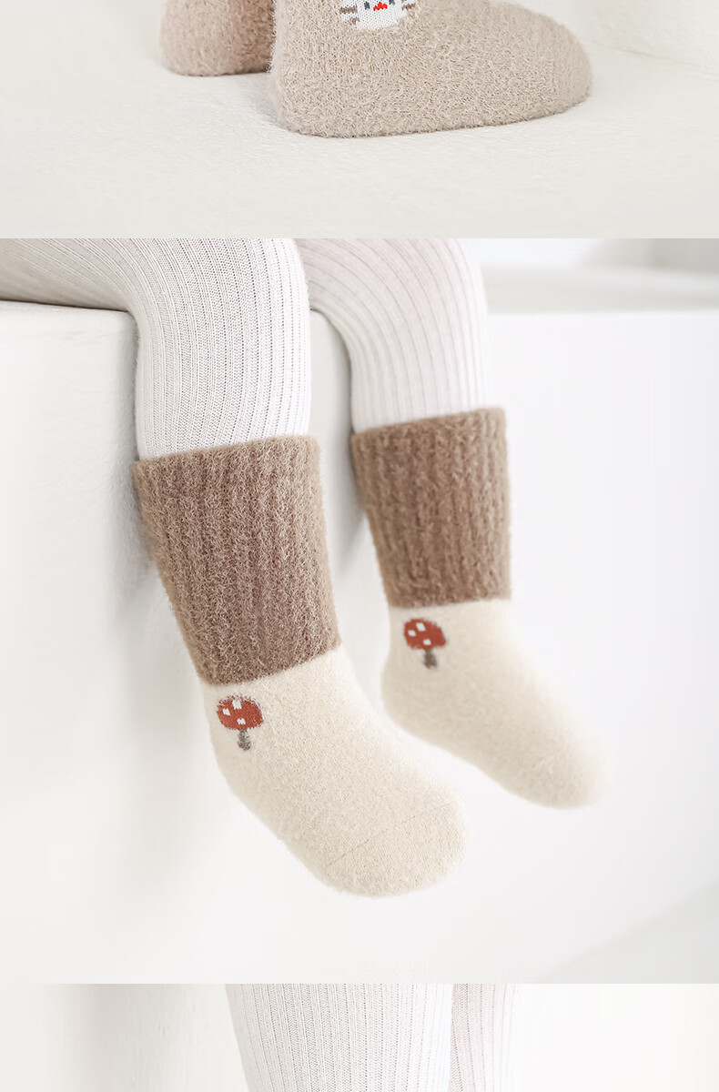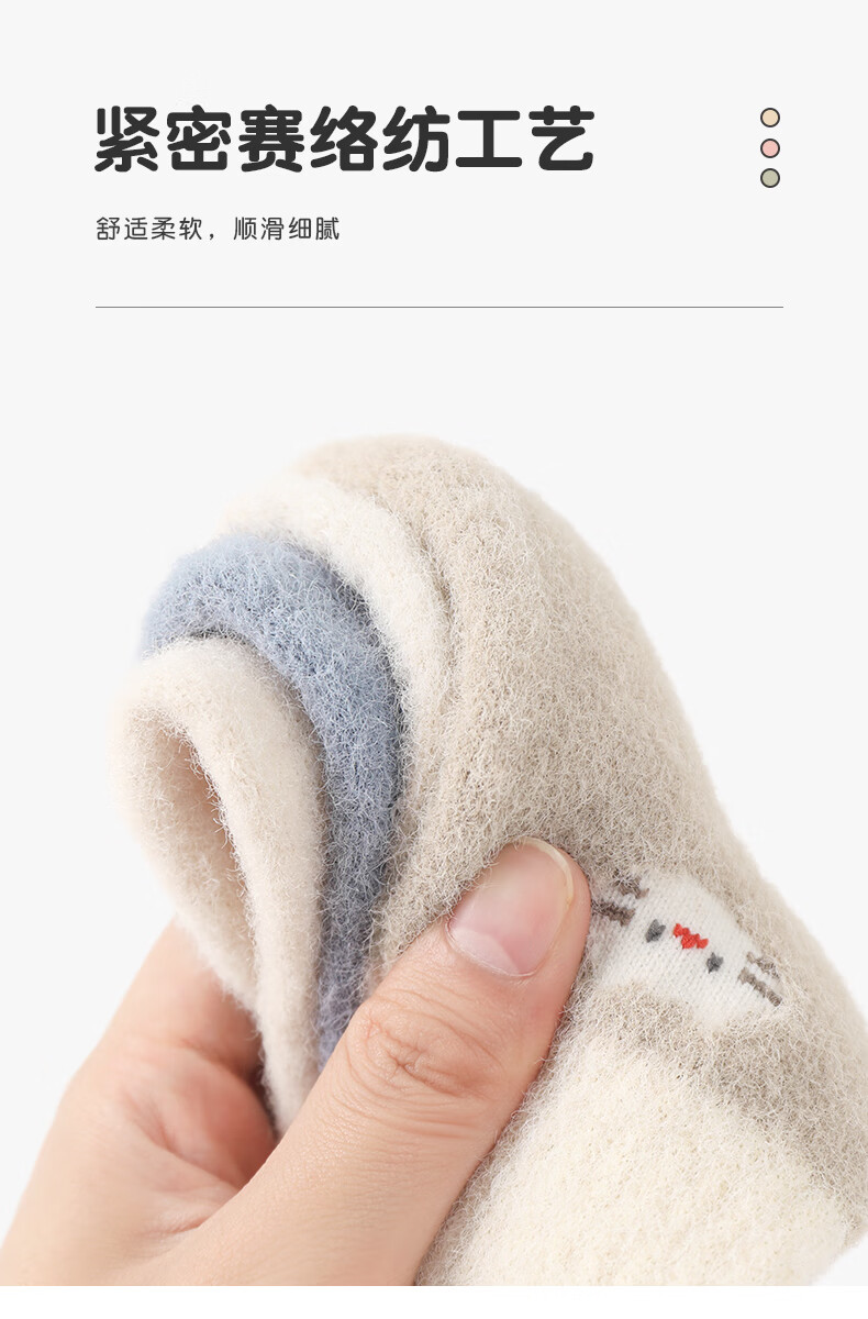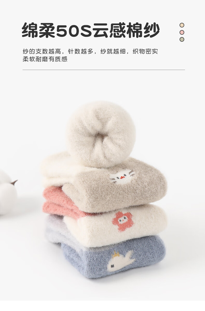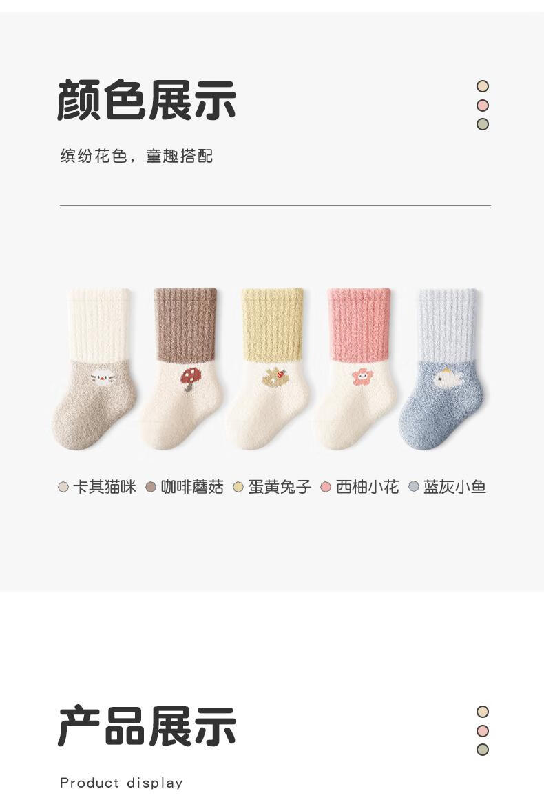 Fiyuega children's socks thickened and warm newborn baby autumn and winter plus velvet baby socks Category A mid-calf socks Blue and gray fish + khaki cat + coffee mushroom + egg yolk rabbit 0-6 months (S) recommended foot length 7-9cm