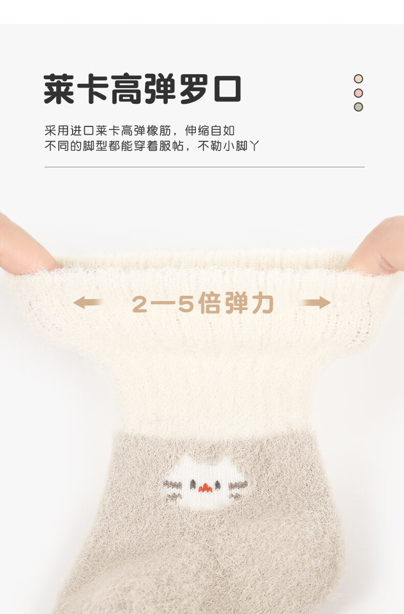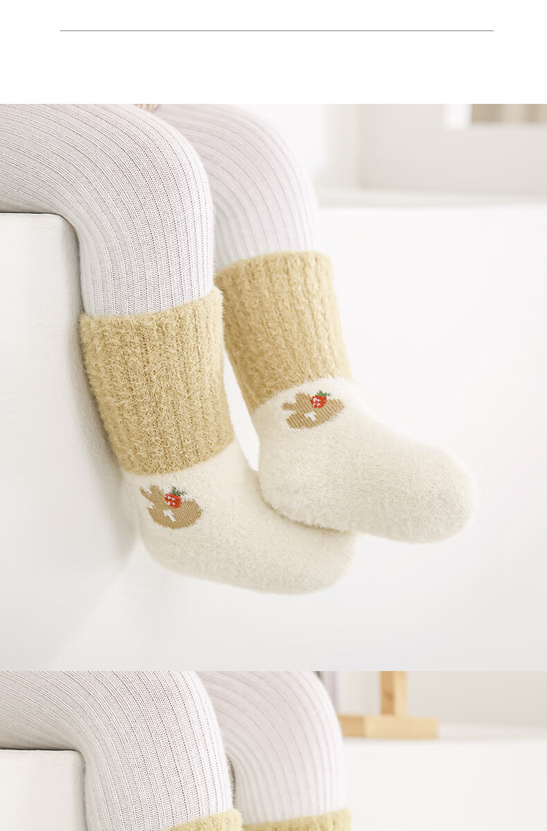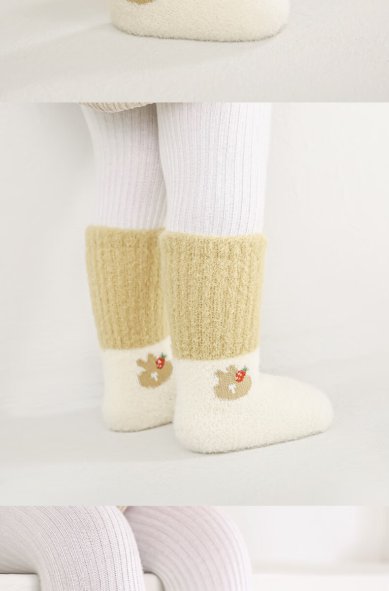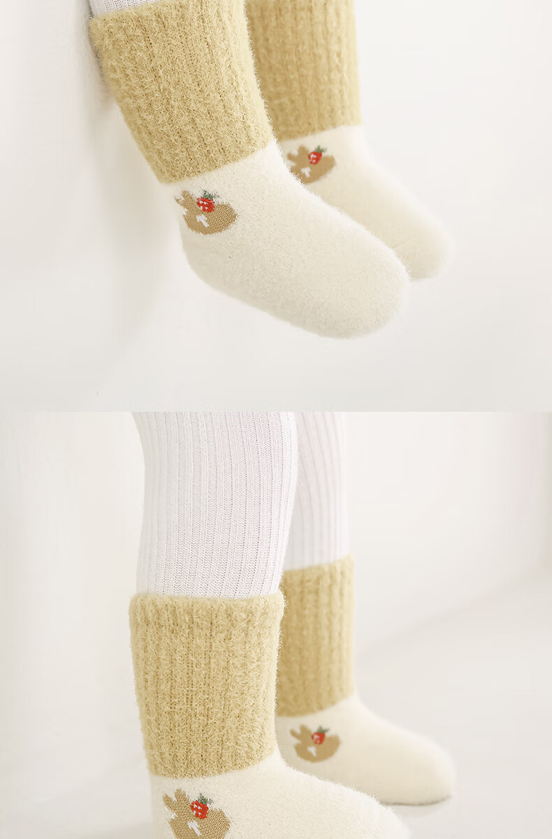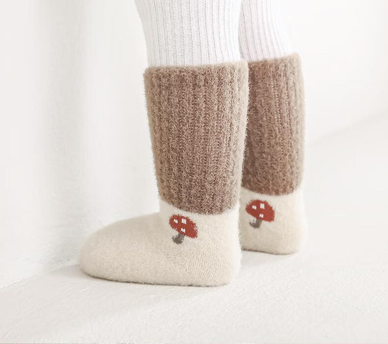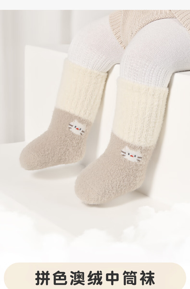 Fiyuega children's socks thickened and warm newborn baby autumn and winter plus velvet baby socks Category A mid-calf socks Blue and gray fish + khaki cat + coffee mushroom + egg yolk rabbit 0-6 months (S) recommended foot length 7-9cm