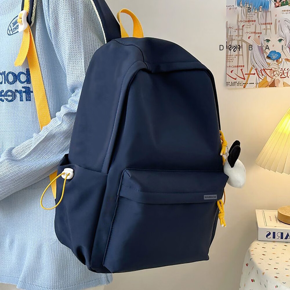 Krieger-Studenten-Schultasche, weiblicher College-Student, einfacher vielseitiger Brief, Rucksack mit großer Kapazität, lässiger Campus, einfarbig, Pendler-Rucksack, blaue Einzeltasche