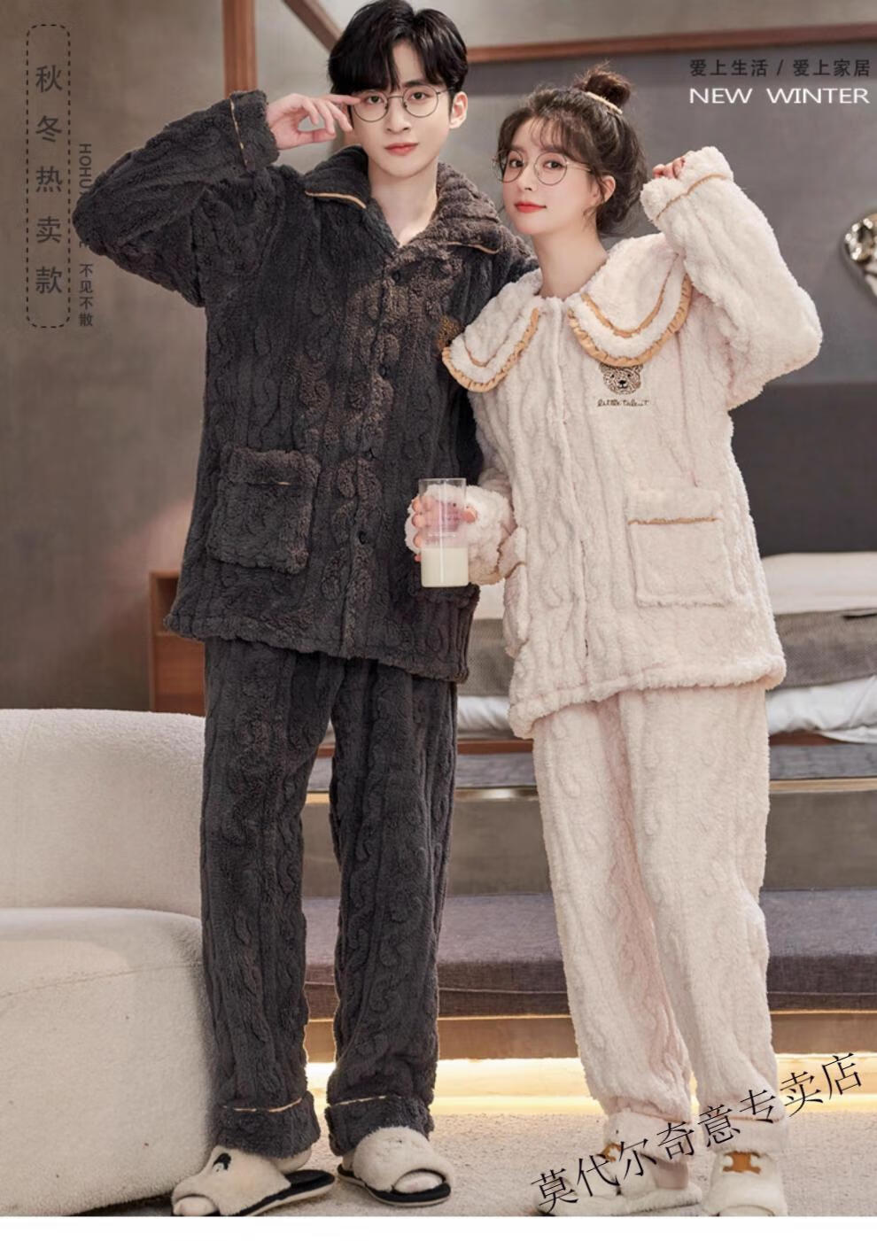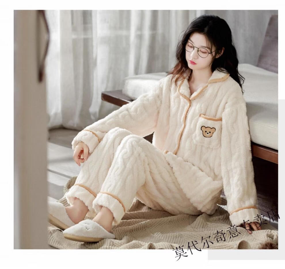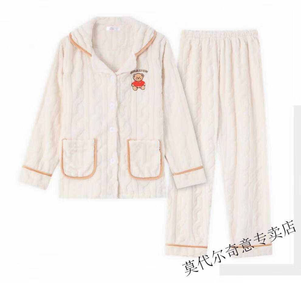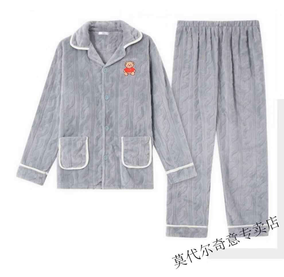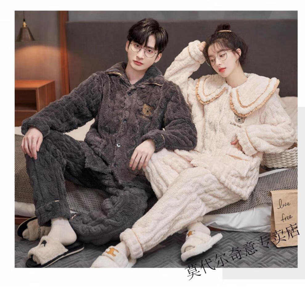 Modal couple pajamas autumn and winter style coral velvet thickened flannel women's cute men's home clothes can be worn outside the suit 0219+266 2 two sets of gentle style M women's style M men's style L size