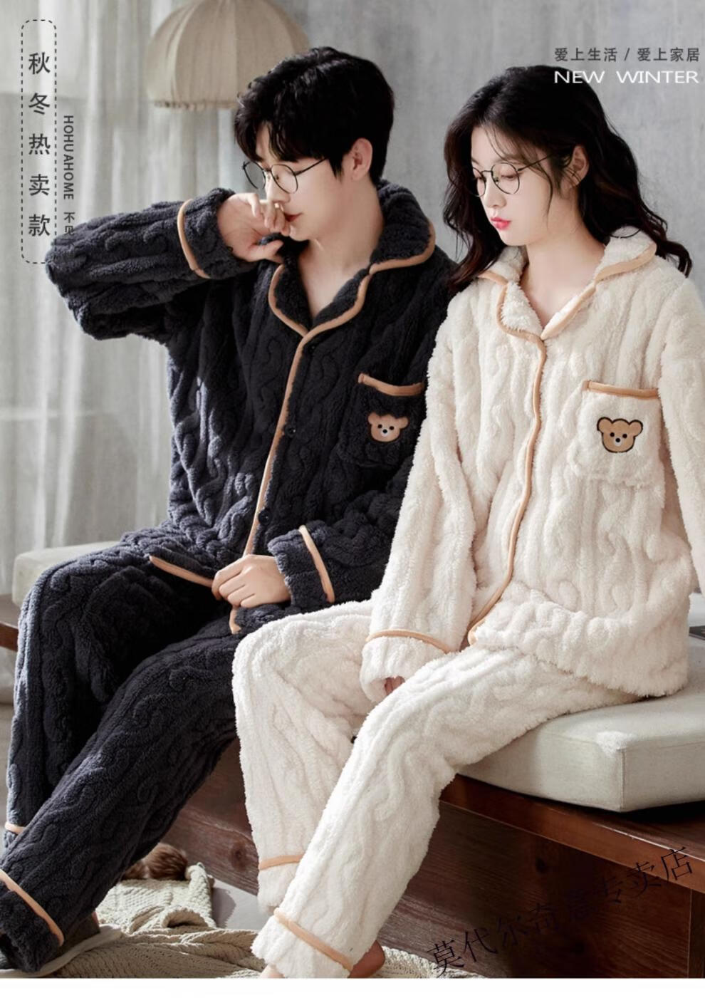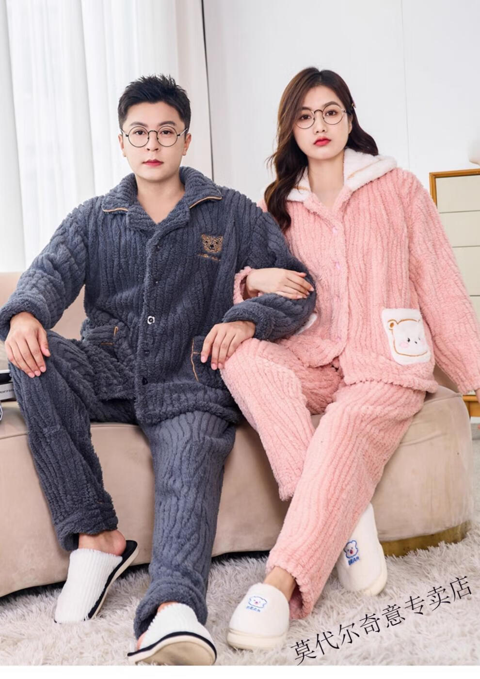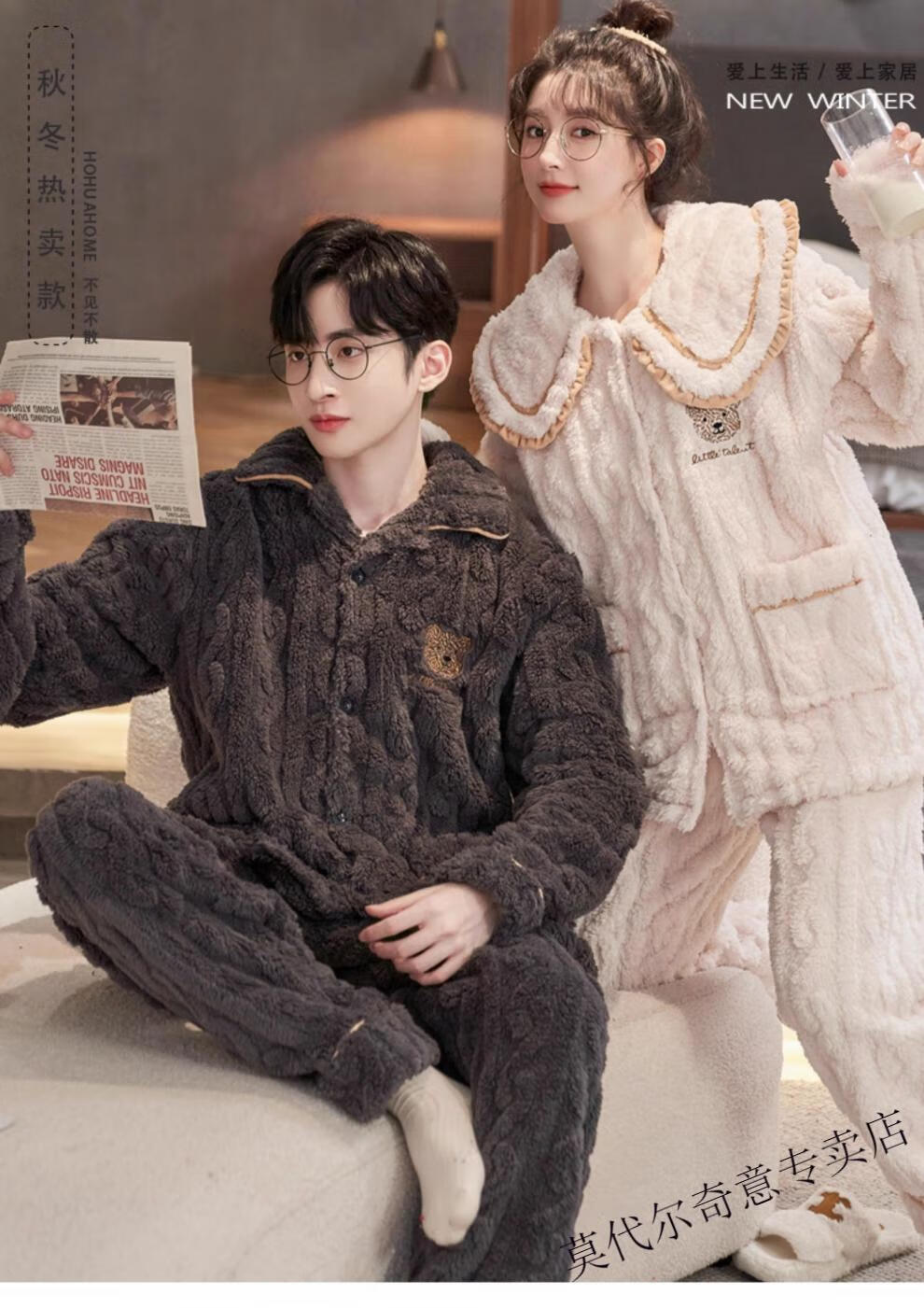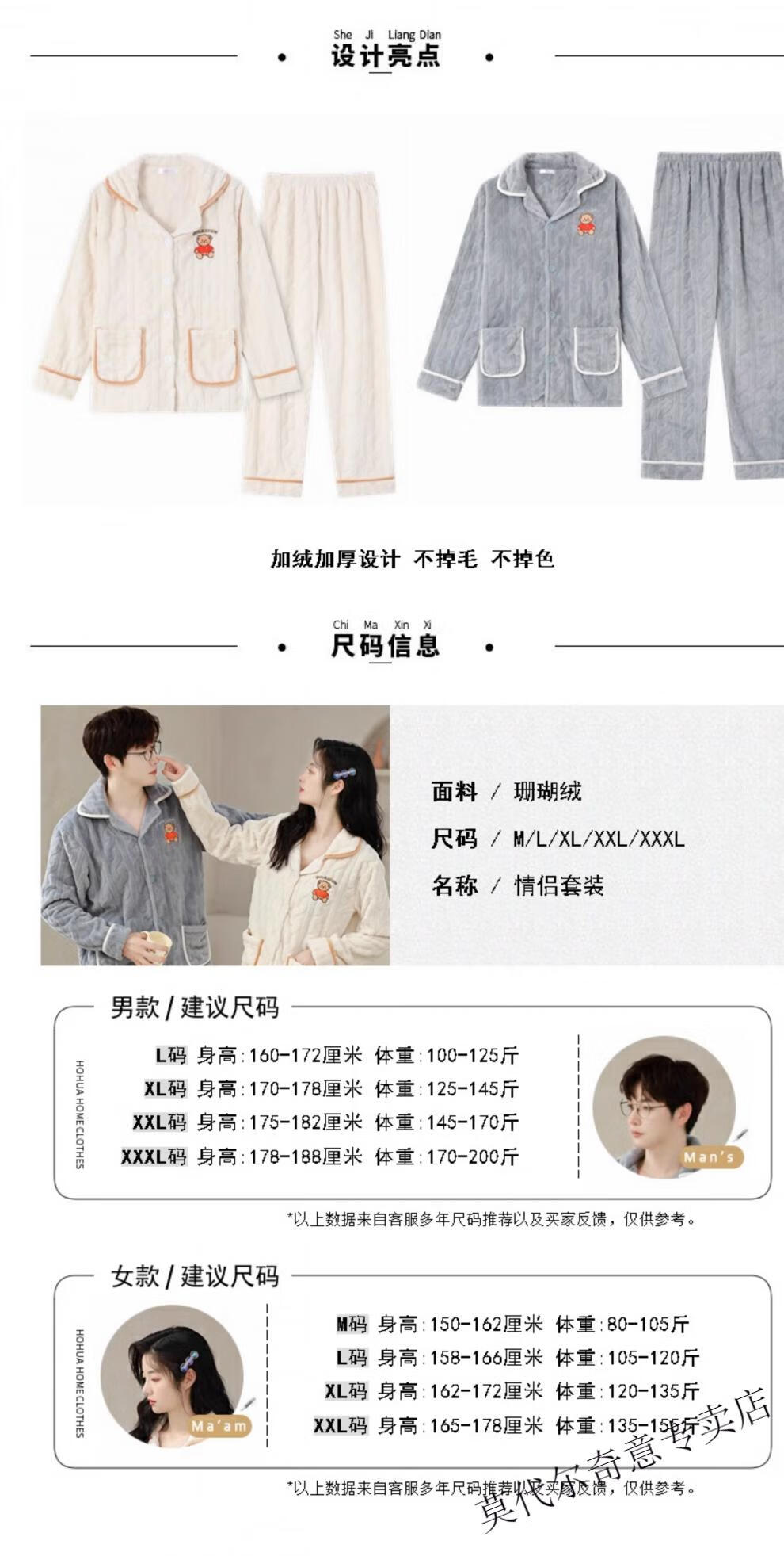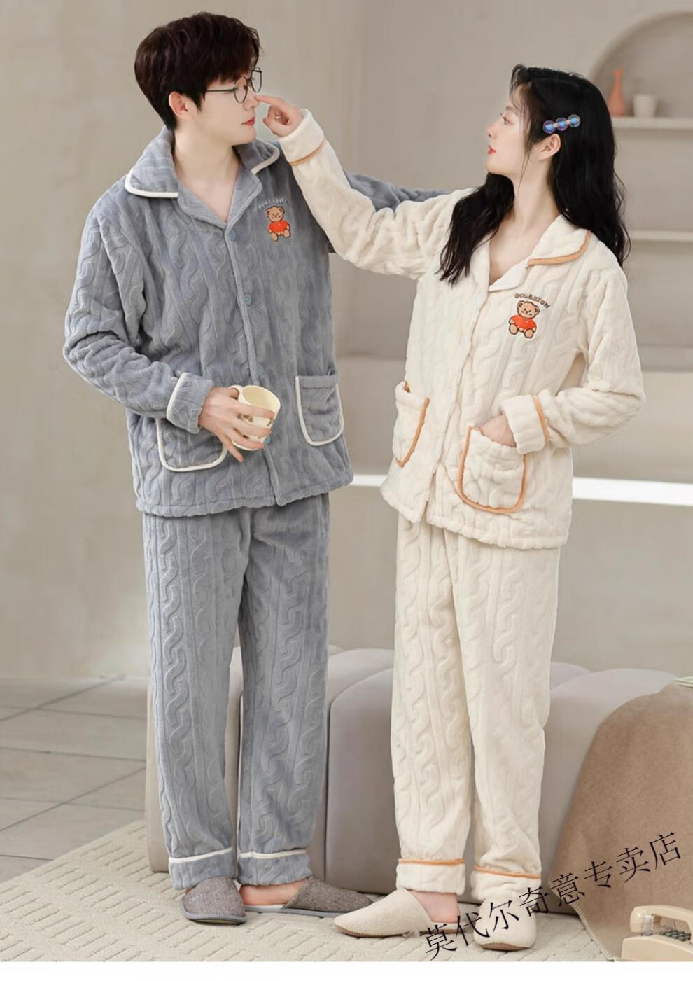 Modal couple pajamas autumn and winter style coral velvet thickened flannel women's cute men's home clothes can be worn outside the suit 0219+266 2 two sets of gentle style M women's style M men's style L size