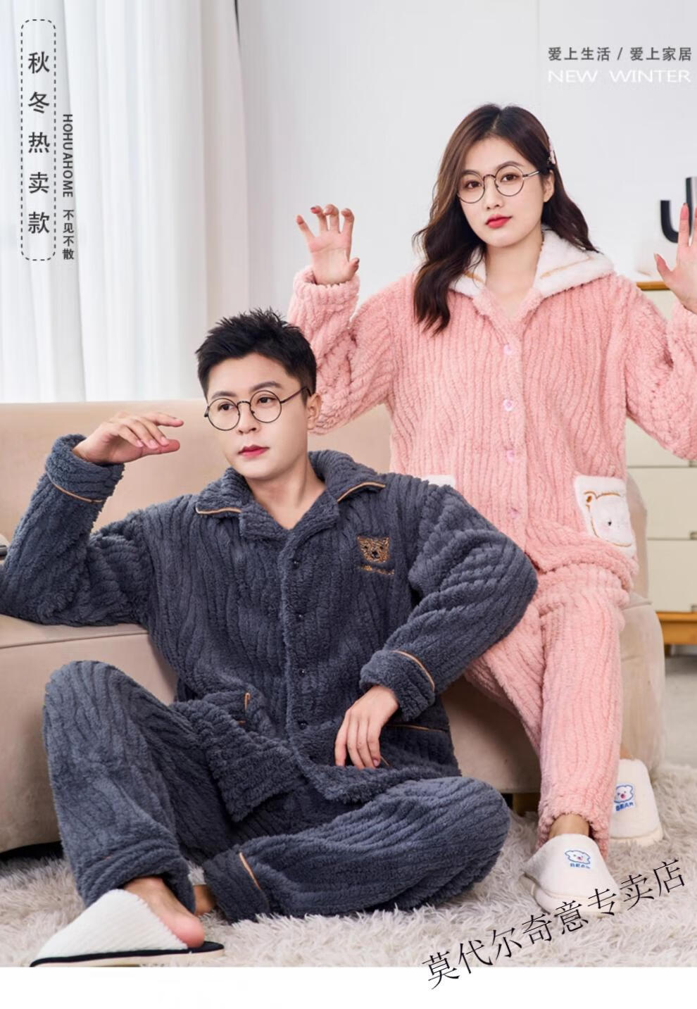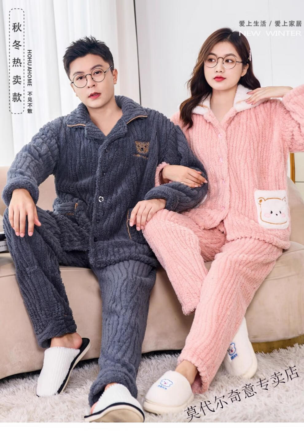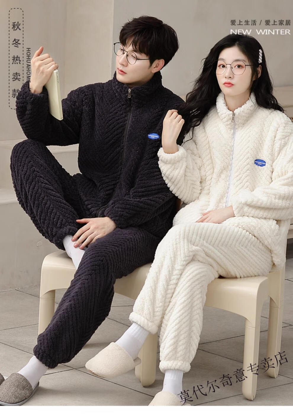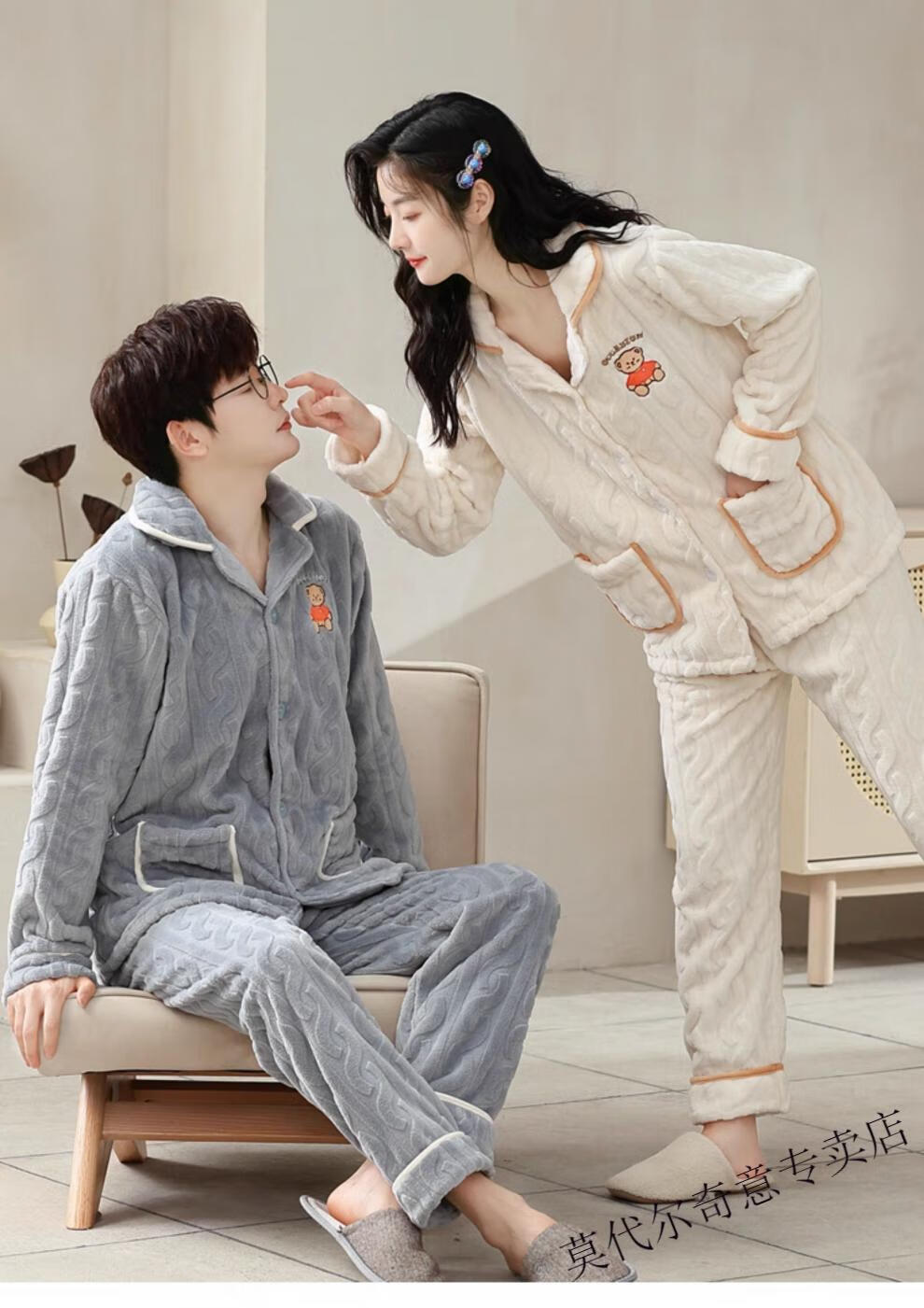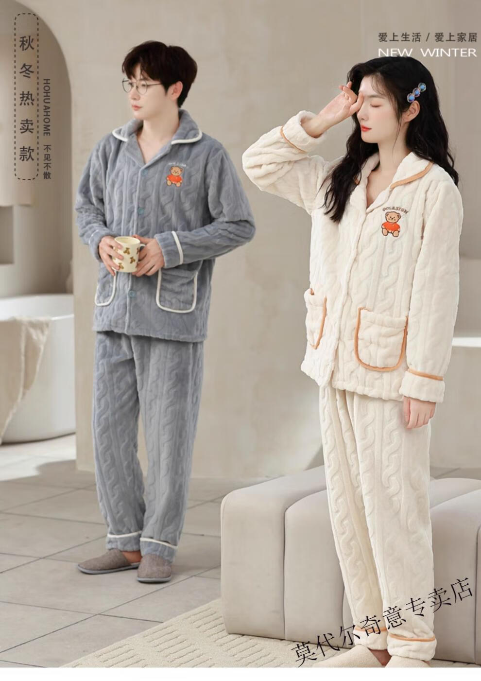 Modal couple pajamas autumn and winter style coral velvet thickened flannel women's cute men's home clothes can be worn outside the suit 0219+266 2 two sets of gentle style M women's style M men's style L size