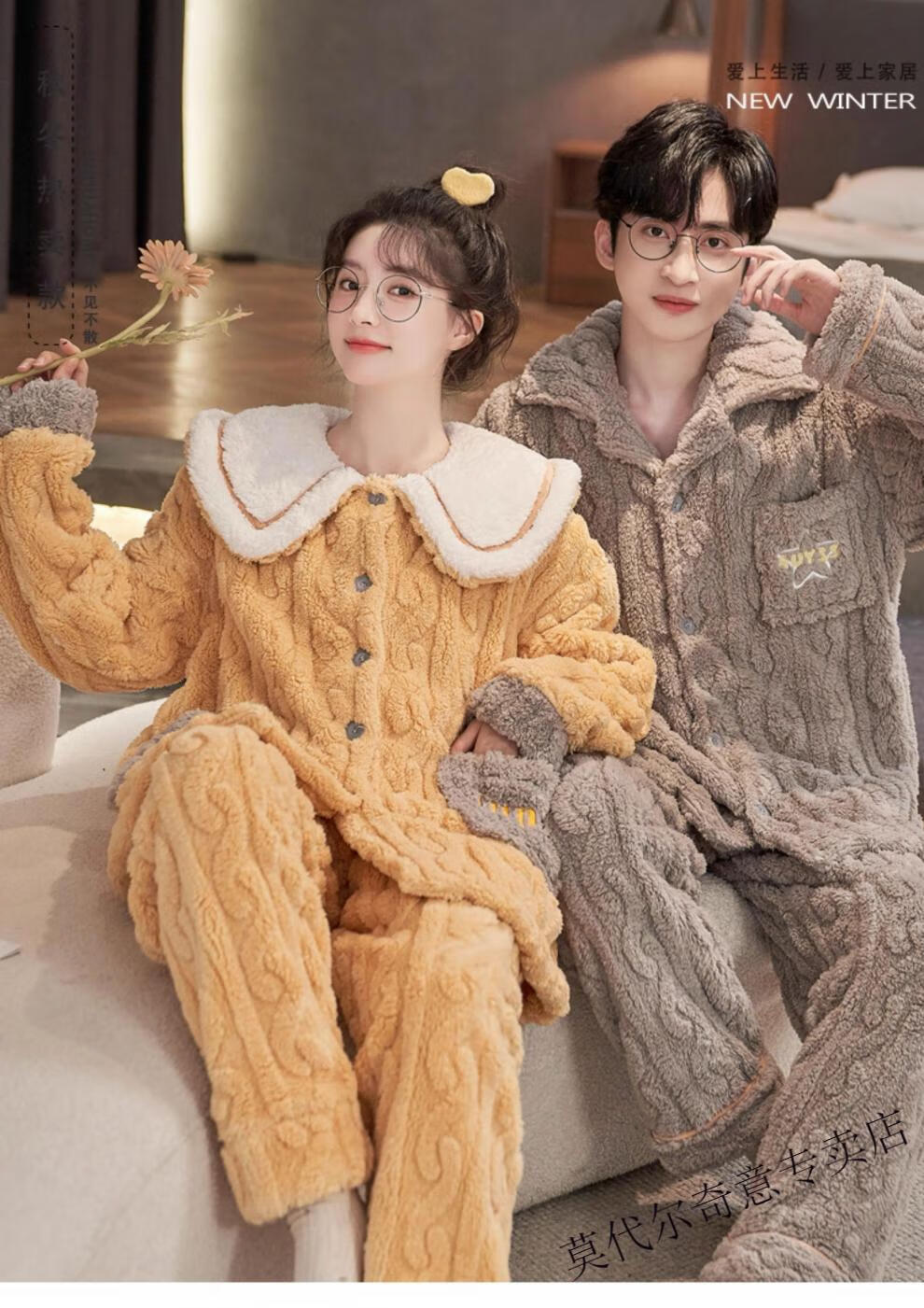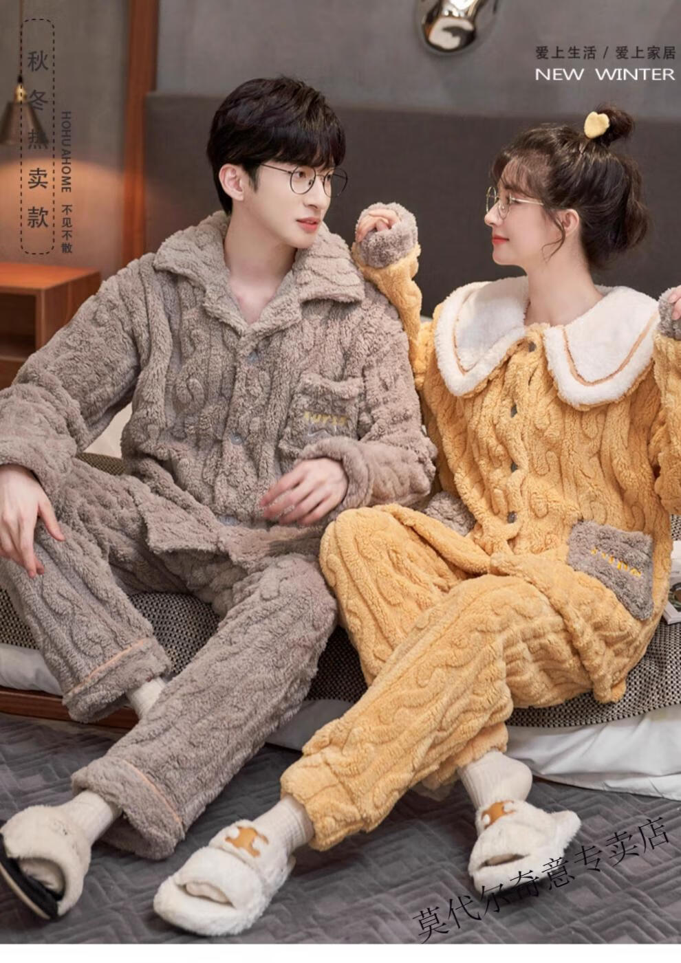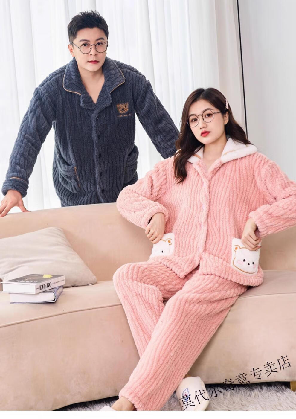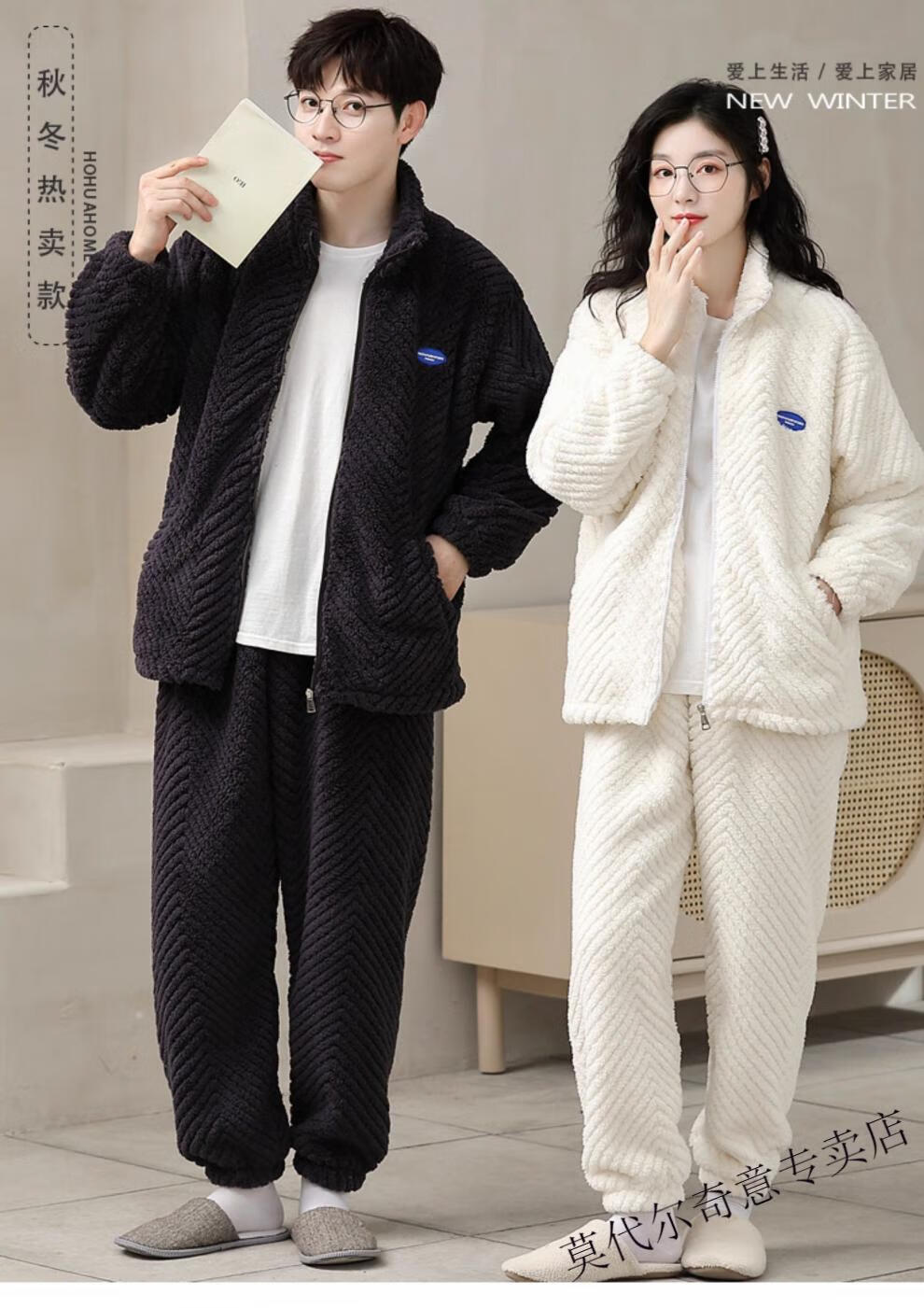 Modal couple pajamas autumn and winter style coral velvet thickened flannel women's cute men's home clothes can be worn outside the suit 0219+266 2 two sets of gentle style M women's style M men's style L size