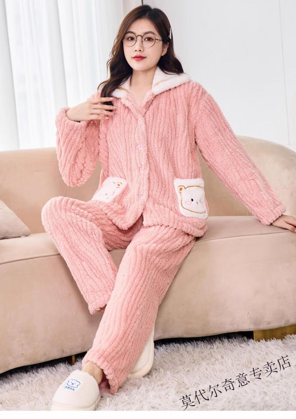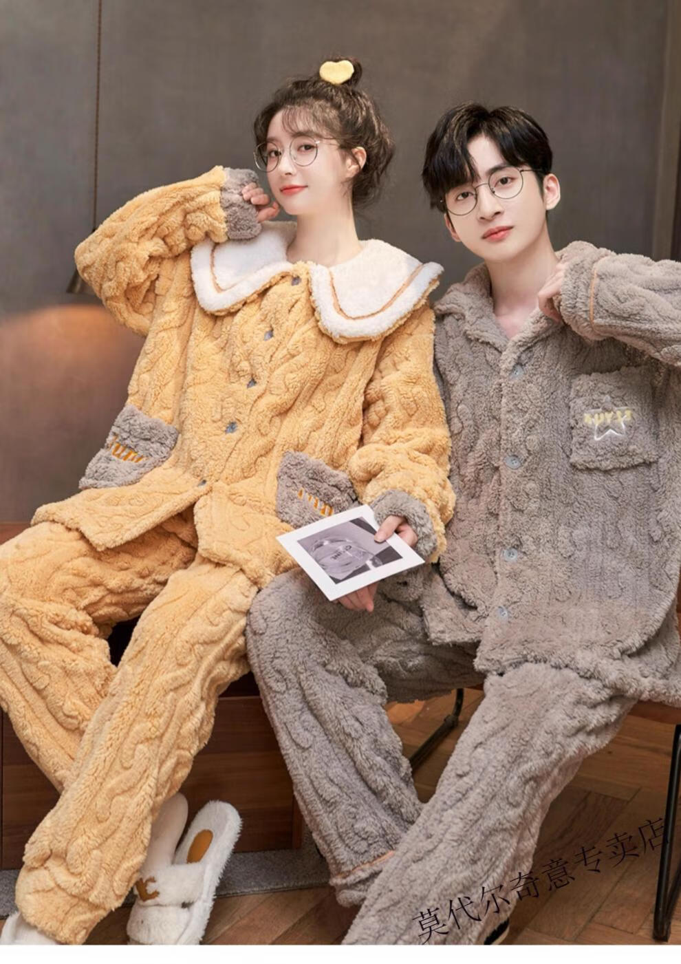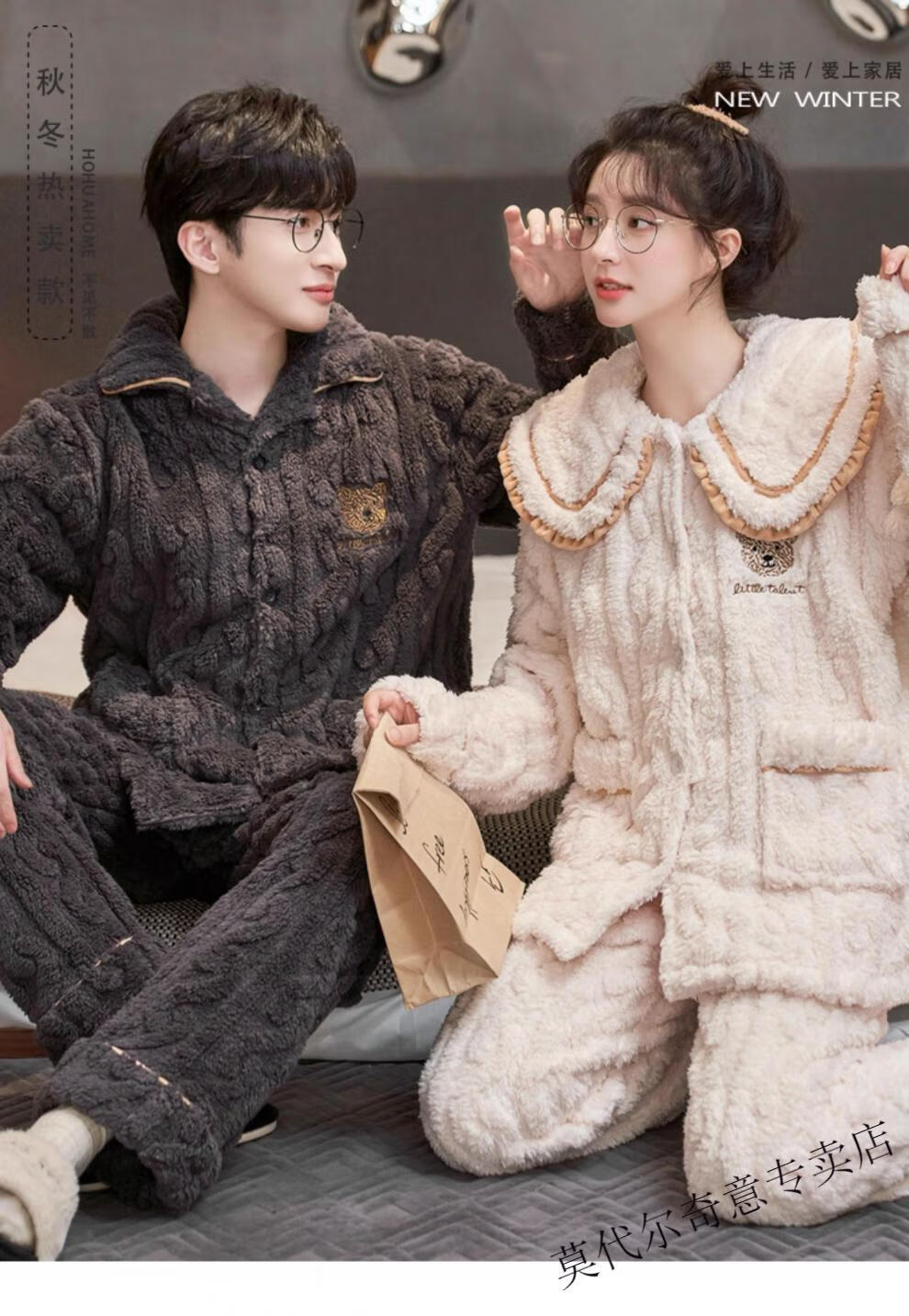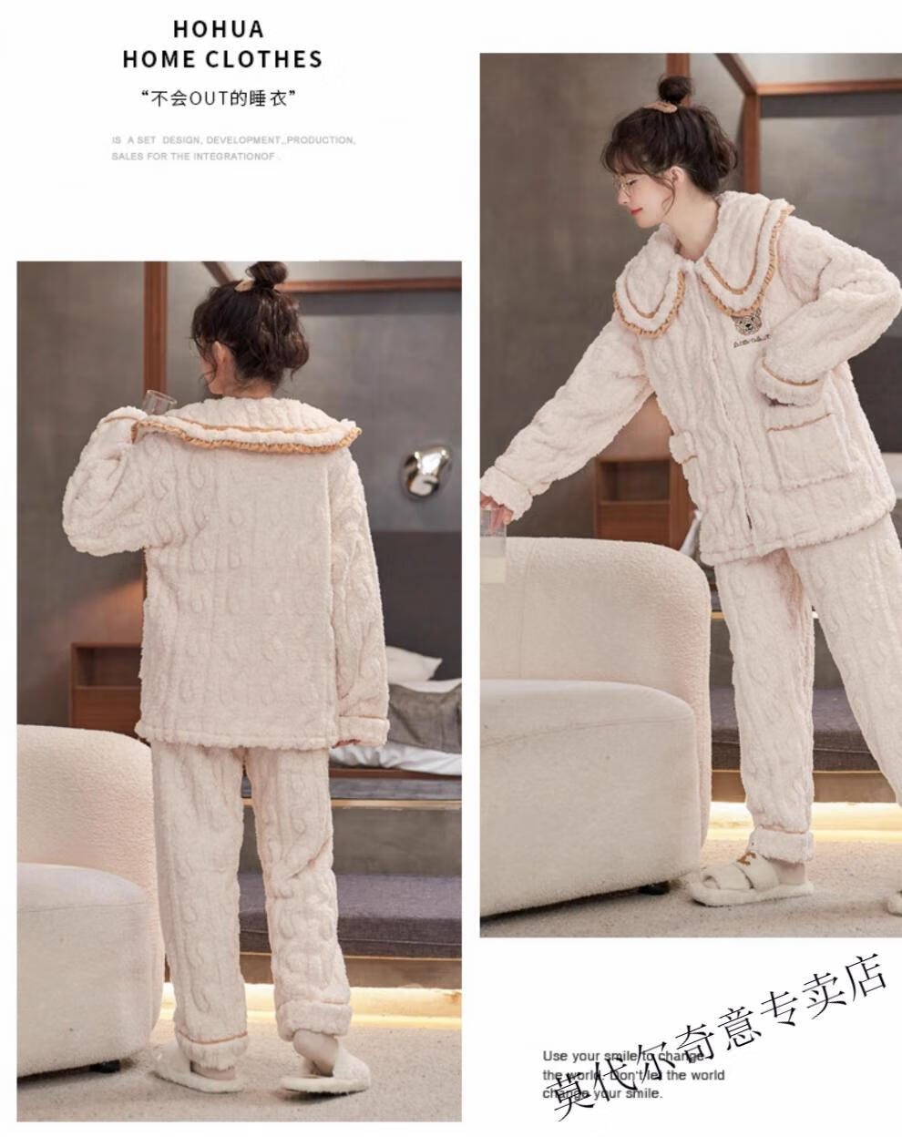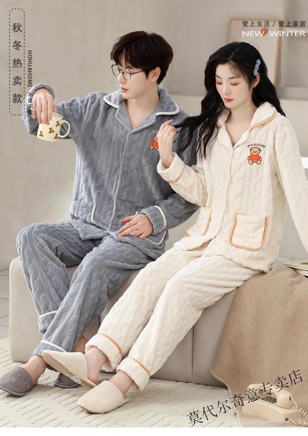 Modal couple pajamas autumn and winter style coral velvet thickened flannel women's cute men's home clothes can be worn outside the suit 0219+266 2 two sets of gentle style M women's style M men's style L size