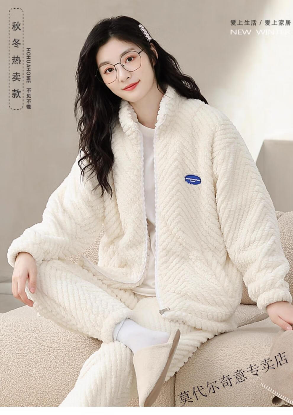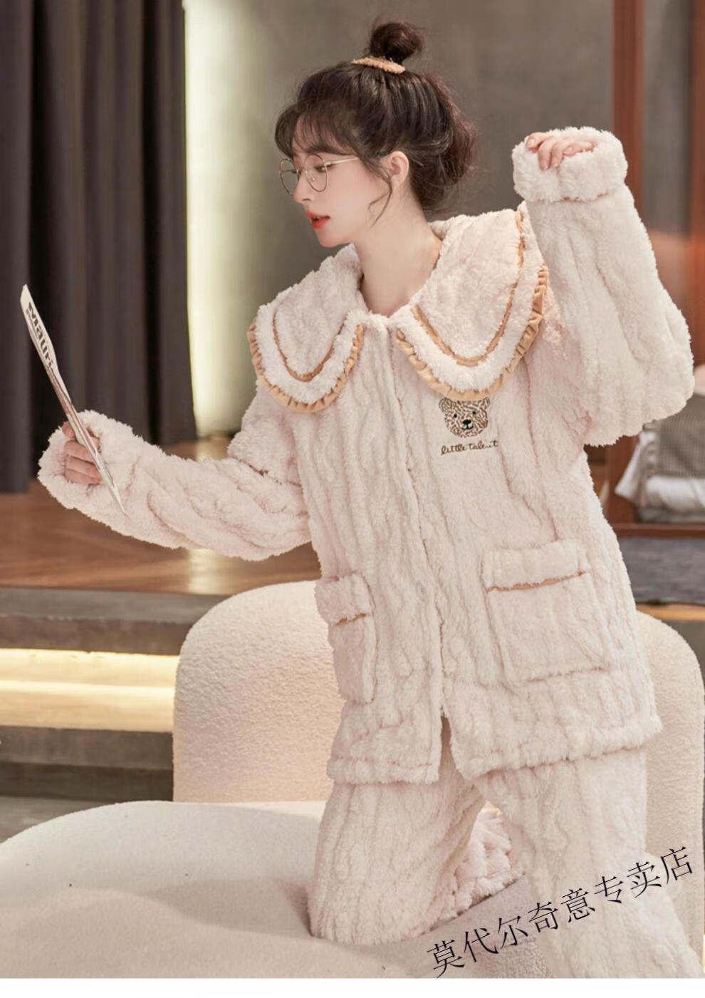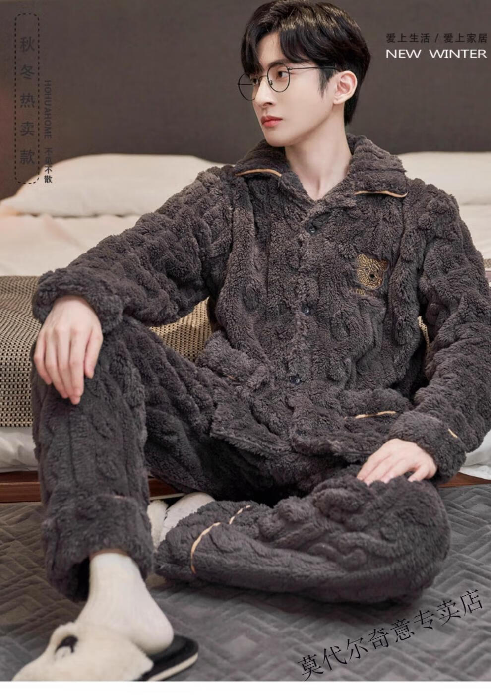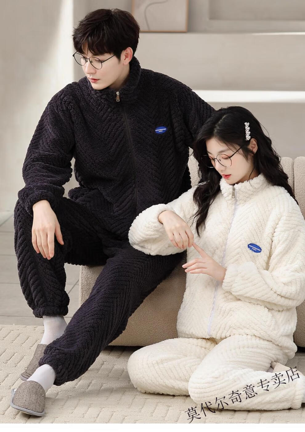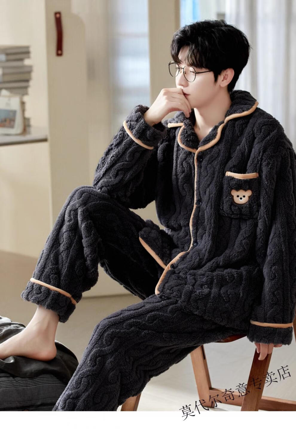 Modal couple pajamas autumn and winter style coral velvet thickened flannel women's cute men's home clothes can be worn outside the suit 0219+266 2 two sets of gentle style M women's style M men's style L size