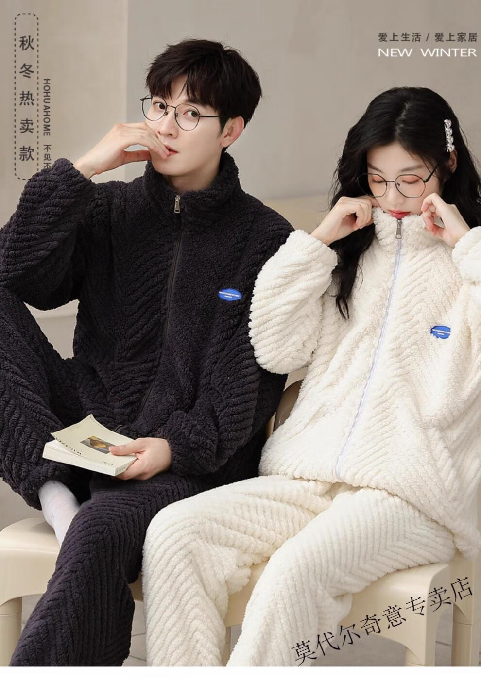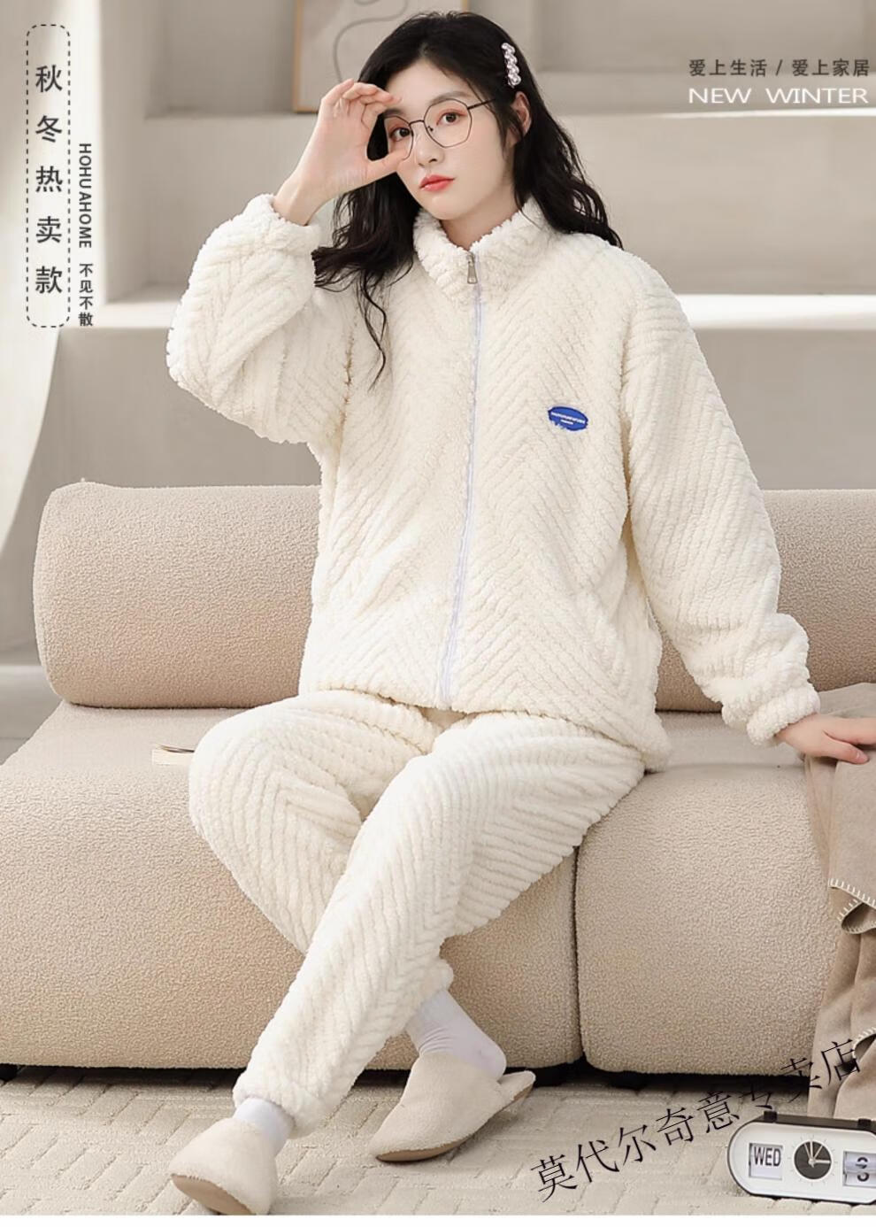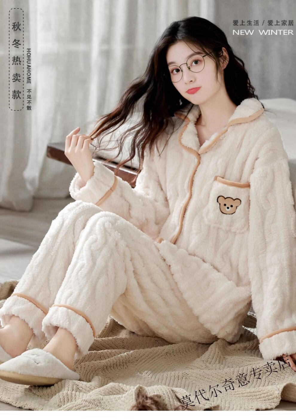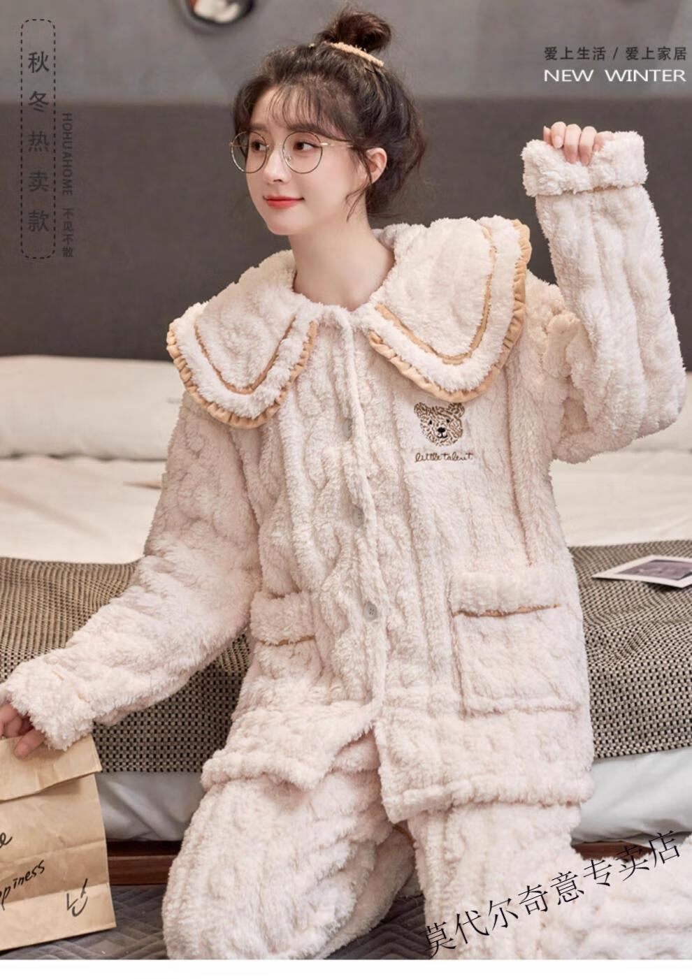 Modal couple pajamas autumn and winter style coral velvet thickened flannel women's cute men's home clothes can be worn outside the suit 0219+266 2 two sets of gentle style M women's style M men's style L size