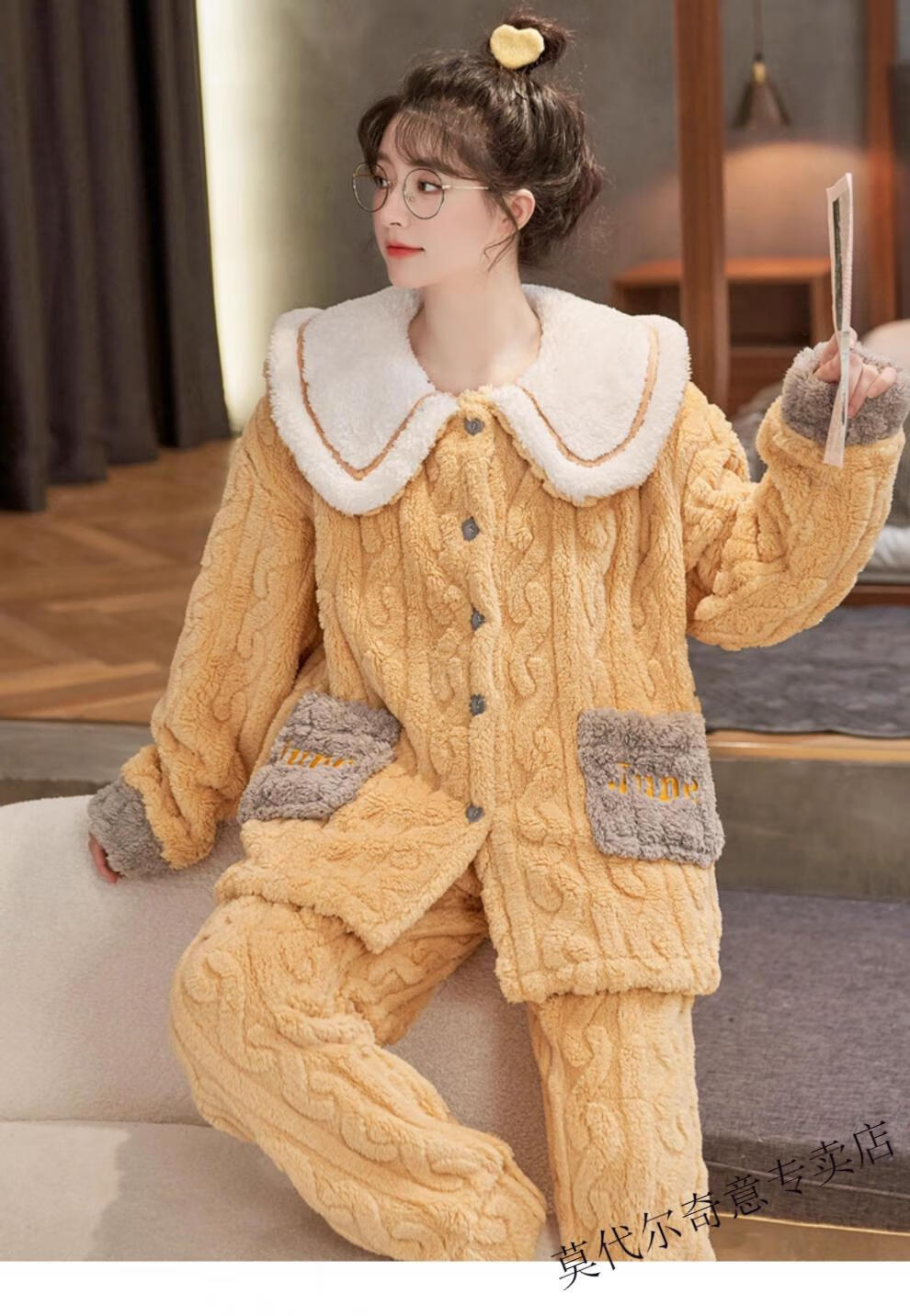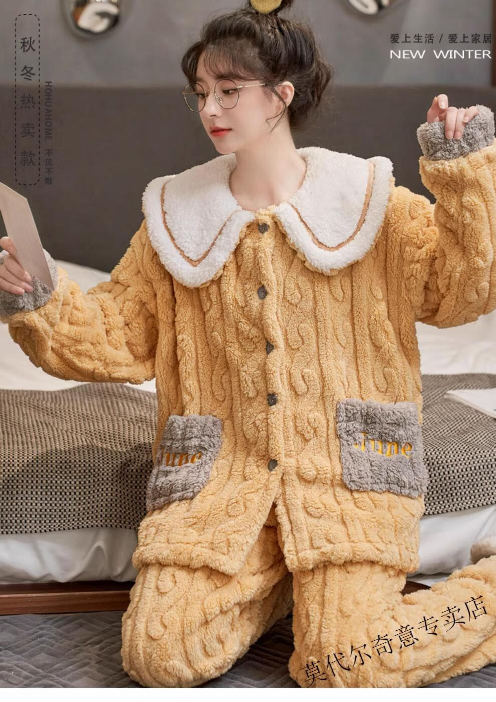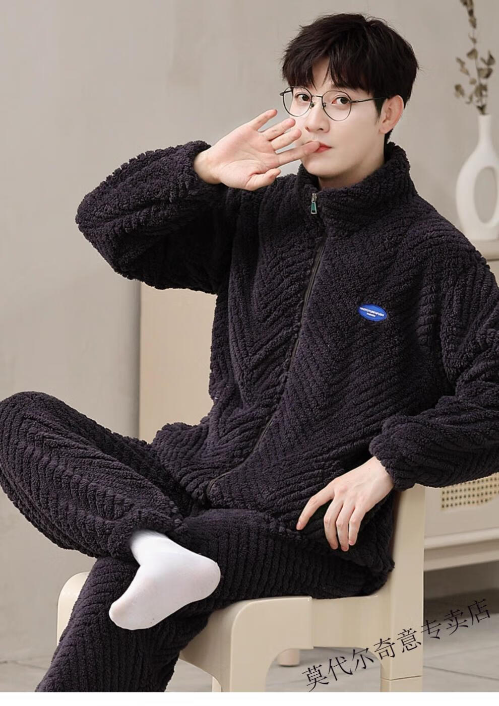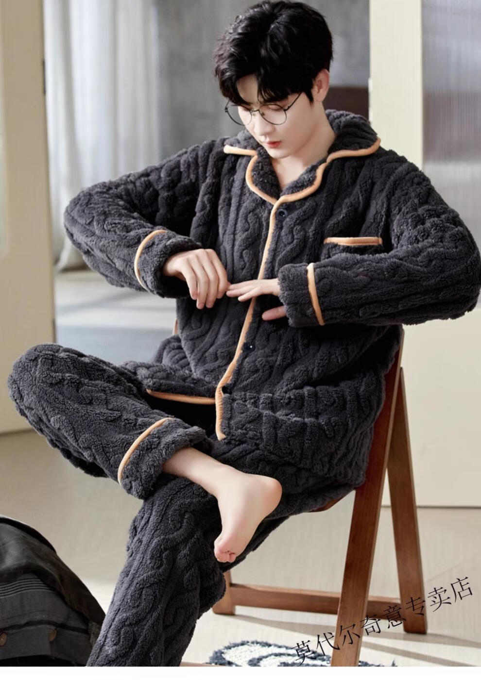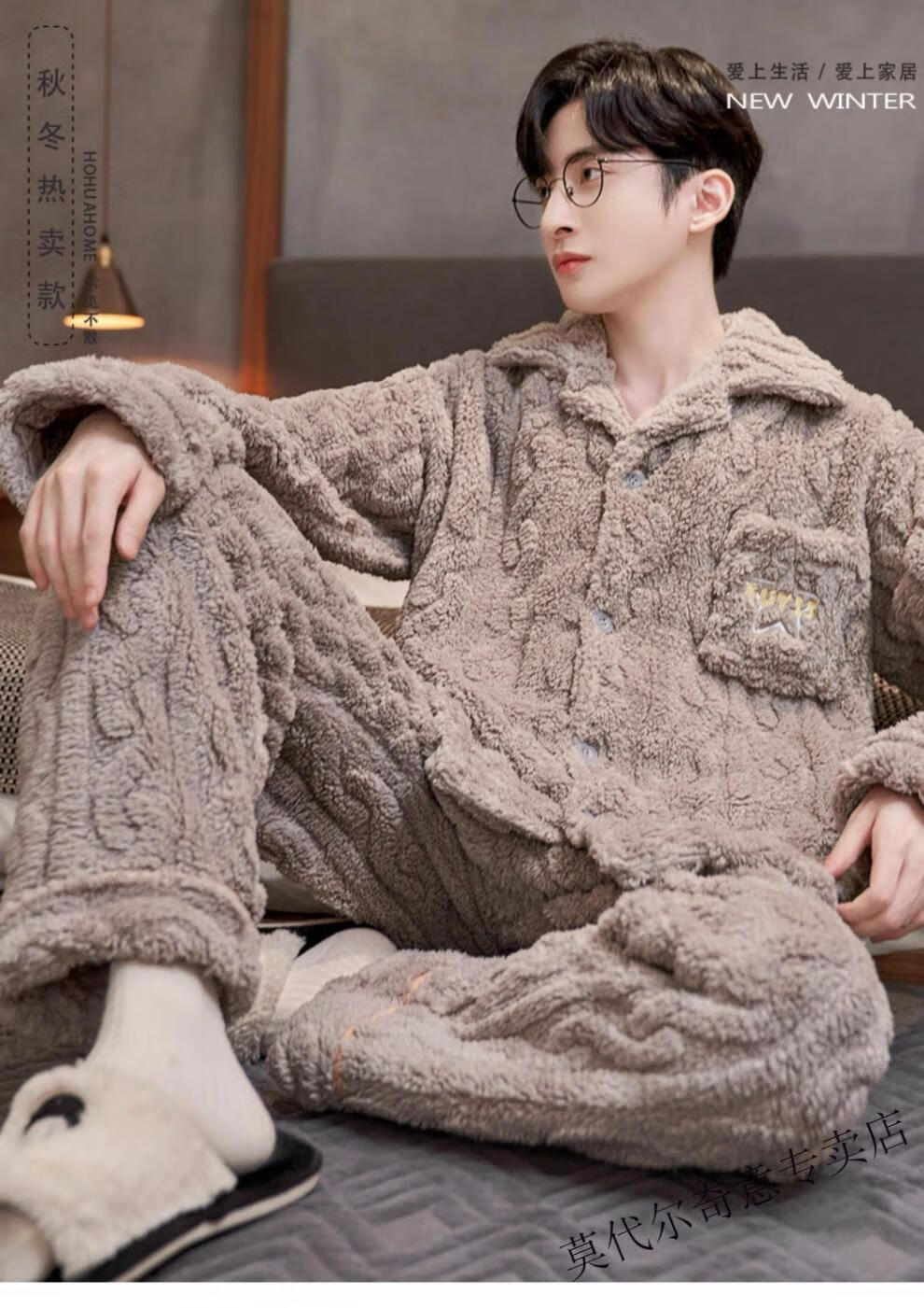 Modal couple pajamas autumn and winter style coral velvet thickened flannel women's cute men's home clothes can be worn outside the suit 0219+266 2 two sets of gentle style M women's style M men's style L size