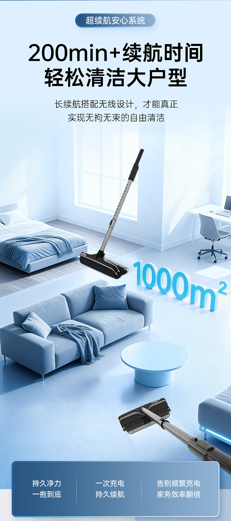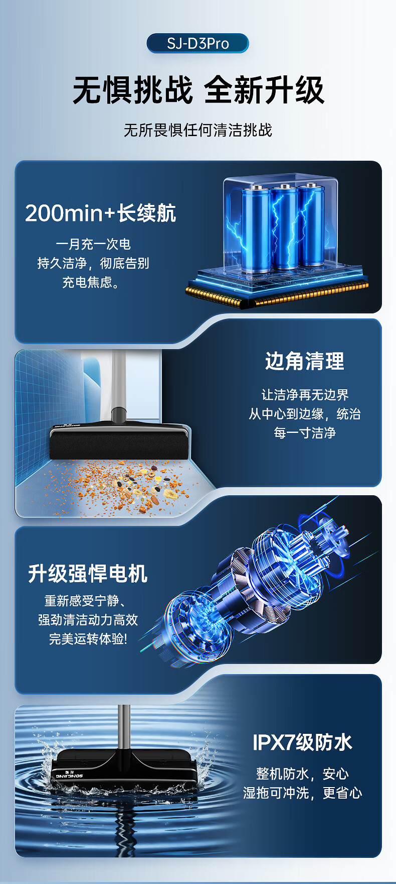 Pine Whale Cordless Electric Mop Household Vacuum Cleaner Function Hands-Free Floor Mopping Upgraded SJ-D3 Power Handle*1