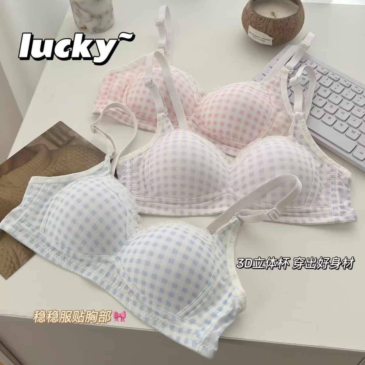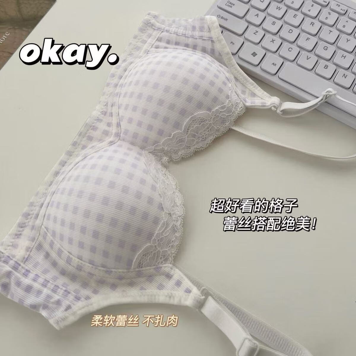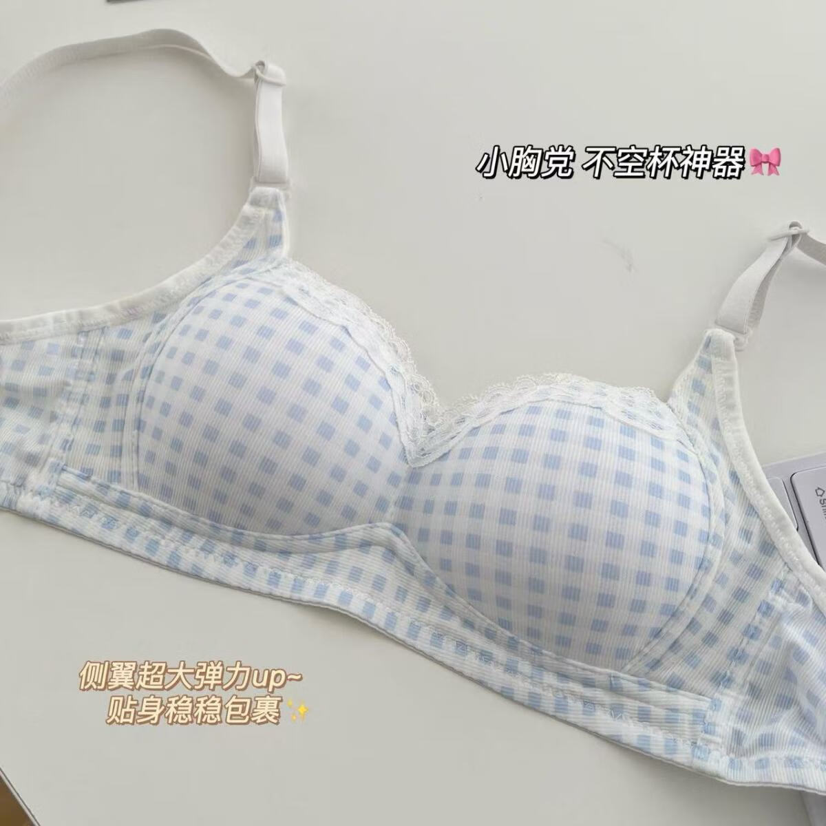 Underwear for female students, Korean version of girl's bra without rims, small breasts gathering, anti-sagging, secondary breasts, sexy pure desire tube top, light blue + pink XL 38/85