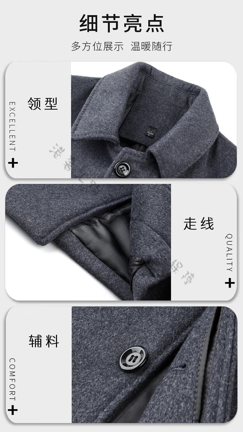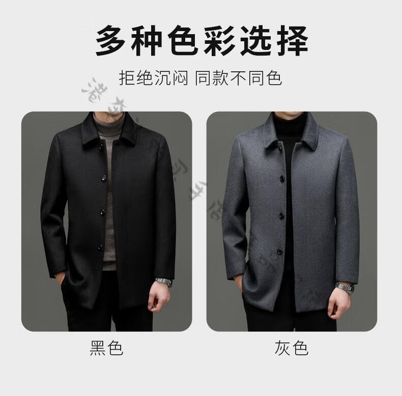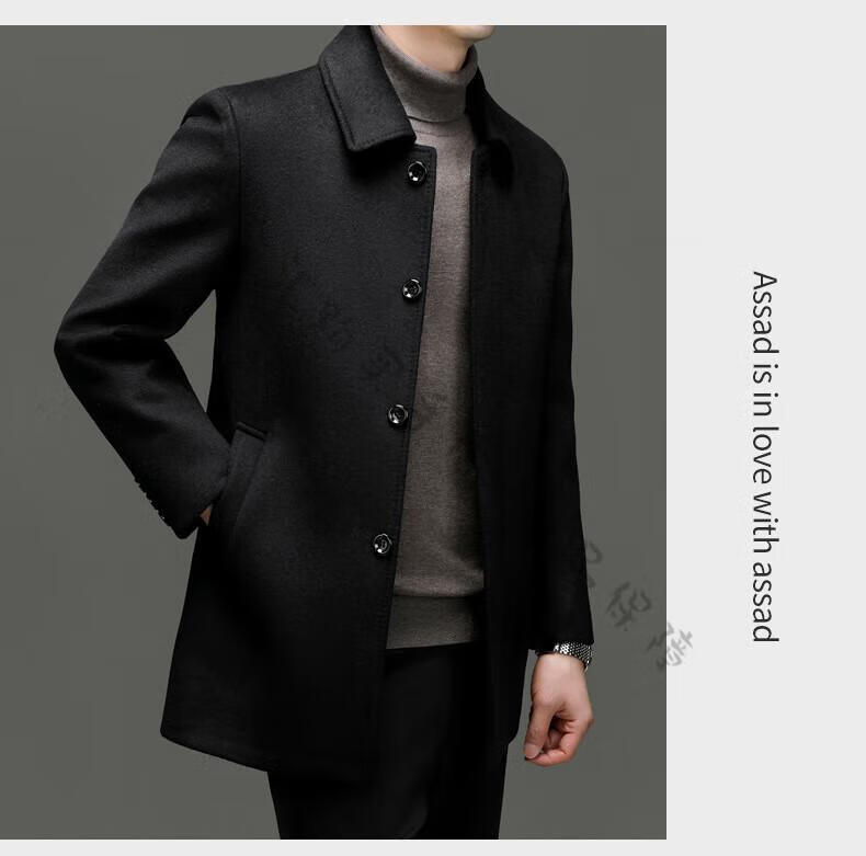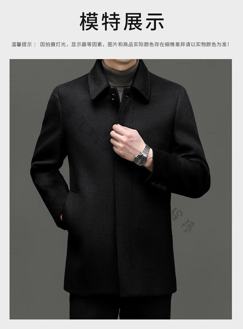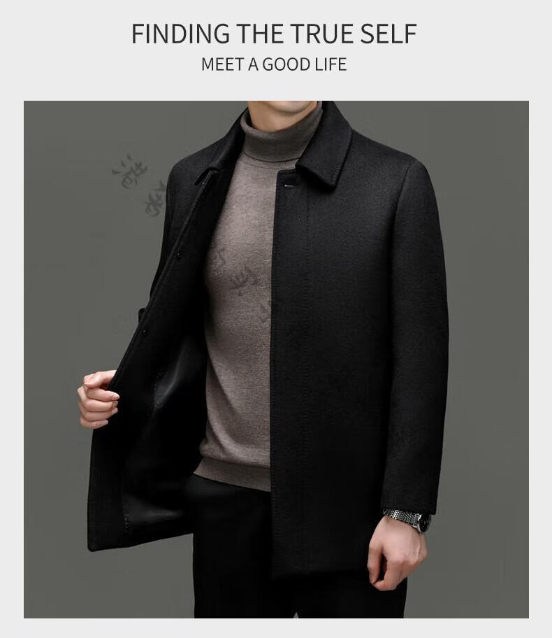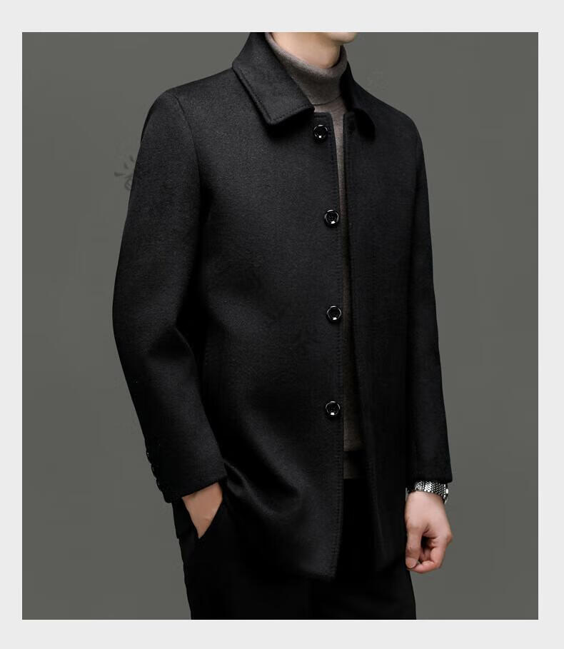 SUSTYLE luxury high-end brand winter high-end business casual versatile mid-length double-sided wool coat for middle-aged and elderly men black 3XL 190 recommended 165-180 Jin Jin equals 0.5 kg