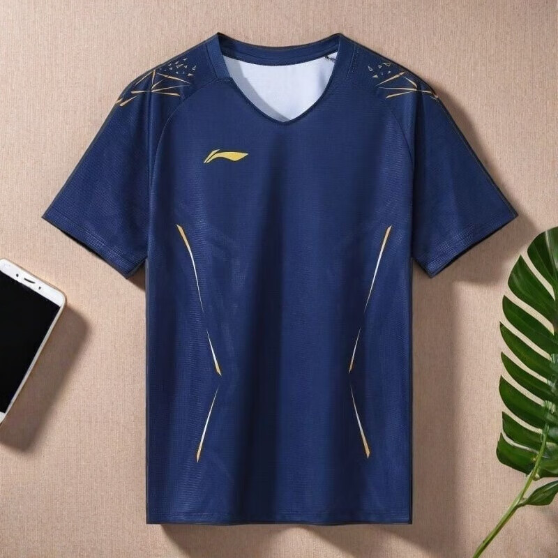 Li Ning 19902025 new badminton uniform for children 8 to 12 years old table tennis quick-drying breathable men's and women's sports competition customization FKYP-navy blue sports T-shirt 140 children's code