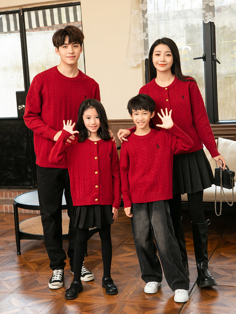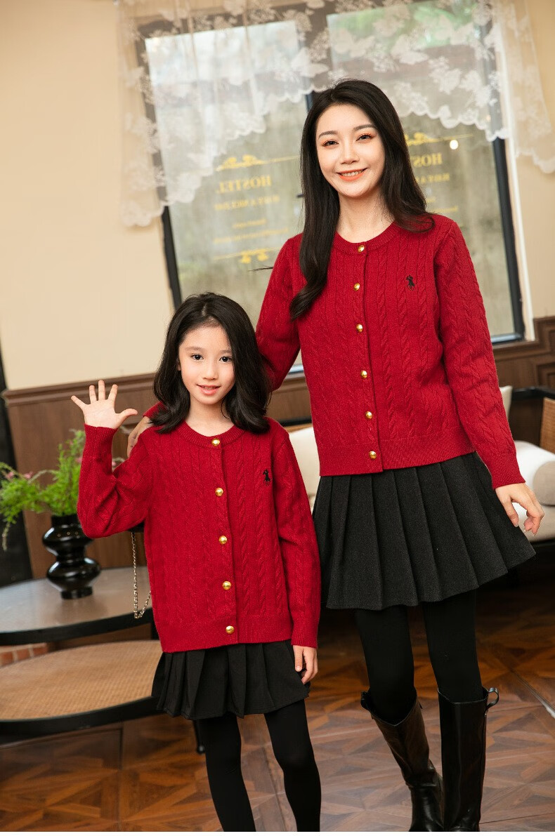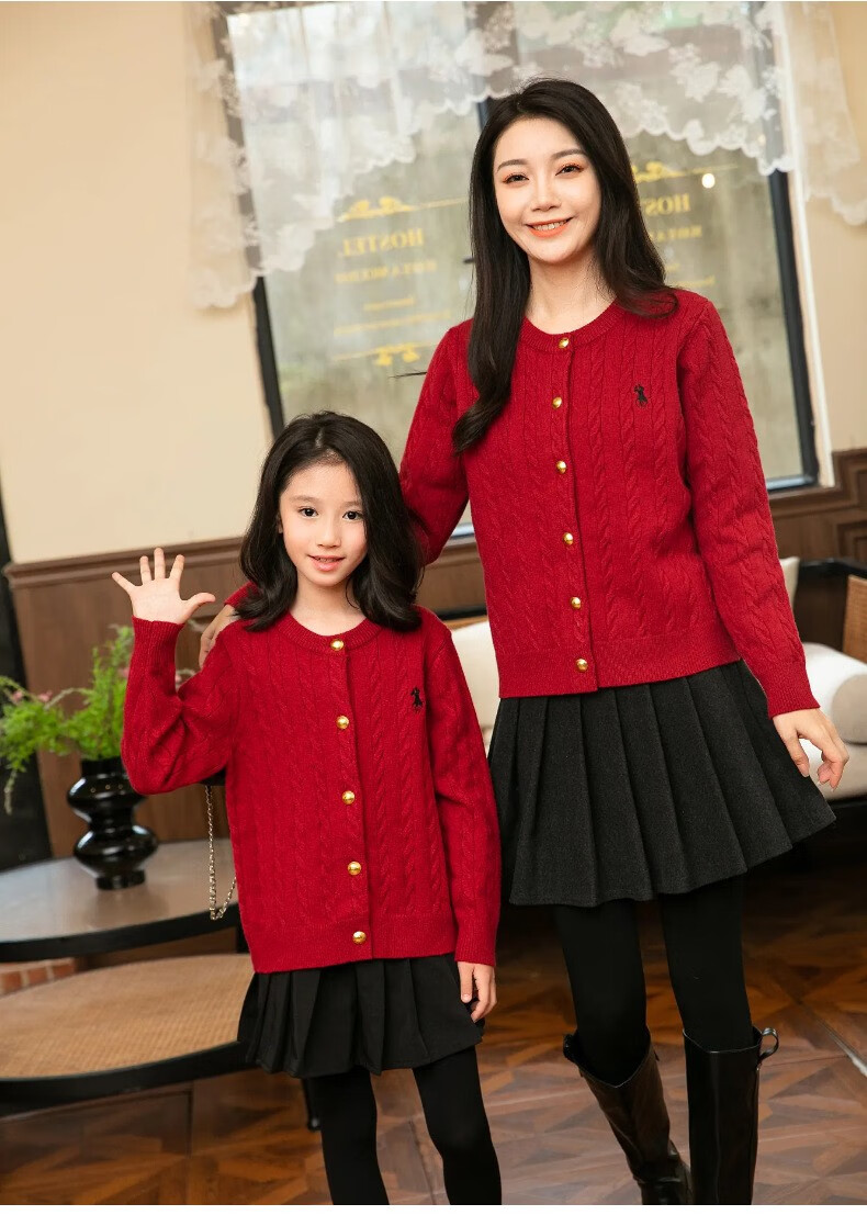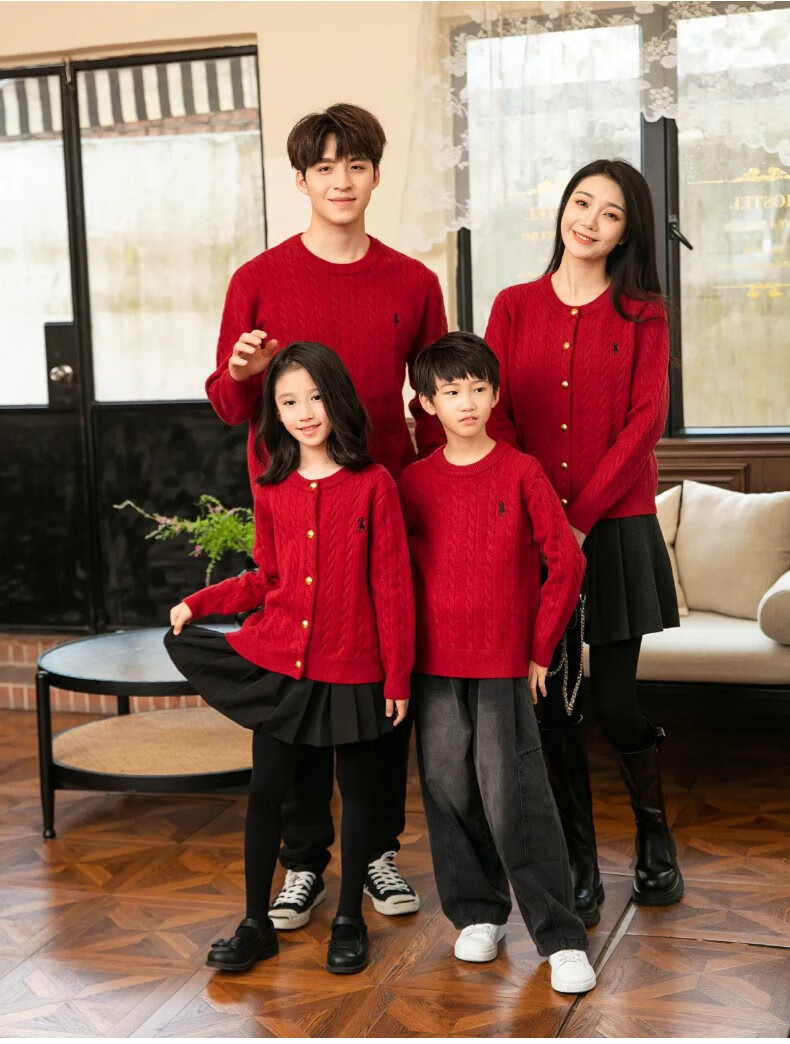 BUBBLE ORANGE Year of the Horse family portrait red parent-child clothing autumn and winter new Korean knitted cardigan family sweater mother and daughter clothing for three or four men single sweater/women single cardigan 170 Mom size M (recommended weight 100-115 Jin Jin is equal to 0.5 kg)