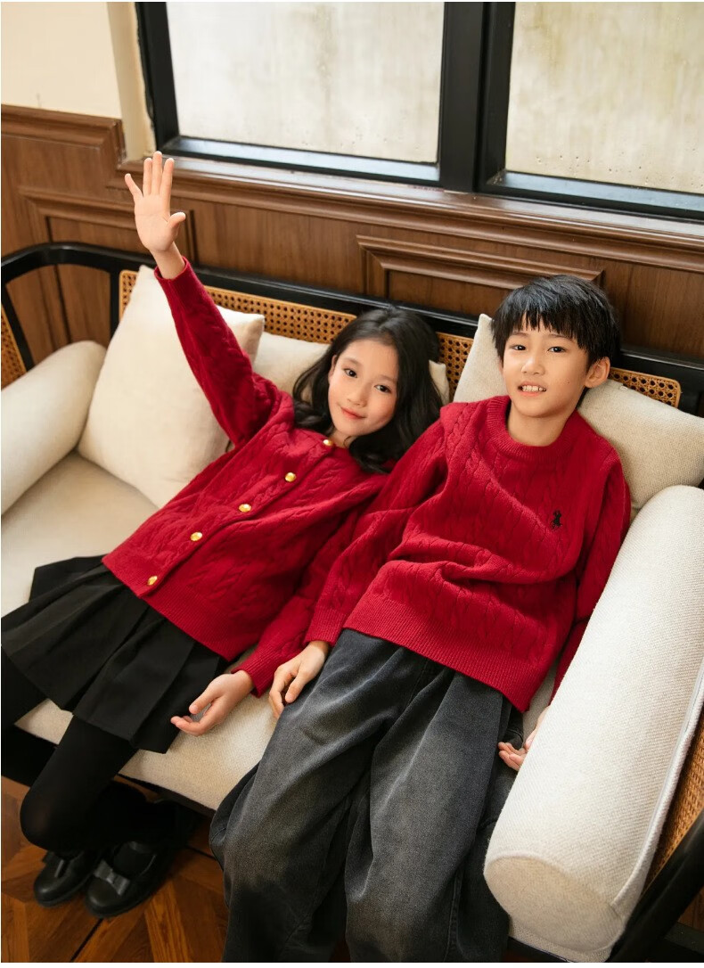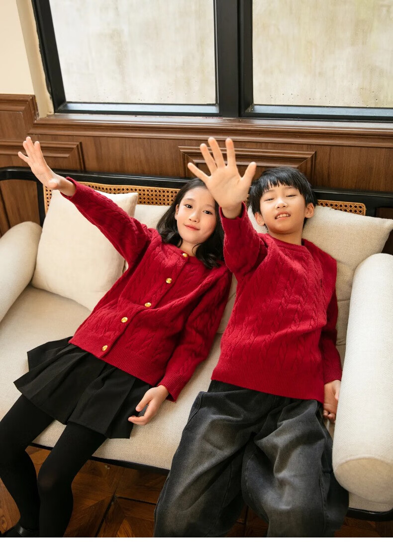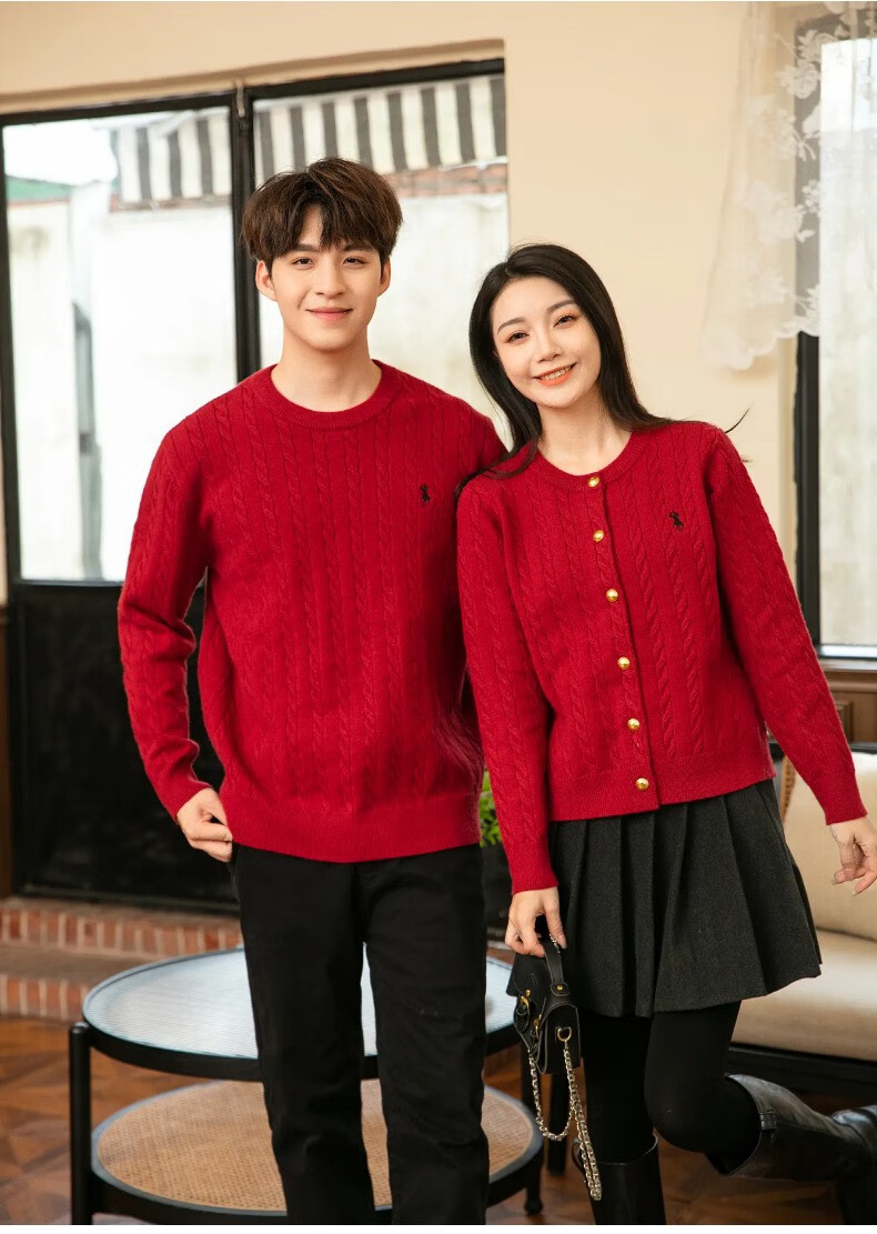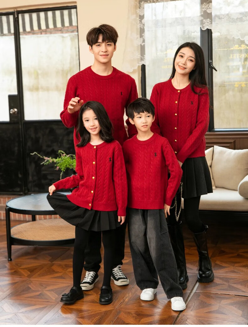 BUBBLE ORANGE Year of the Horse family portrait red parent-child clothing autumn and winter new Korean knitted cardigan family sweater mother and daughter clothing for three or four men single sweater/women single cardigan 170 Mom size M (recommended weight 100-115 Jin Jin is equal to 0.5 kg)