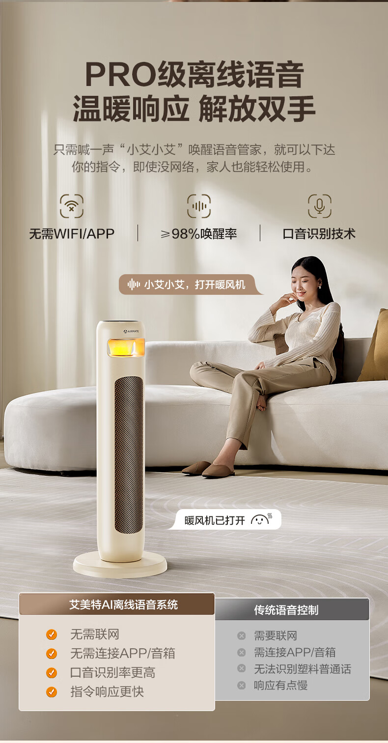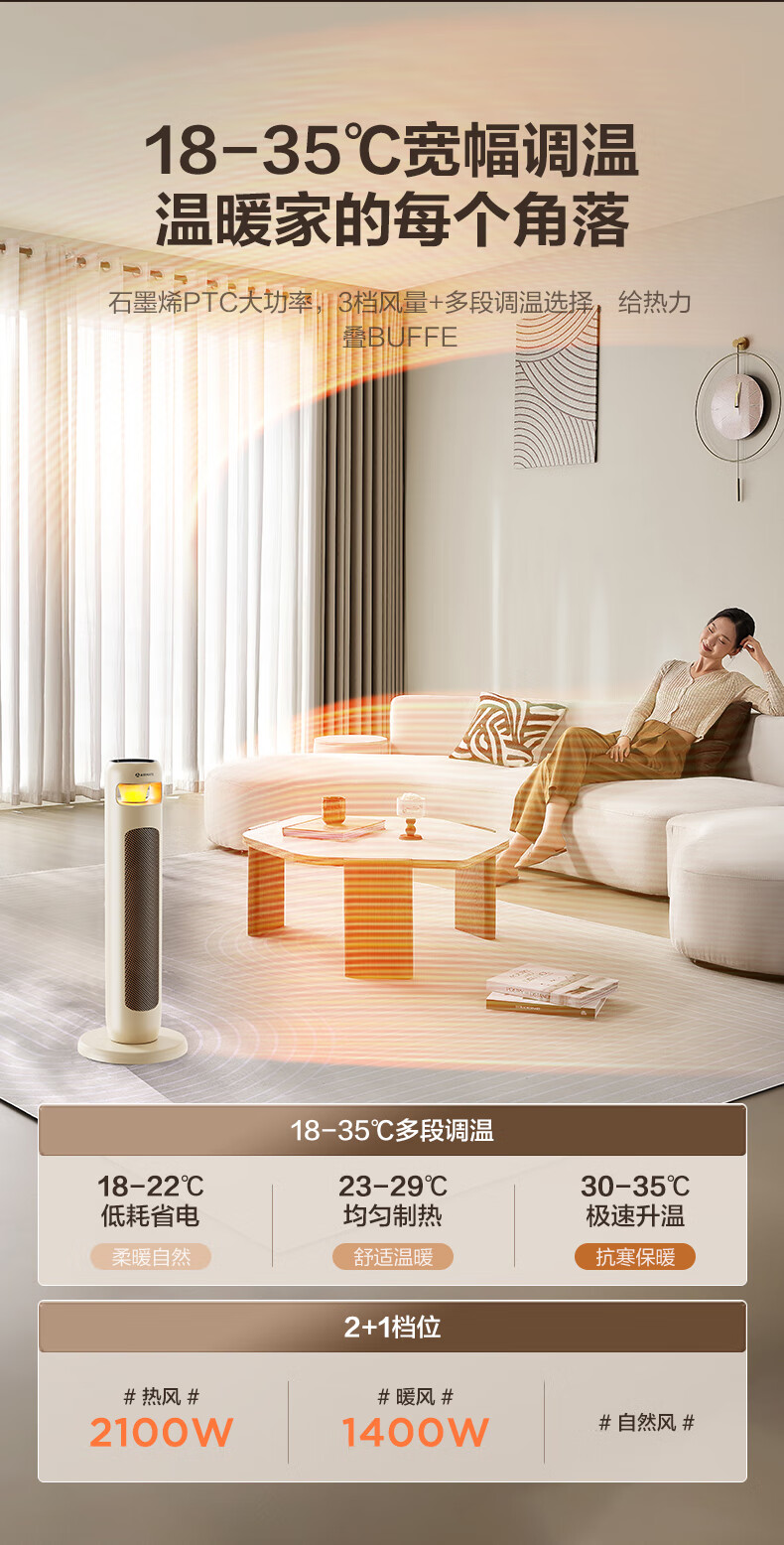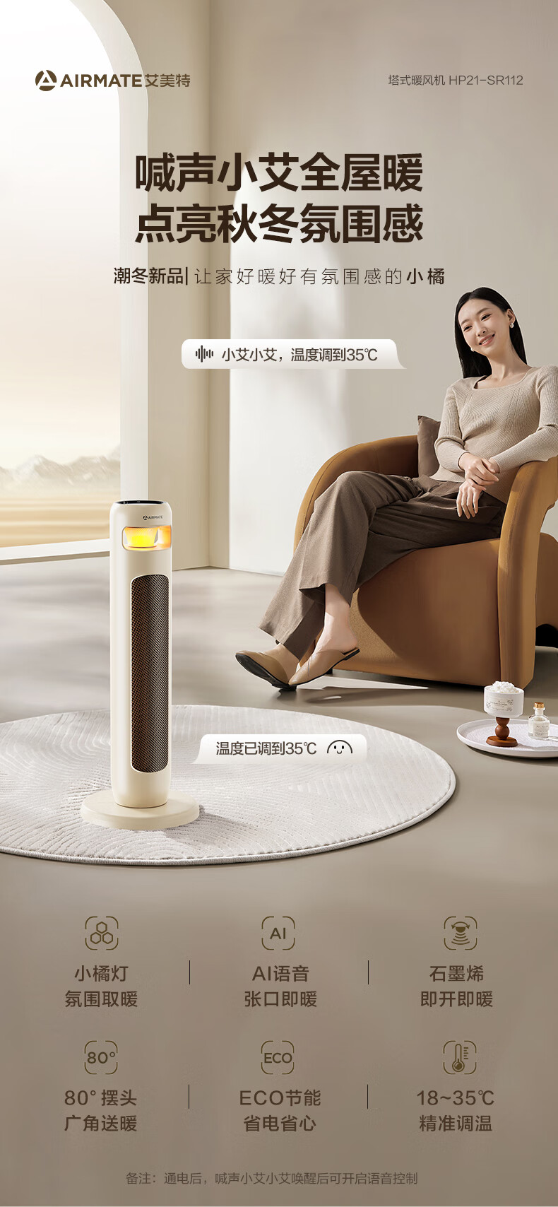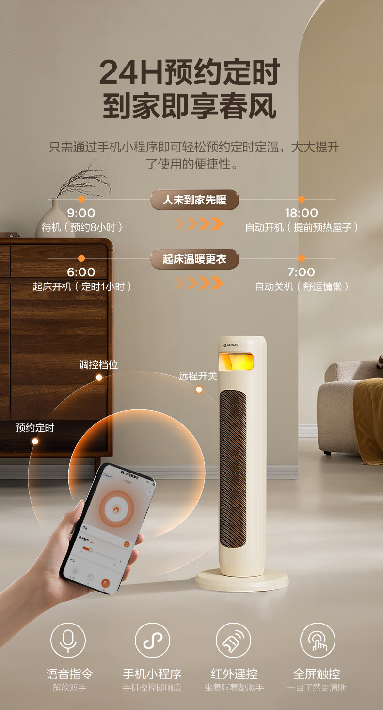 AIRMATE Graphene Standing Heater 2025 New Heater Household Energy Saving Heater Baby Bath Milk Cafe A Graphene Quick Heat-Knob Adjustment