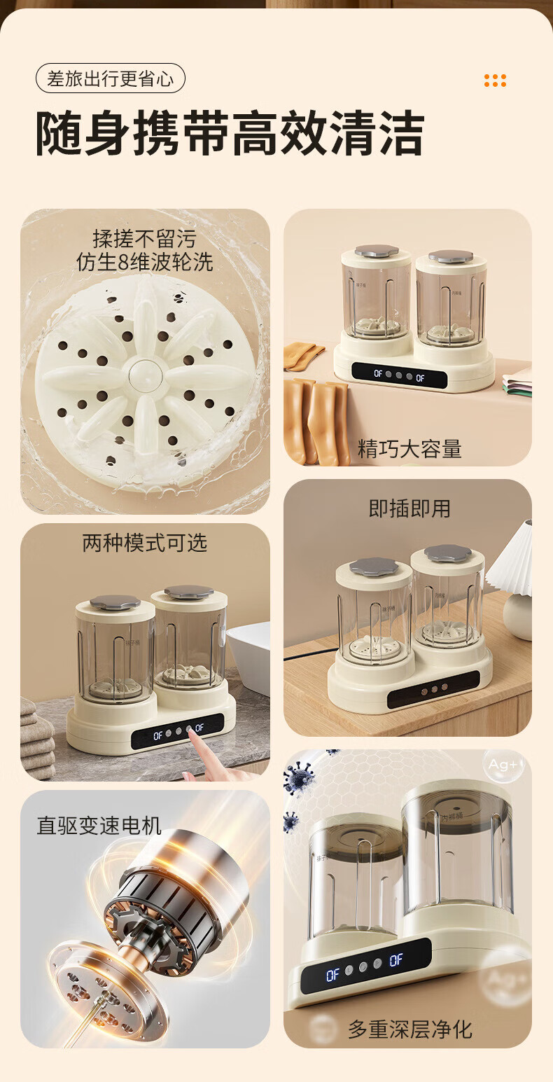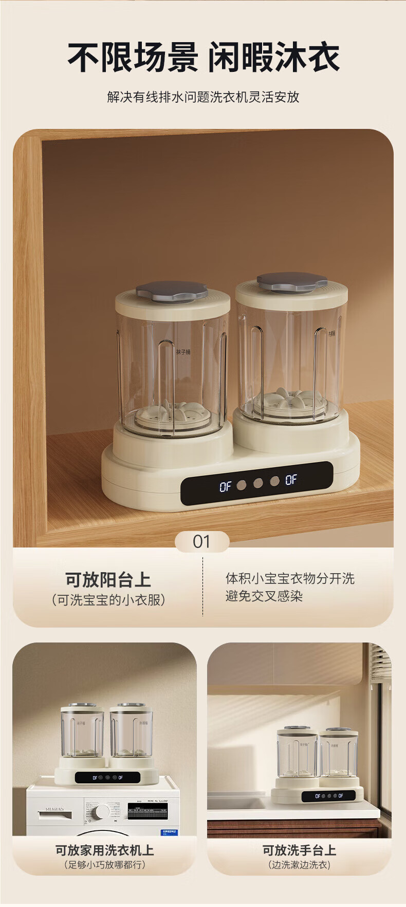 Xiaomi baby washing machine underwear fully automatic washing machine portable washing machine small sock washing machine Xiaomi white mini+ installation-free + eight-dimensional pulsator cleaning 2025 upgraded silver ion antibacterial