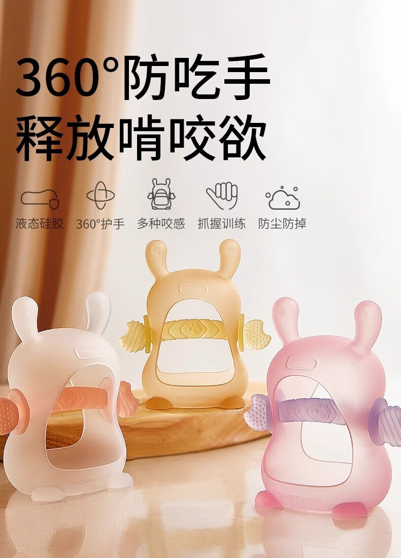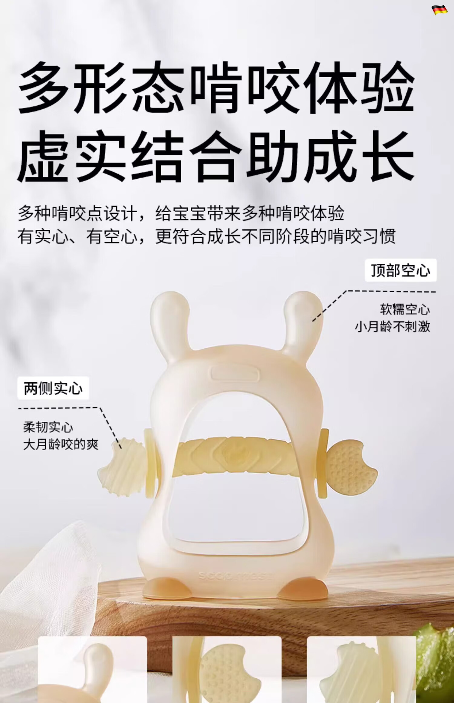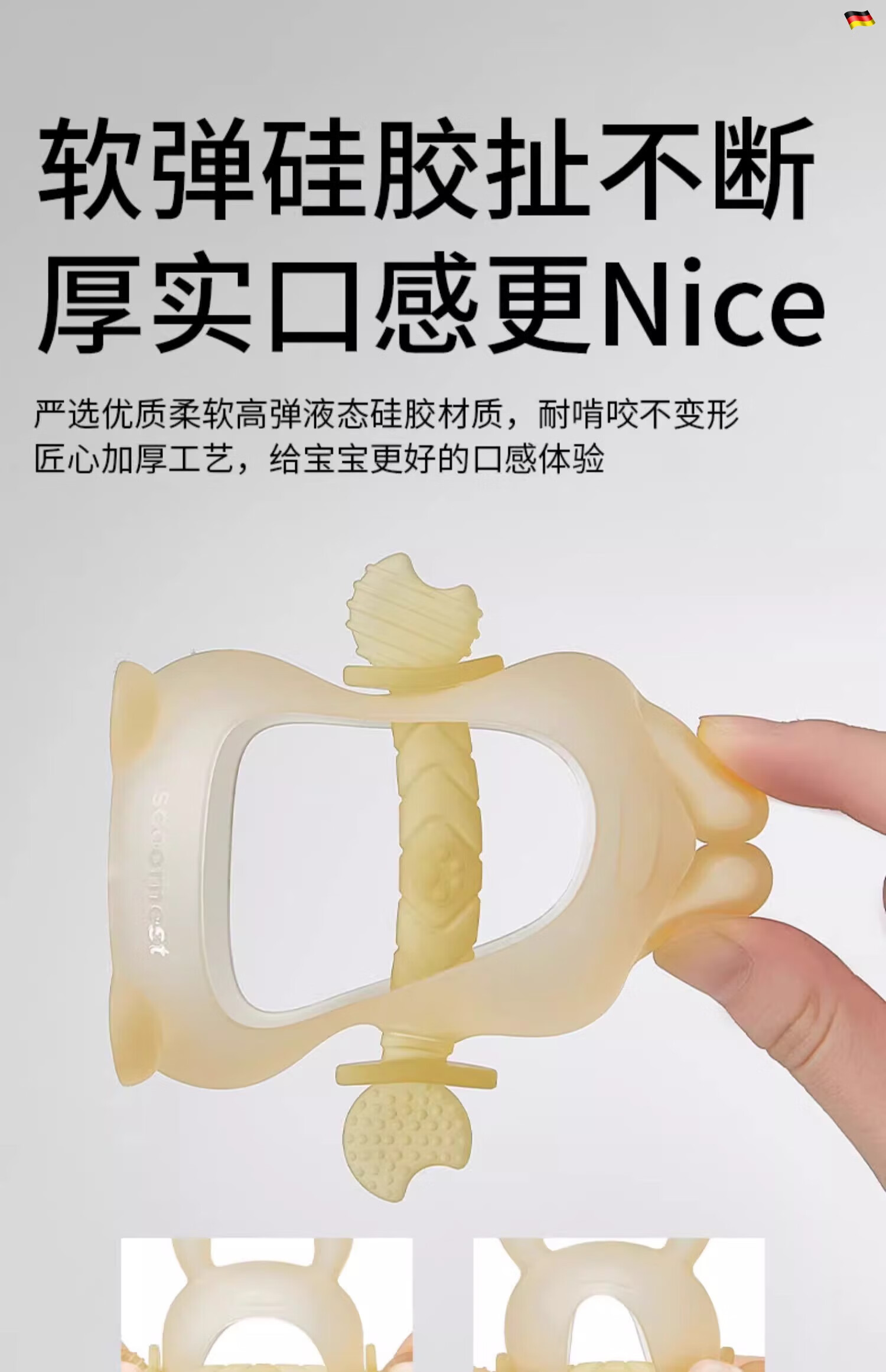 Kachi Muning German Baby Mushroom Teether, Baby Teething Stick, Food Grade Oral Appetite Period Multi-form Anti-eating Hand Artifact, Free Storage Box + Anti-drop Chain, Kerry Yellow