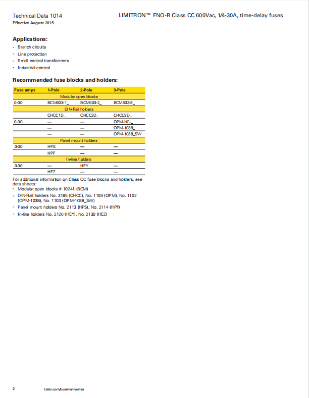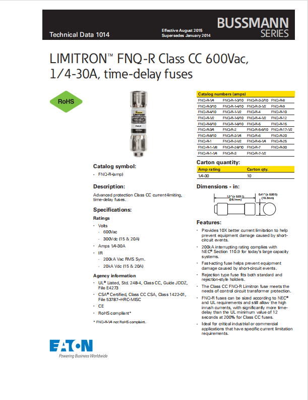 SMVP Bussmann fuse -9-10-12-15-20-25-30 bussmann fuse FNQ-R-6