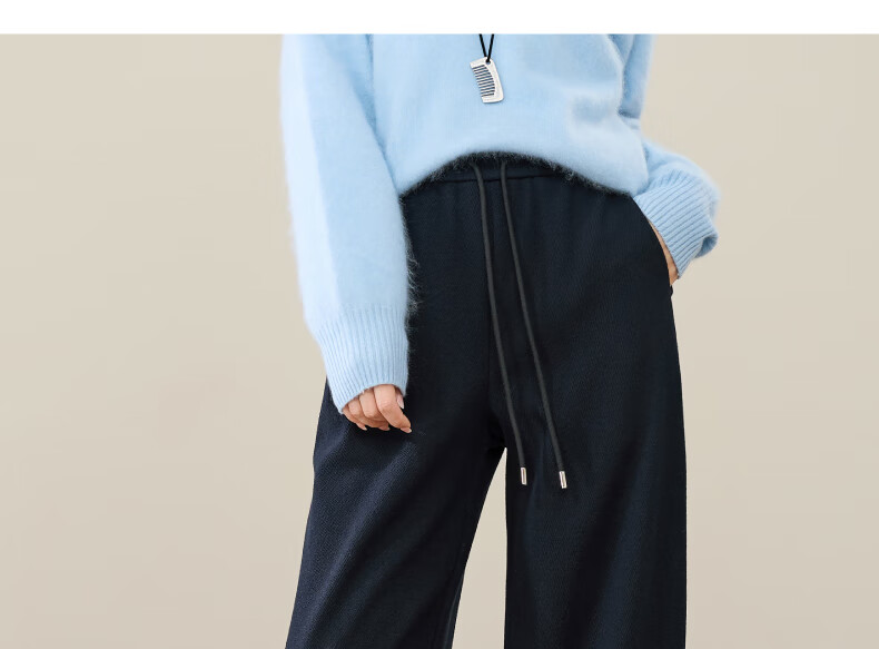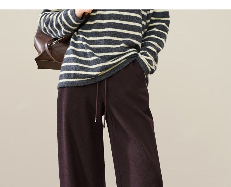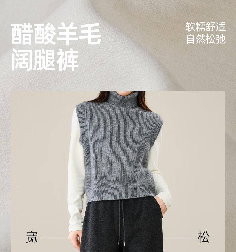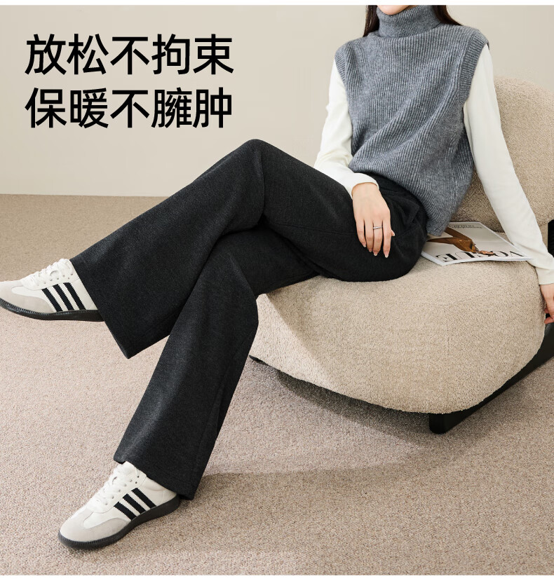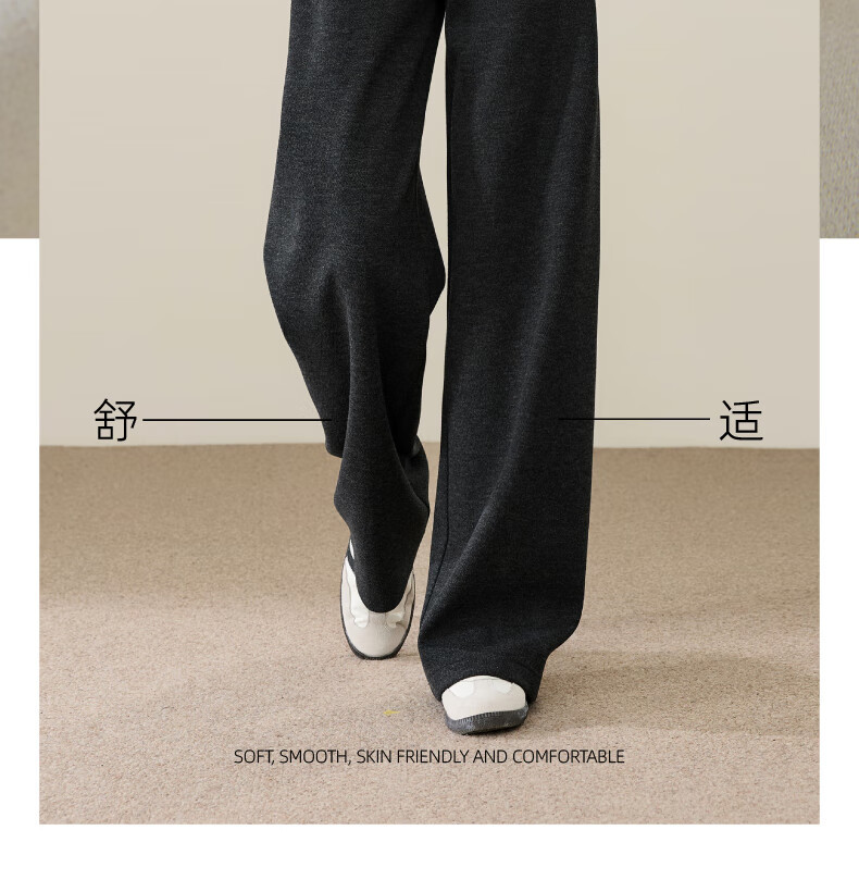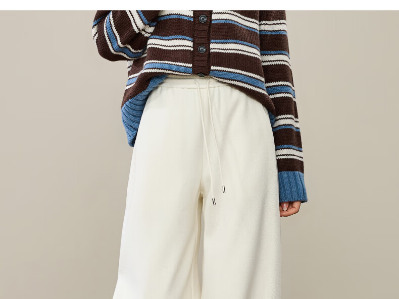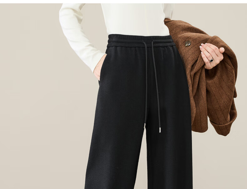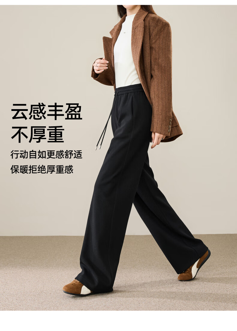 ESE-Y Yiyang acetic acid wool one-piece velvet white wide-leg pants 2025 winter new high-waist drape casual lazy straight pants cream white-small 29