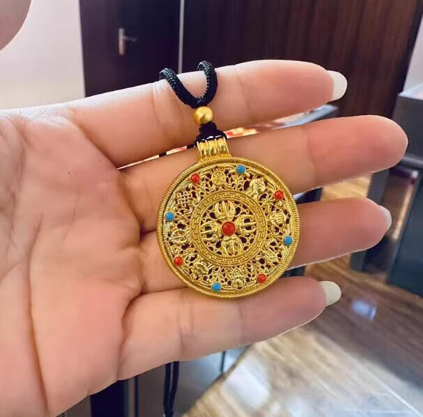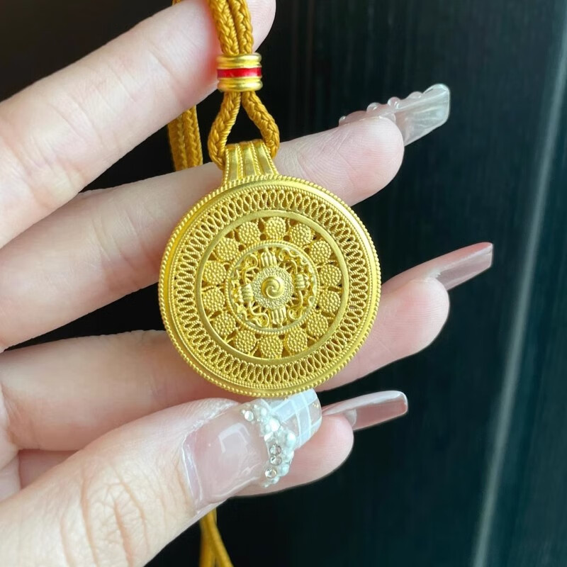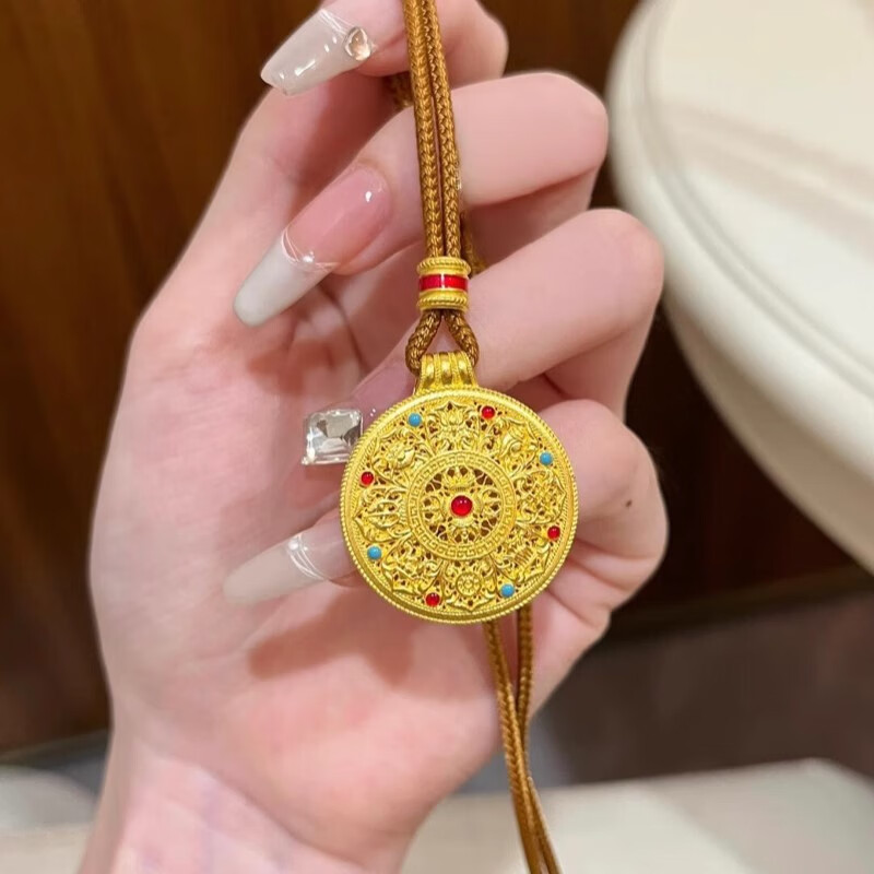Centenary-old Minxiang gold-plated silver enamel pendant sweater chain ancient method inheritance new Chinese style hollow eight-treasure compass enamel color compass comes with brown rope high-end gift box