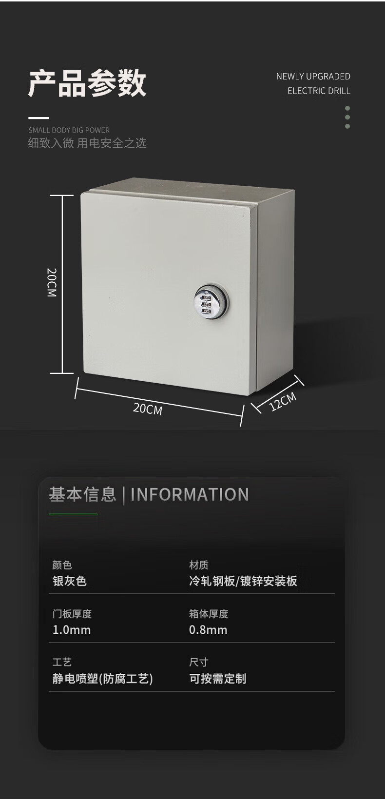 Distribution box electric box household surface-mounted new energy charging protection box with lock outdoor password socket box waterproof and anti-theft 20*15*12 empty box (password lock)