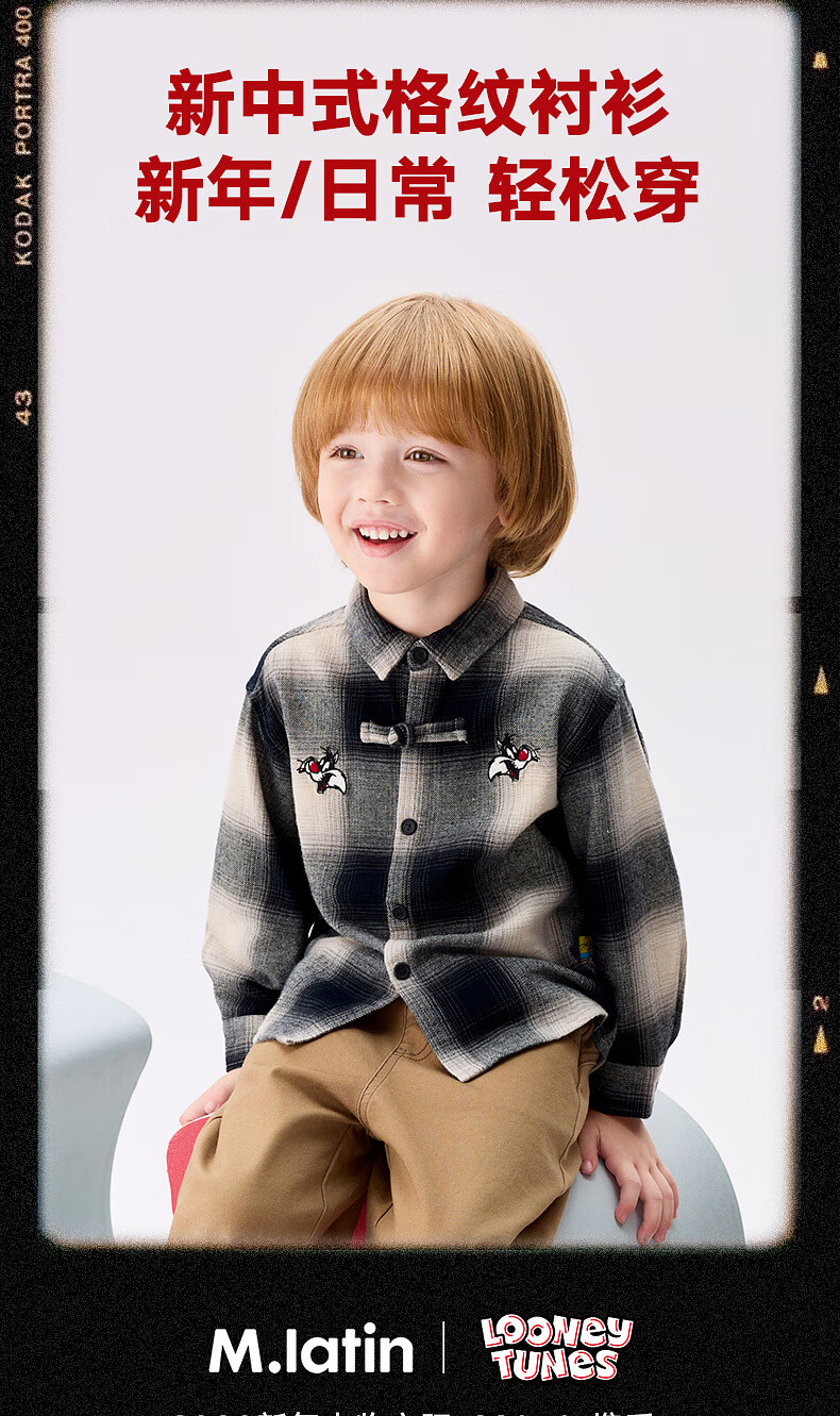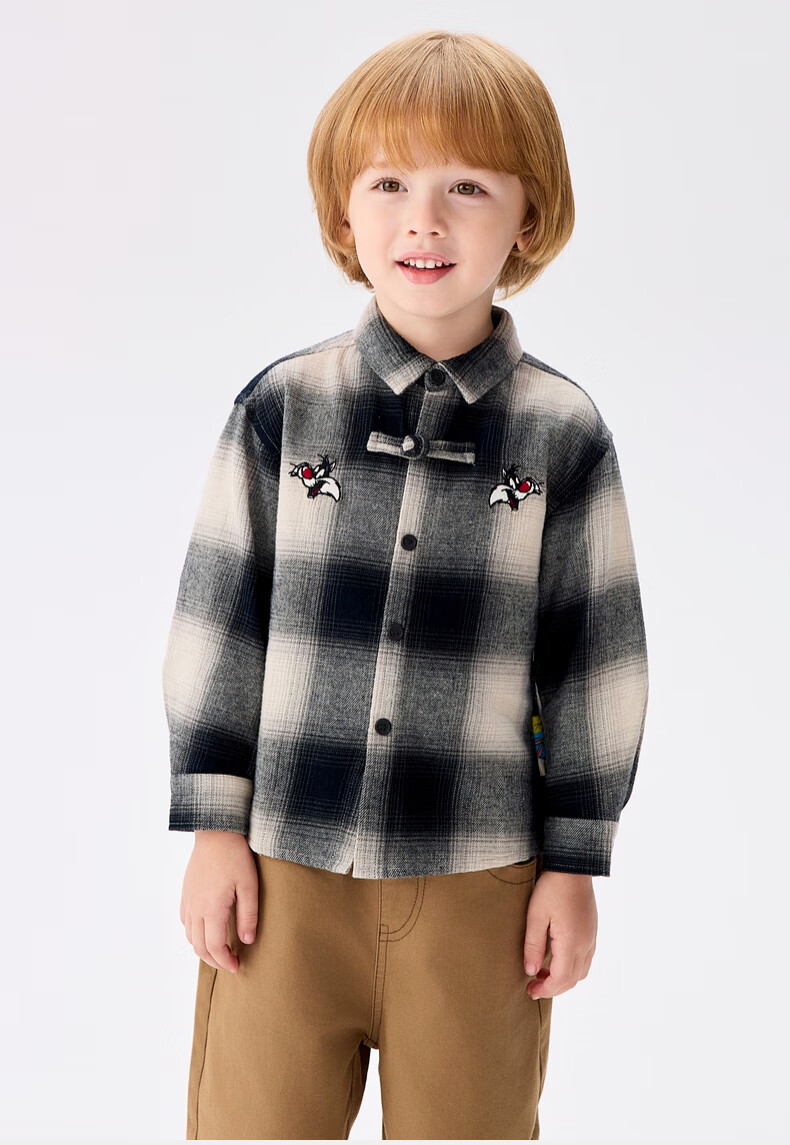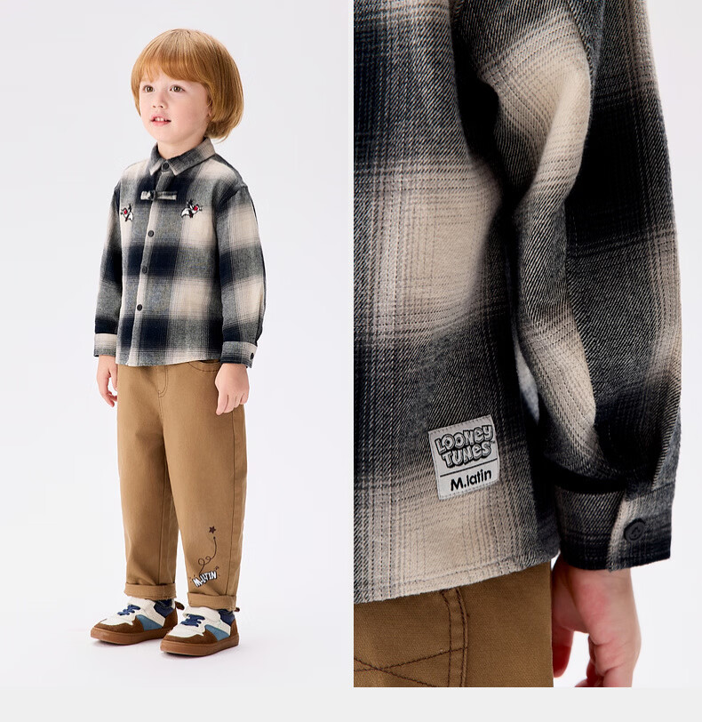 M.Latin M.Latin children's clothing children's shirt 2026 spring new style boys' cute and exquisite embroidered long-sleeved shirt black sesame cake 100