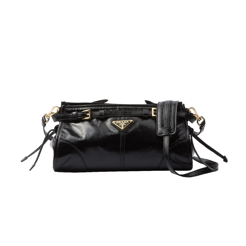 PRADA Bonnie series women's black calfskin small shoulder bag 1BH215_2CYR_F0002_V_OOO 14x26x12cm