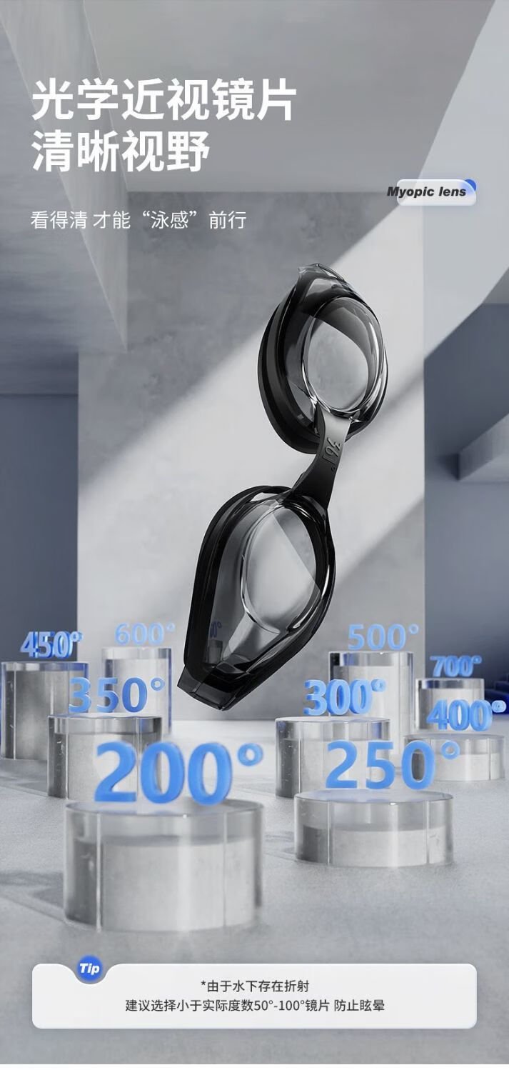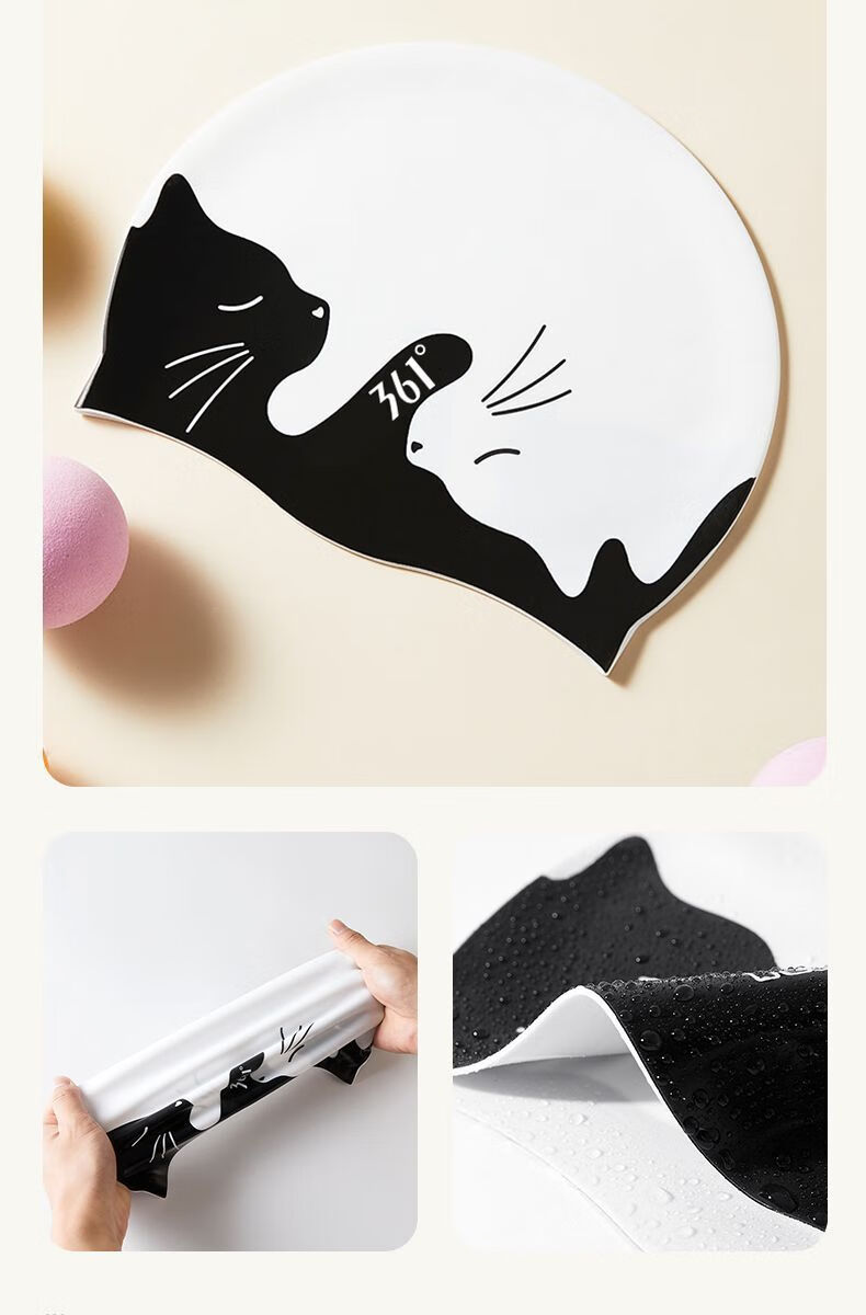 361 361 Swimming goggles waterproof, anti-fog, high-definition myopia degree, men's and women's professional swimming goggles, diving and swimming cap three-piece set, black swimming goggles + white cat swimming cap with black bottom + nose clip earplugs -250 degrees -