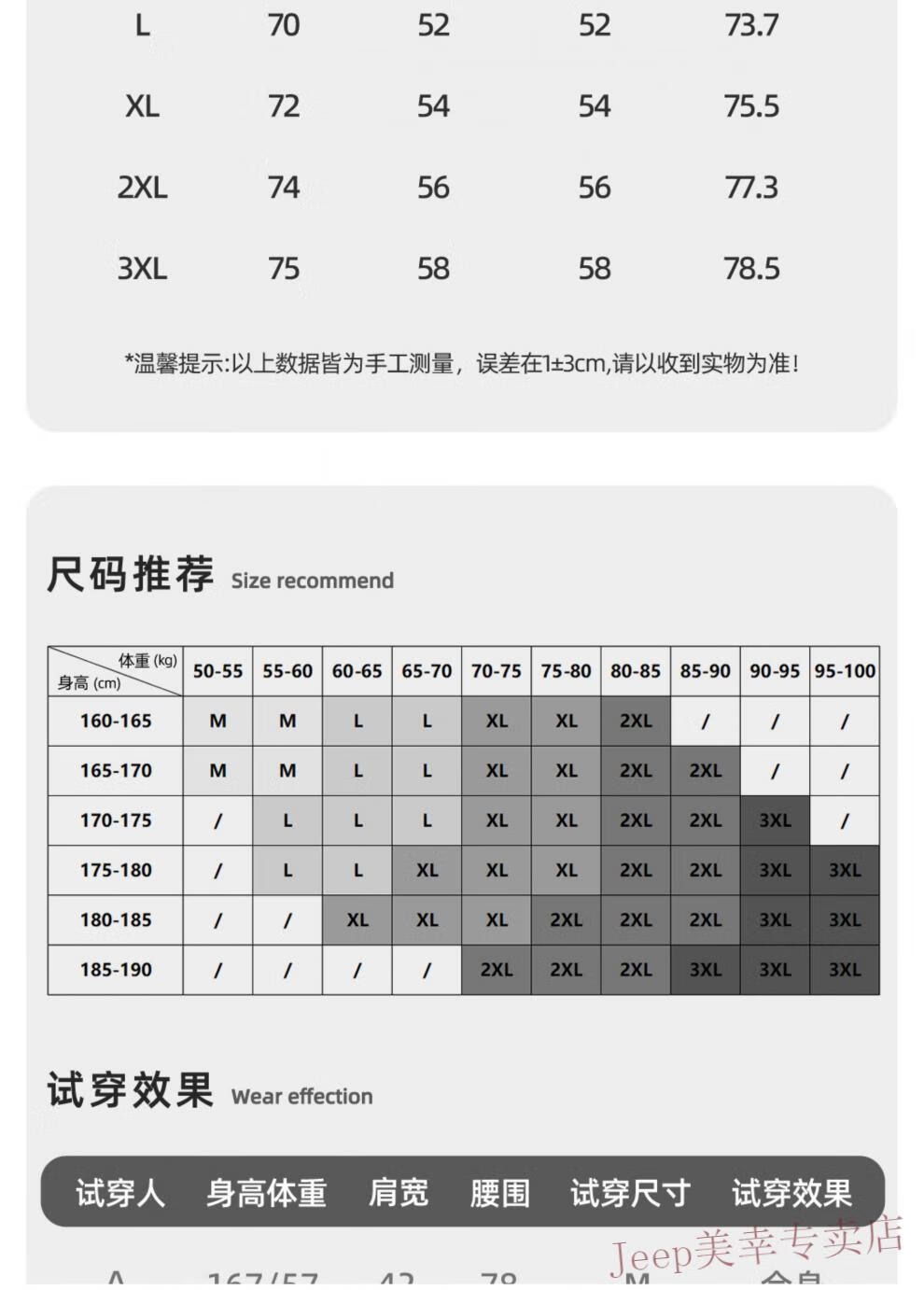 China (cm) 165 / 88-90 170 / 96-98 175 / 108-110 180 / 118-122 185 / 126-130