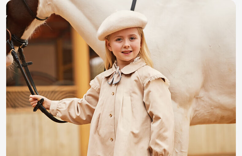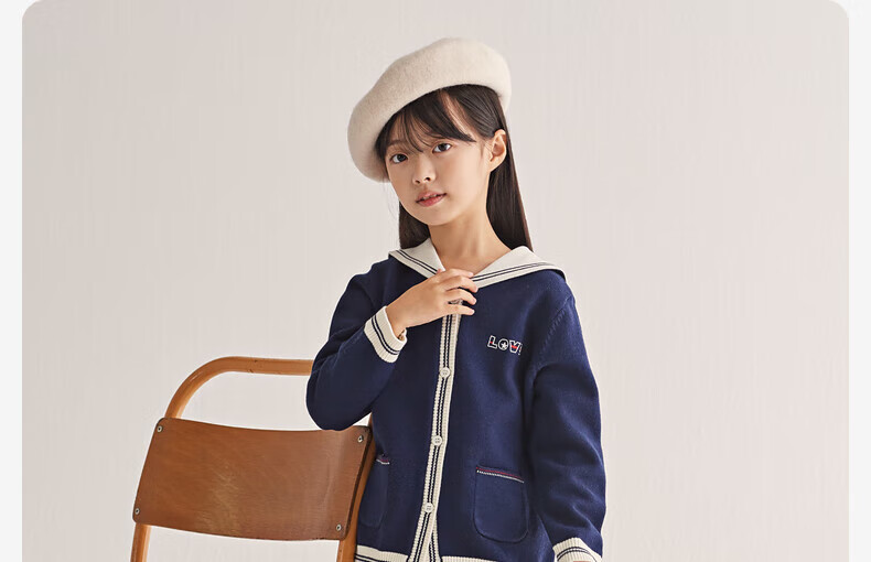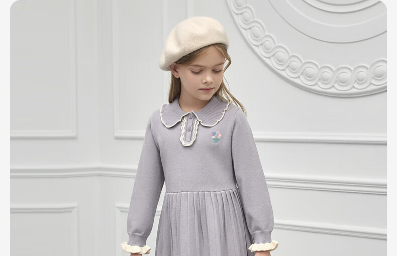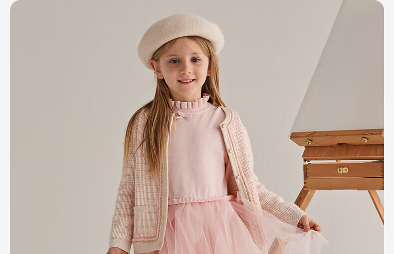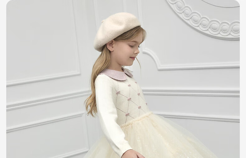 DAVE&BELLA girls' hats, stylish children's berets, wool, medium and large children's pullover hats, autumn and winter new children's hats, warm hats, off-white, in stock 50 (recommended hat circumference is about 48-50cm)