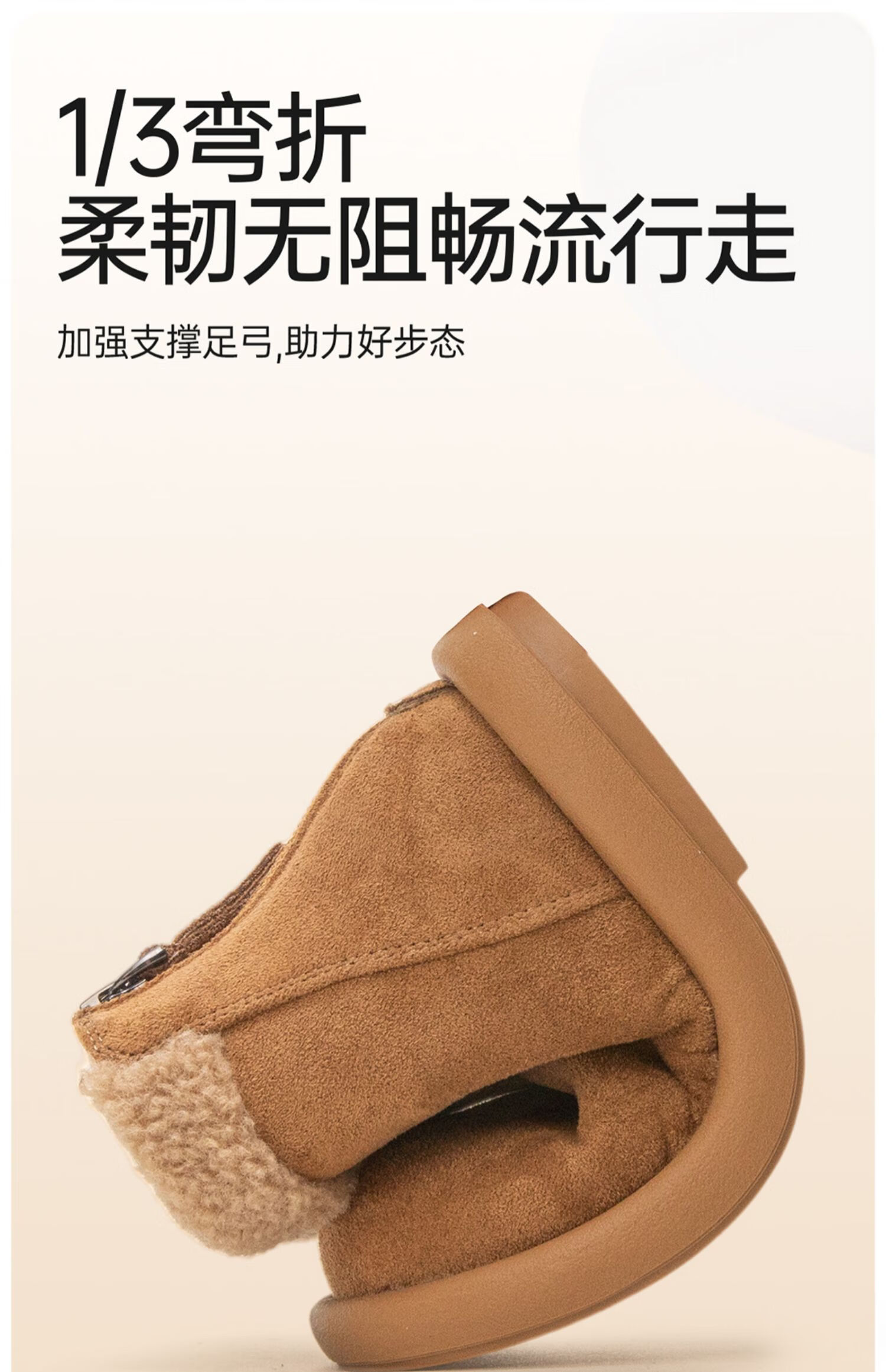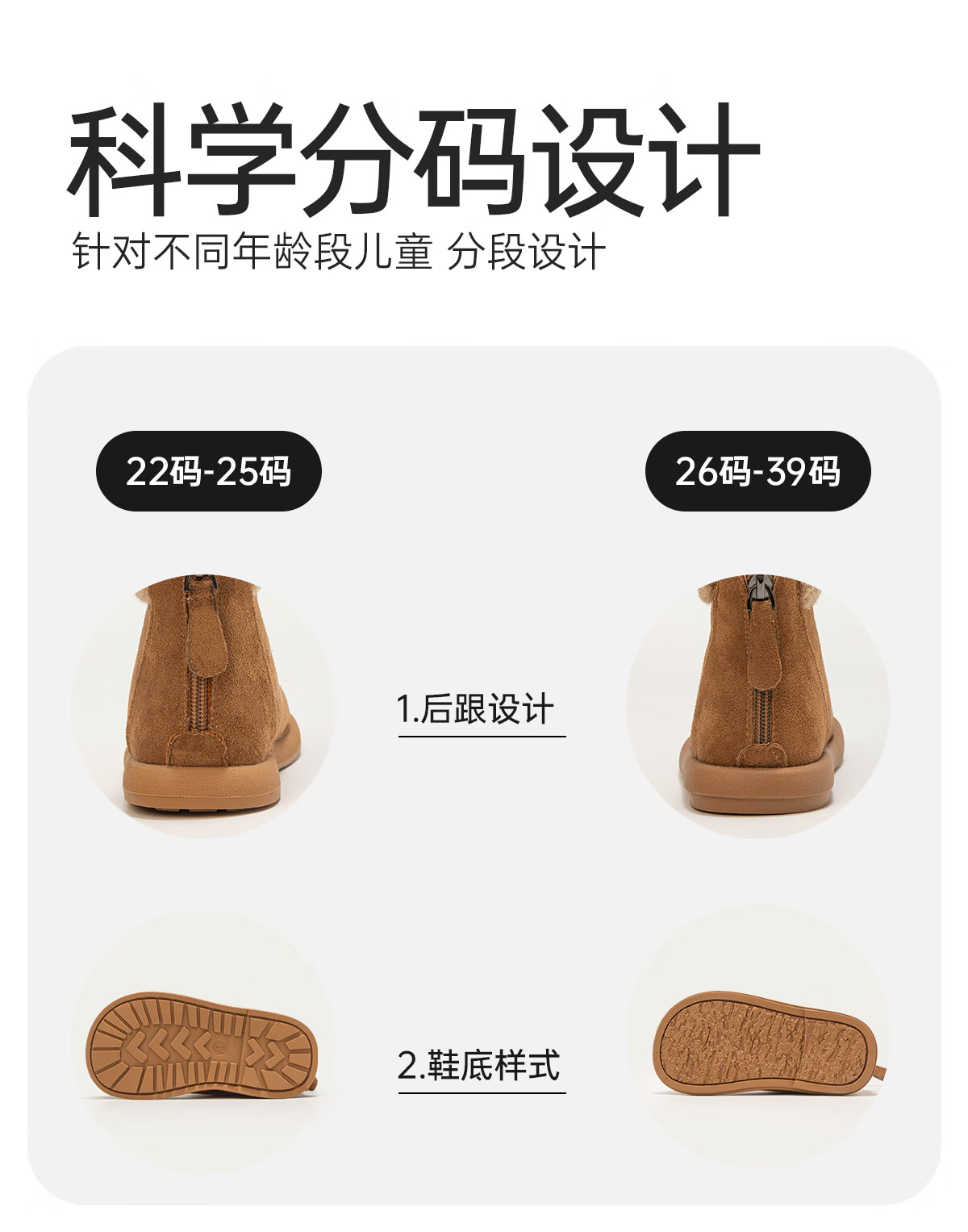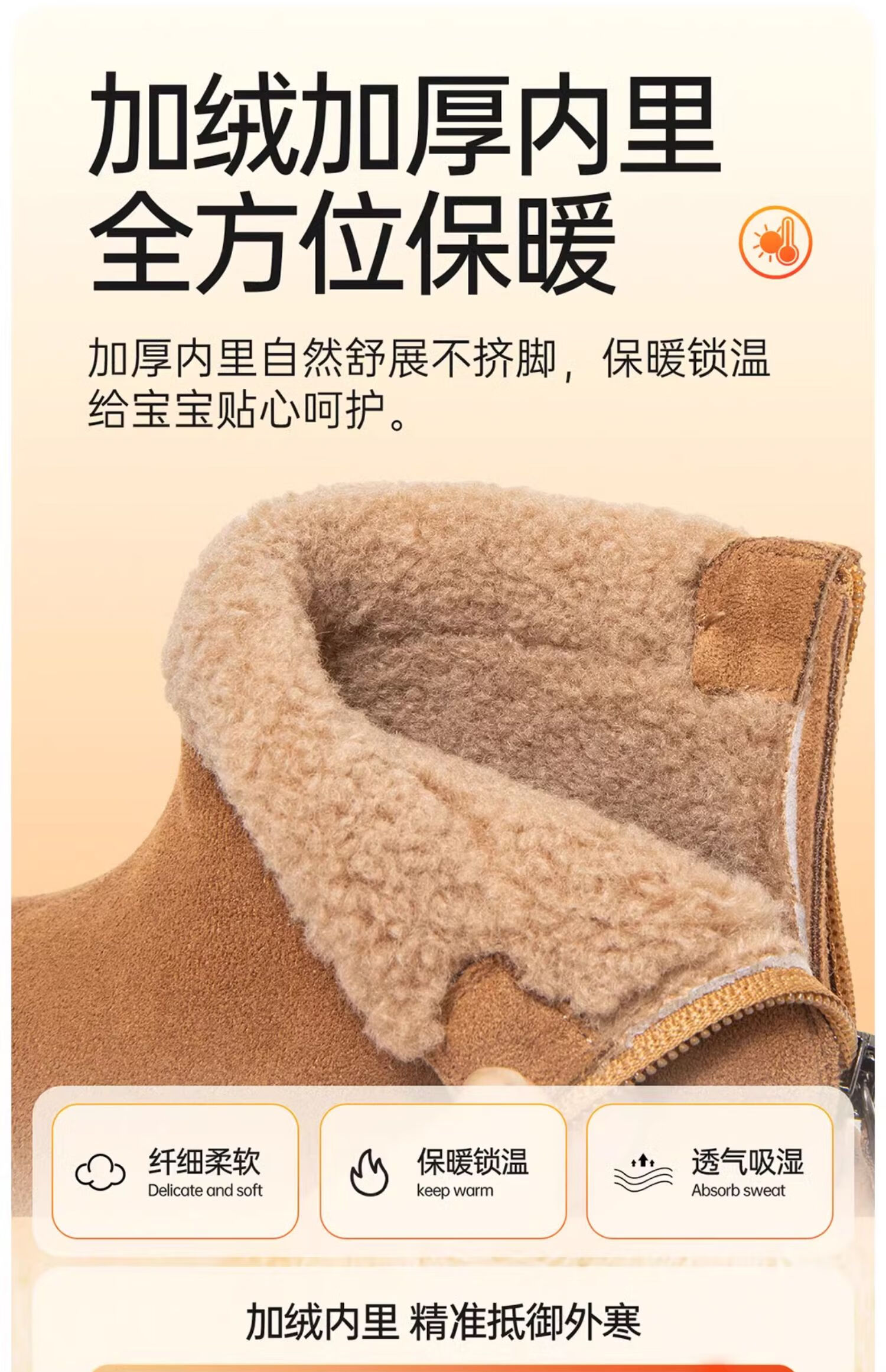 Girls' boots 2025 winter new snow boots children's short boots autumn and winter big children's shoes plus velvet cotton shoes Martin boots camel large cotton size 37 shoe inner length 22.5cm