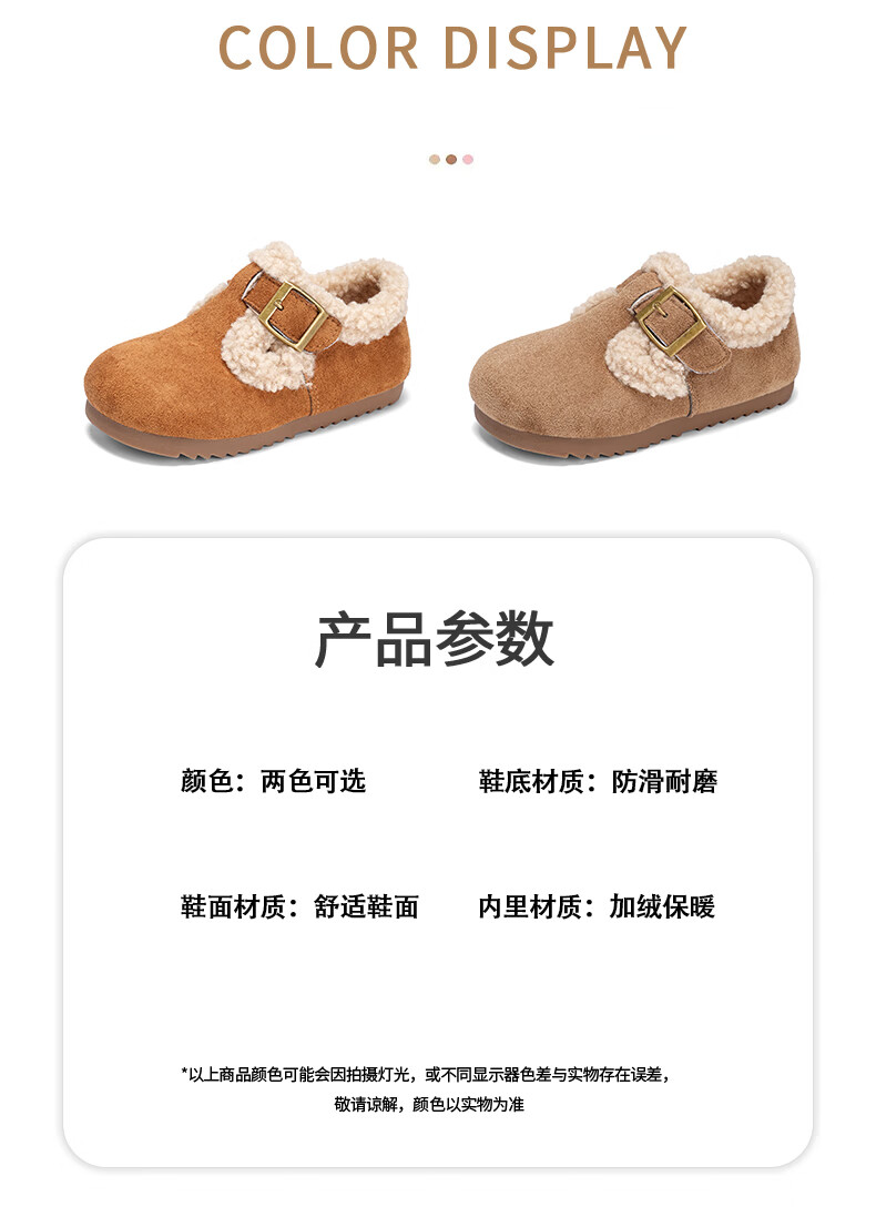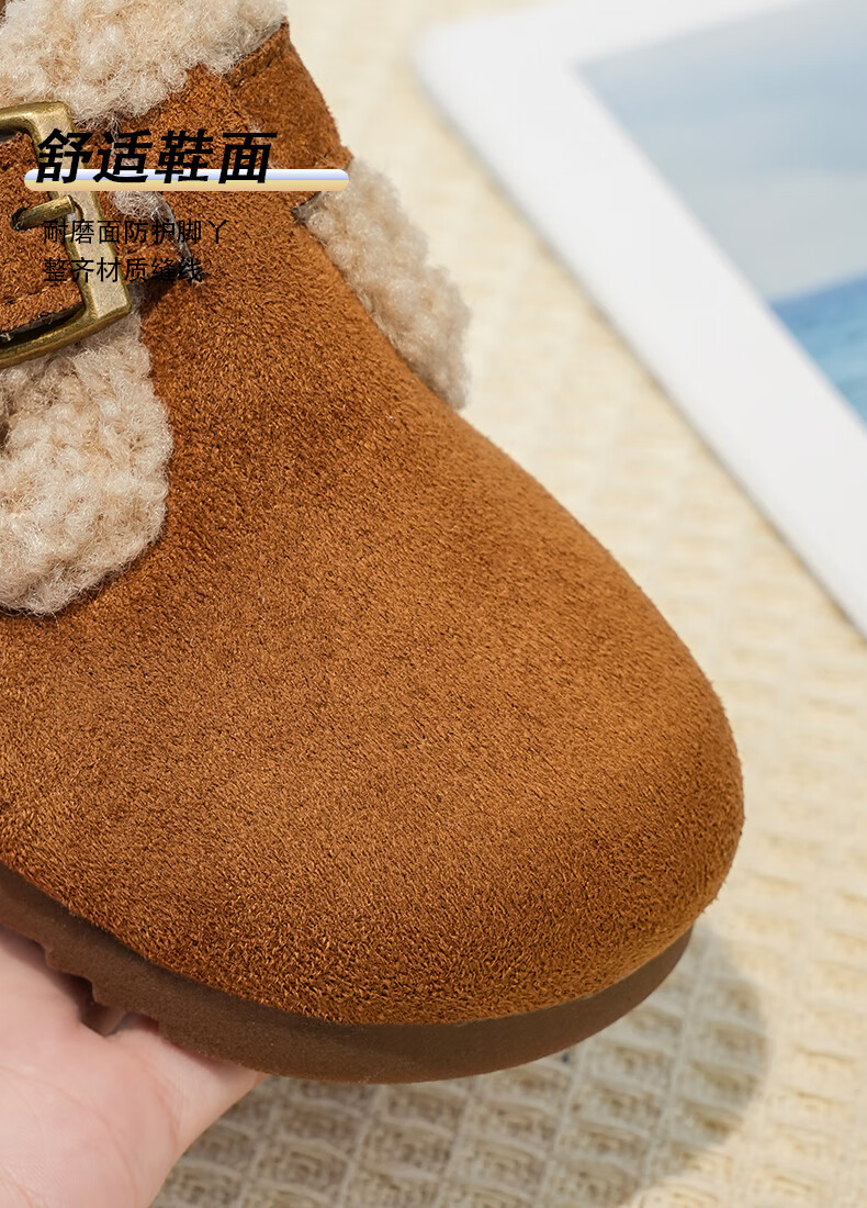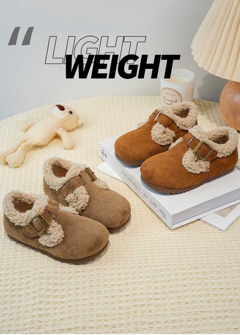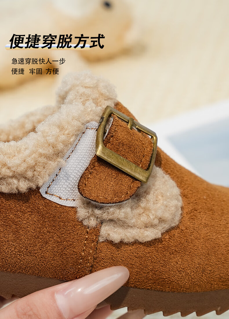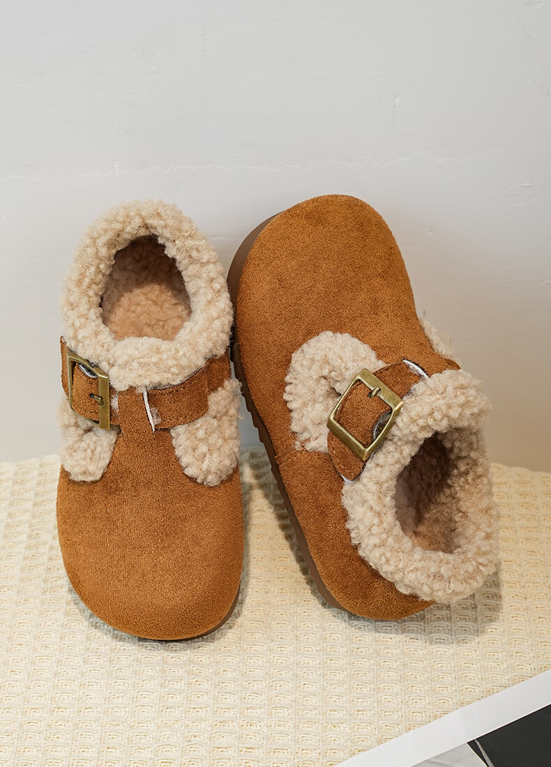 Girls' Birkenstock shoes plus velvet children's shoes 2025 winter new little girl's cotton shoes autumn and winter edamame shoes khaki color size 34 inner length 20.8cm