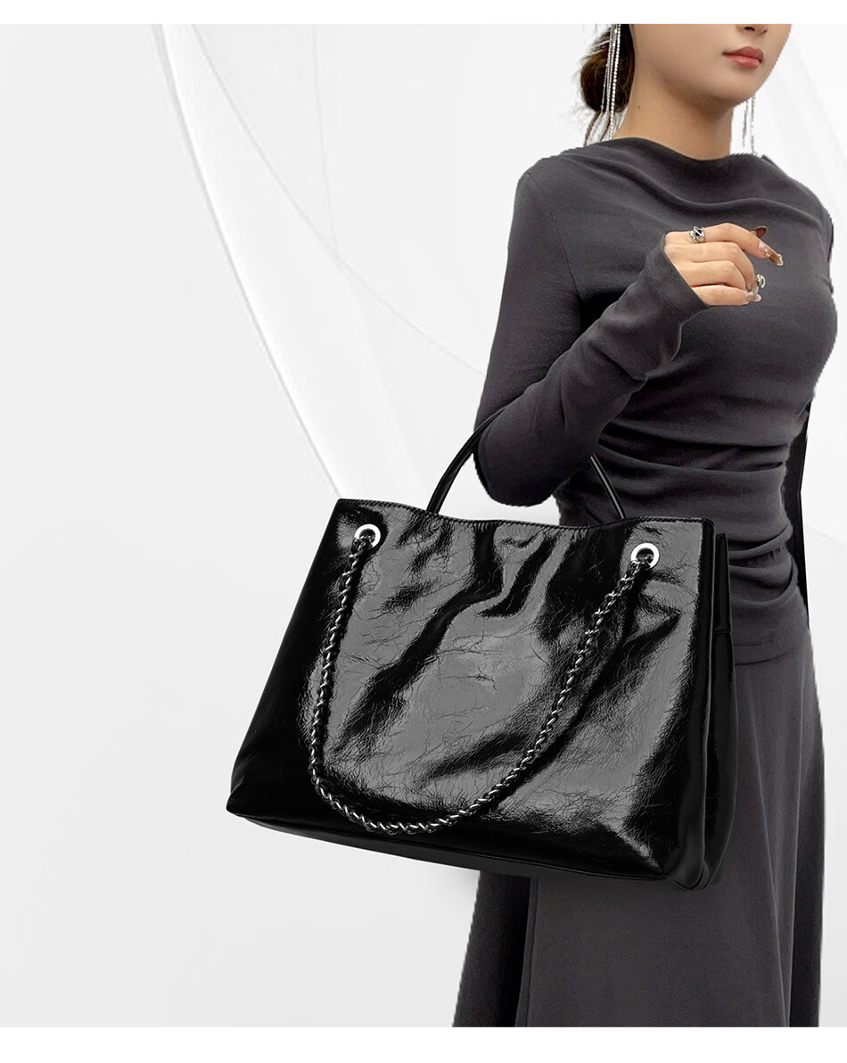 Reessy luxury women's bag handbag large capacity tote bag 2026 new fashion commuter middle-aged shoulder bag light luxury black (gift box packaging)