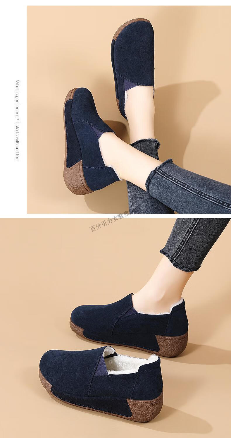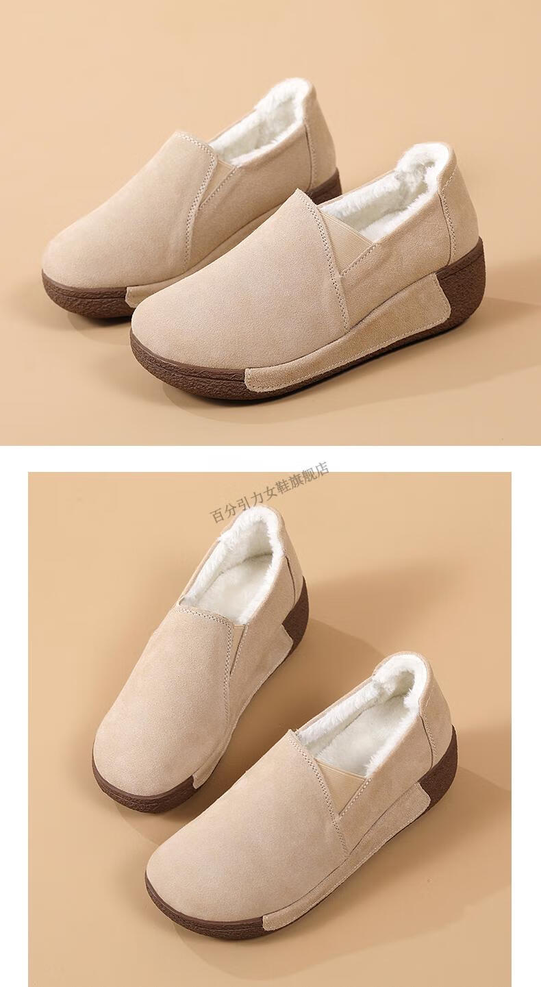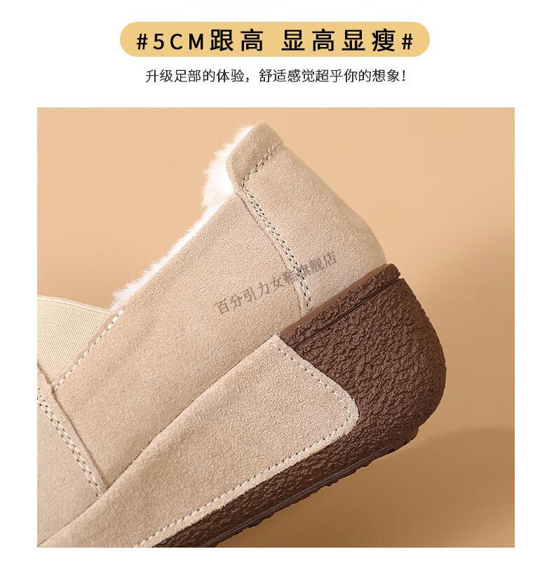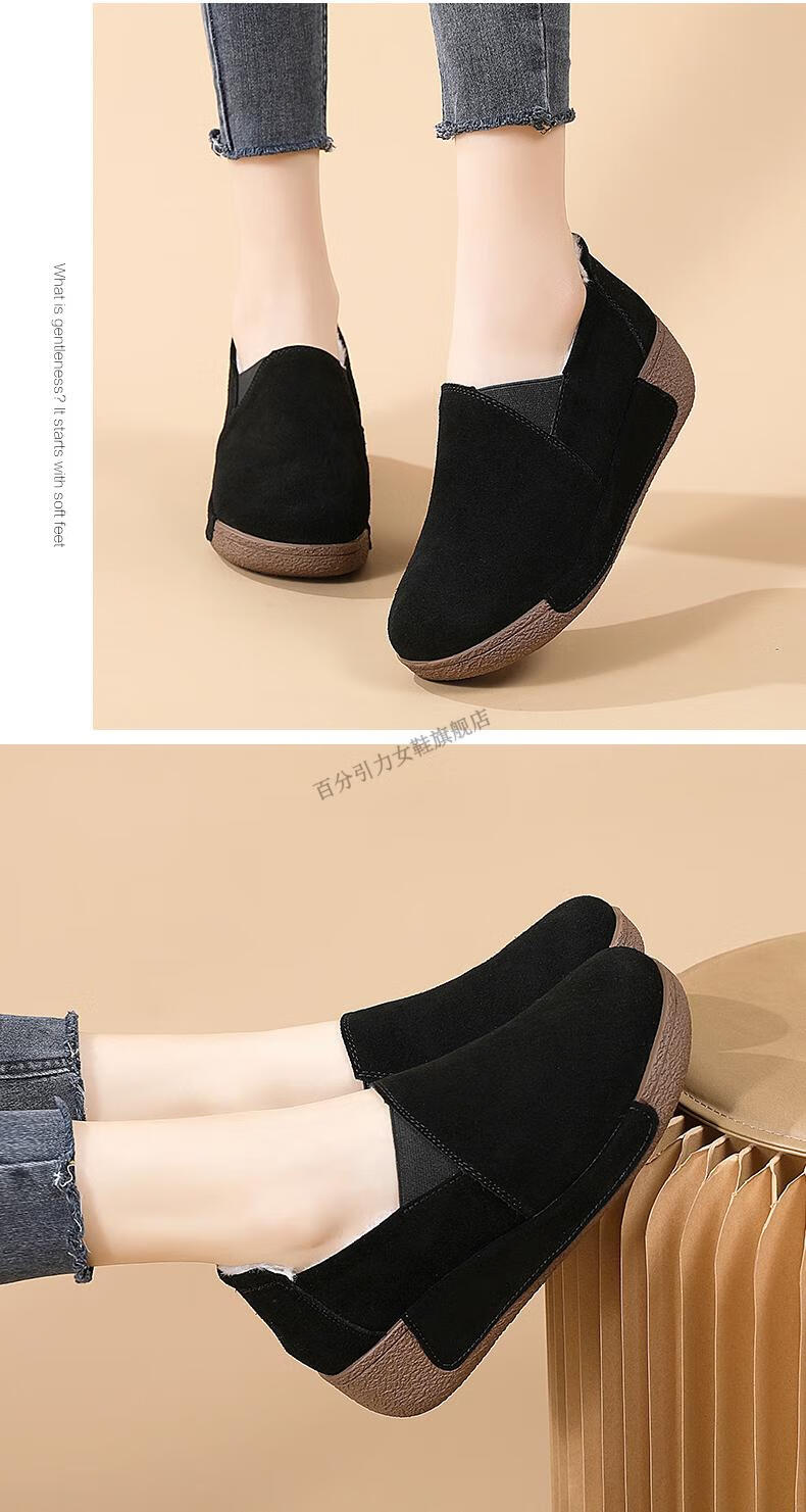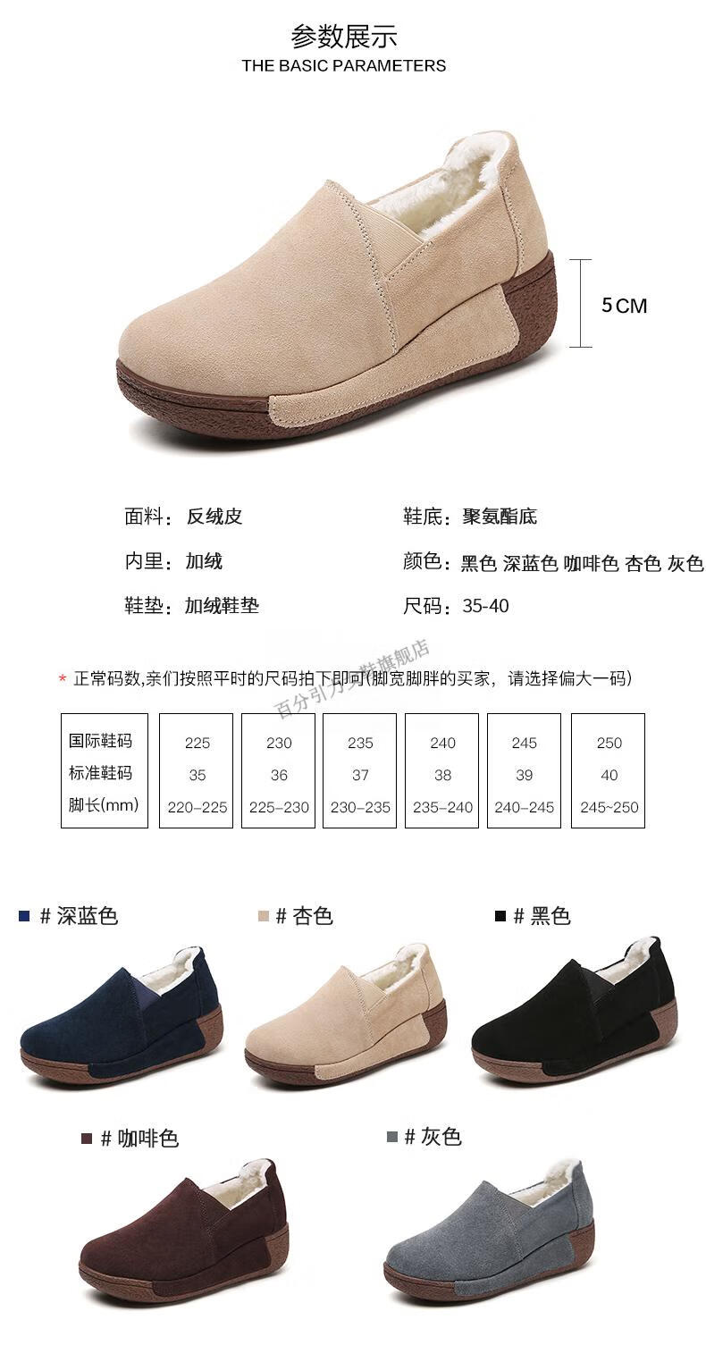 100% Gravity Old Beijing Cloth Shoes Women's Winter Plus Velvet Slip-On Cotton Shoes Winter Wedge Heel Increased Women's Soft Sole Casual Mom Shoes Black 5.0cm Upgraded Model 38_Enjoy Priority Shipping with Additional Purchases