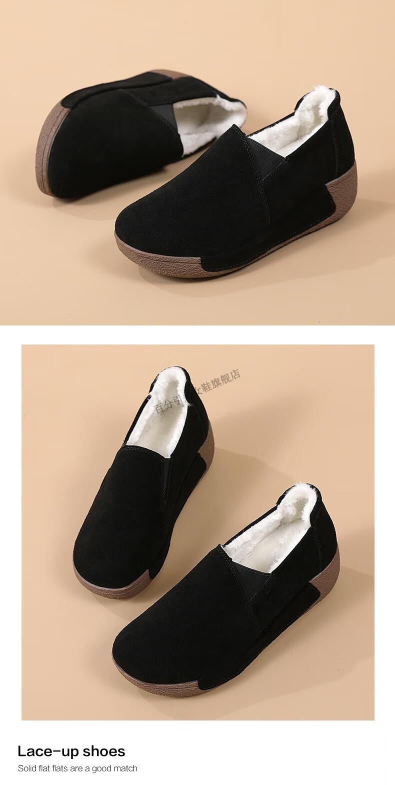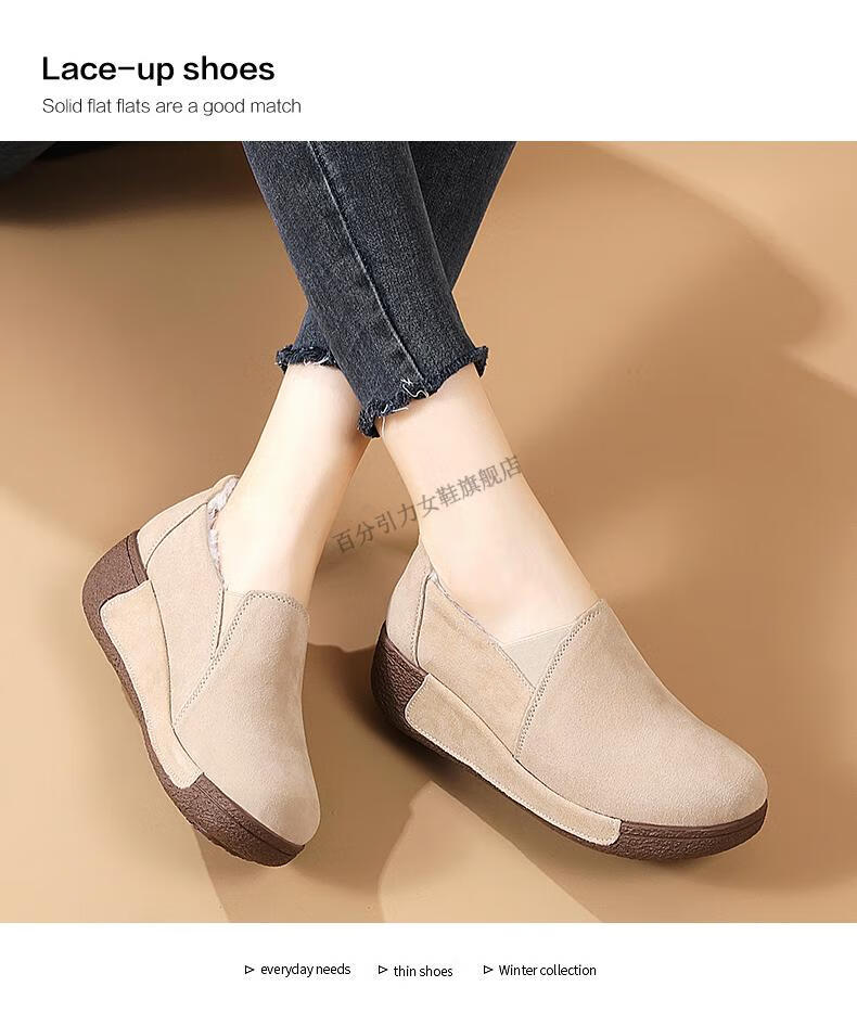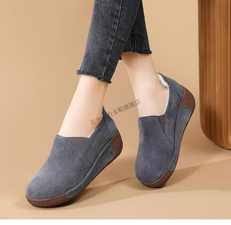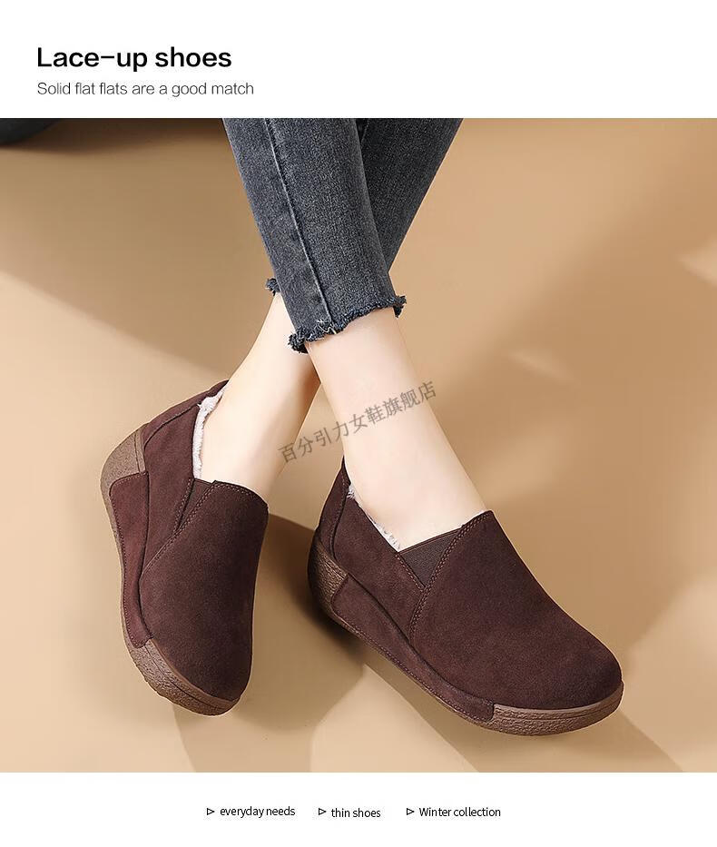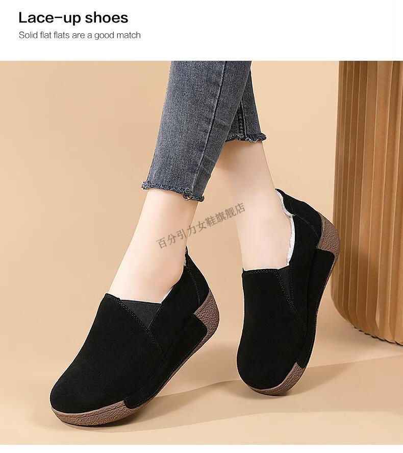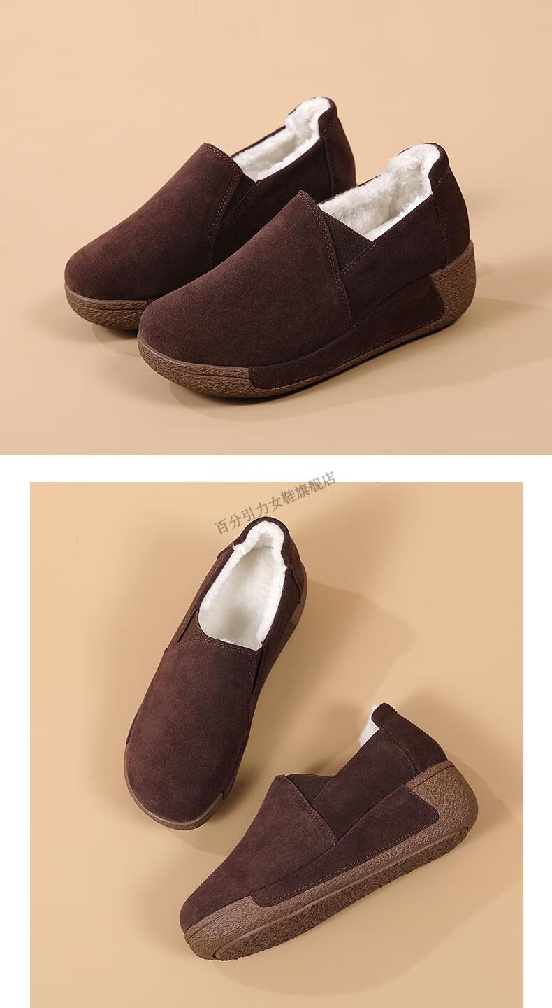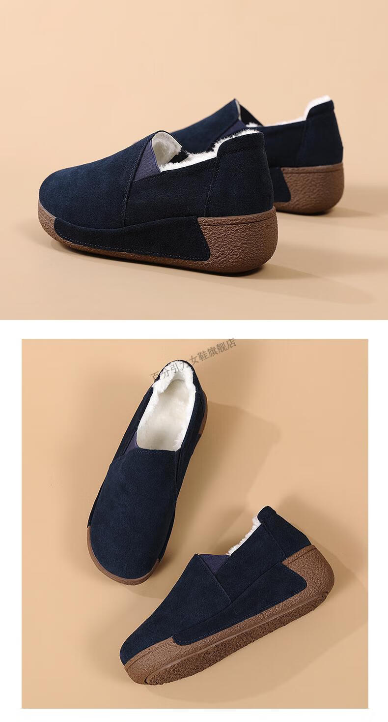 100% Gravity Old Beijing Cloth Shoes Women's Winter Plus Velvet Slip-On Cotton Shoes Winter Wedge Heel Increased Women's Soft Sole Casual Mom Shoes Black 5.0cm Upgraded Model 38_Enjoy Priority Shipping with Additional Purchases