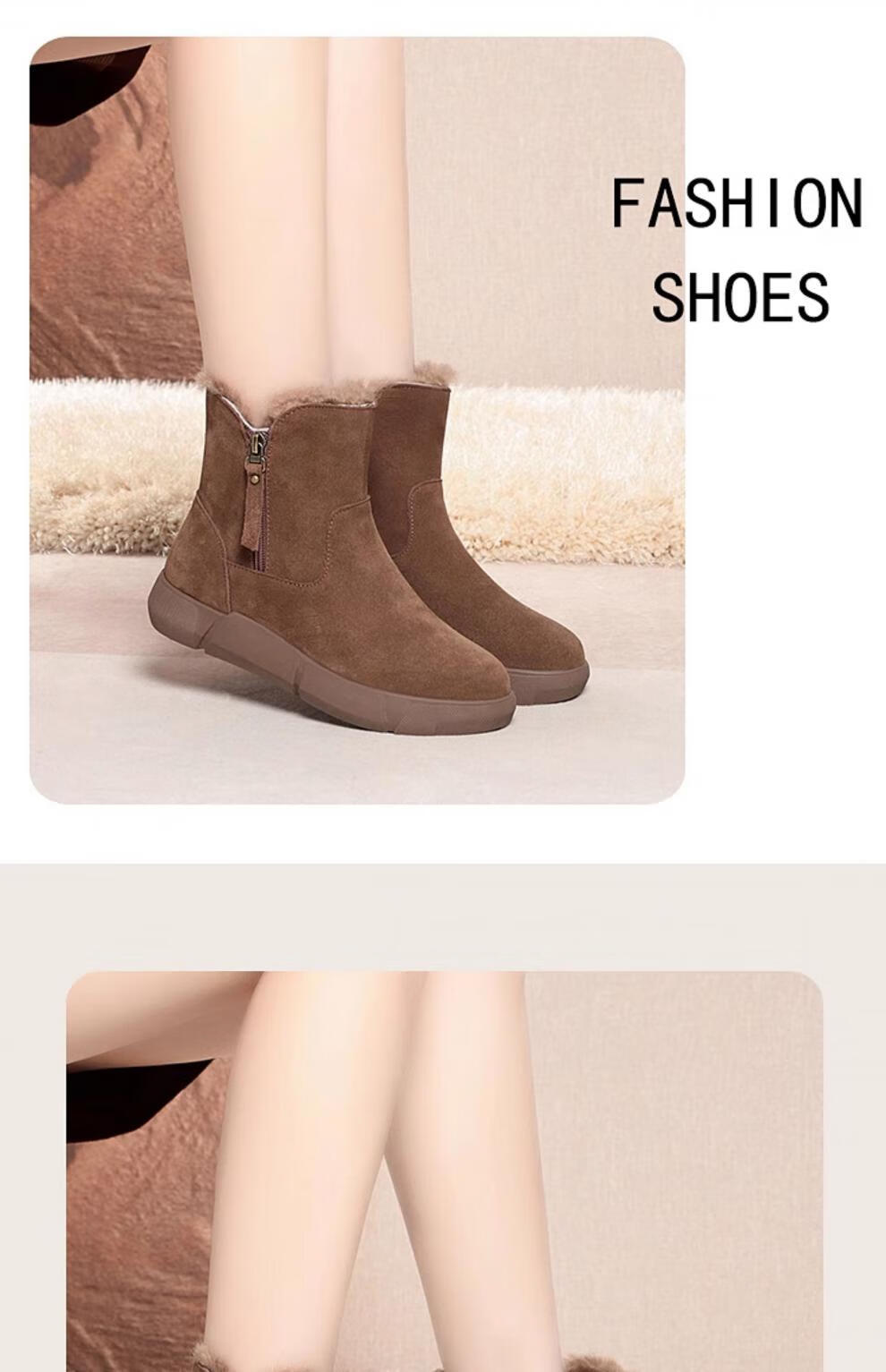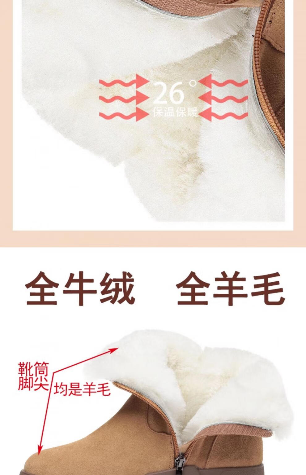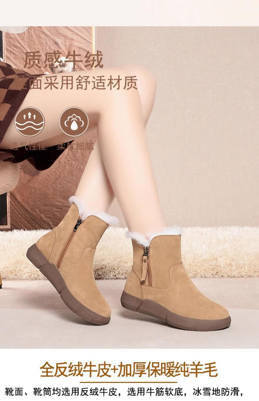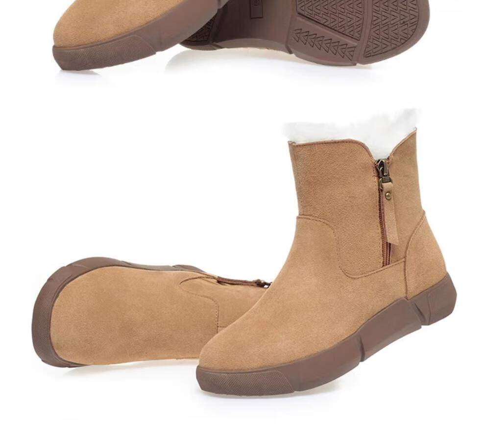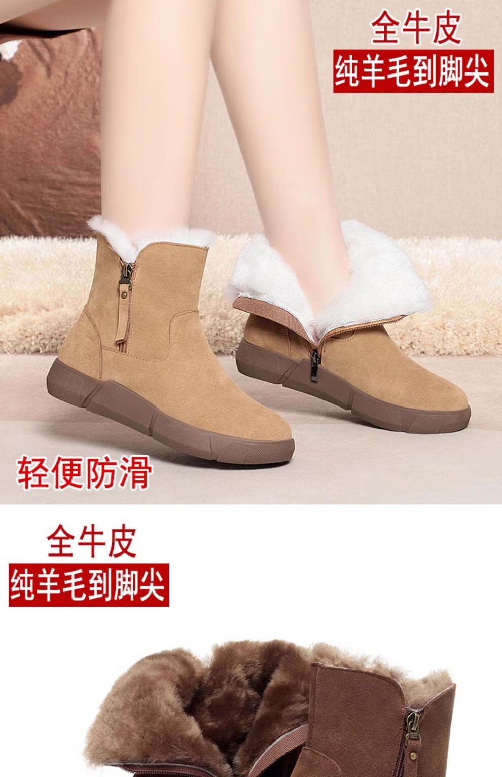 Belle fur-in-one genuine leather snow boots for women Martin boots plus velvet thick-soled short boots for women mother cotton shoes wool yellow (fleece lining) 39