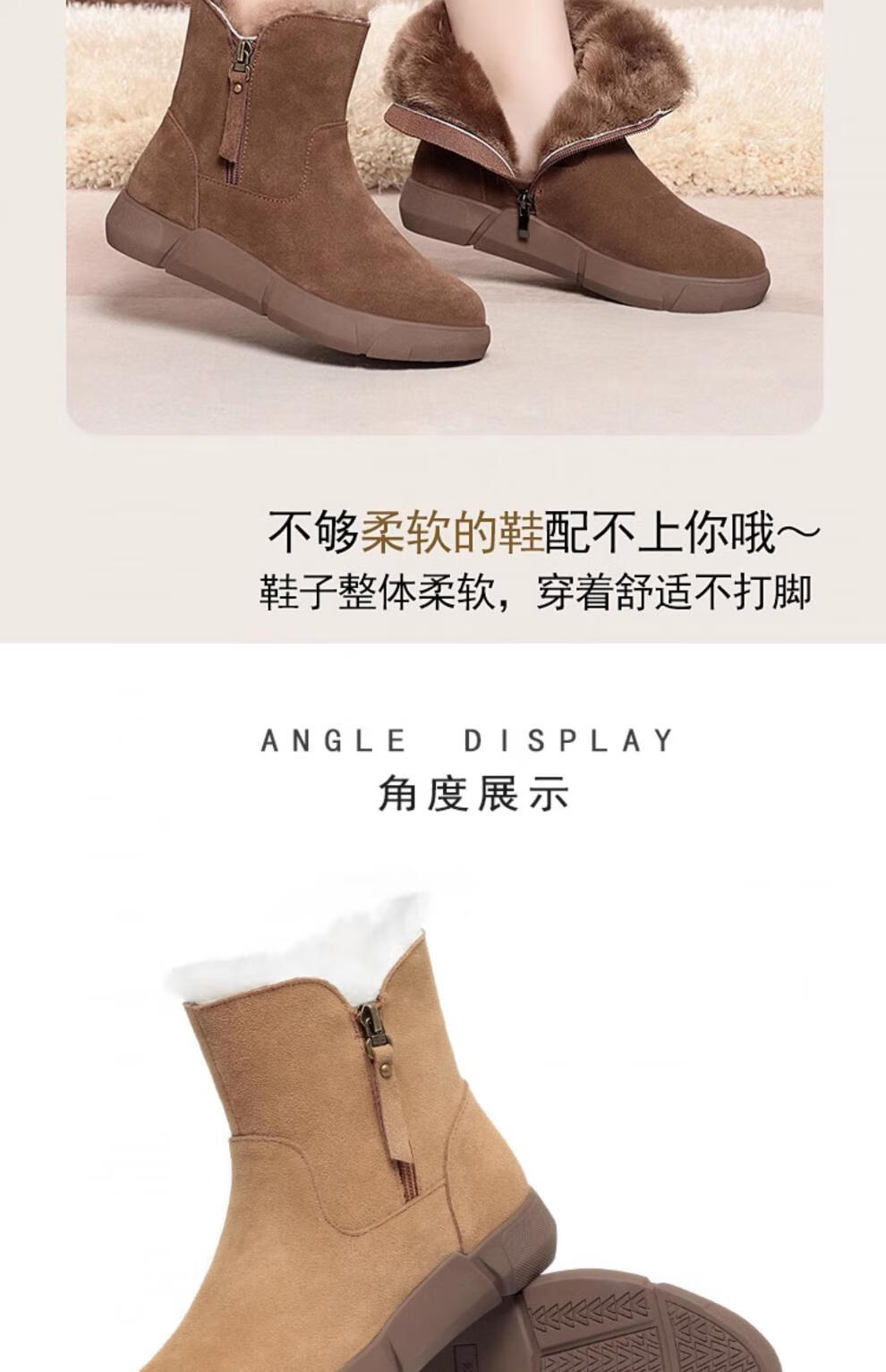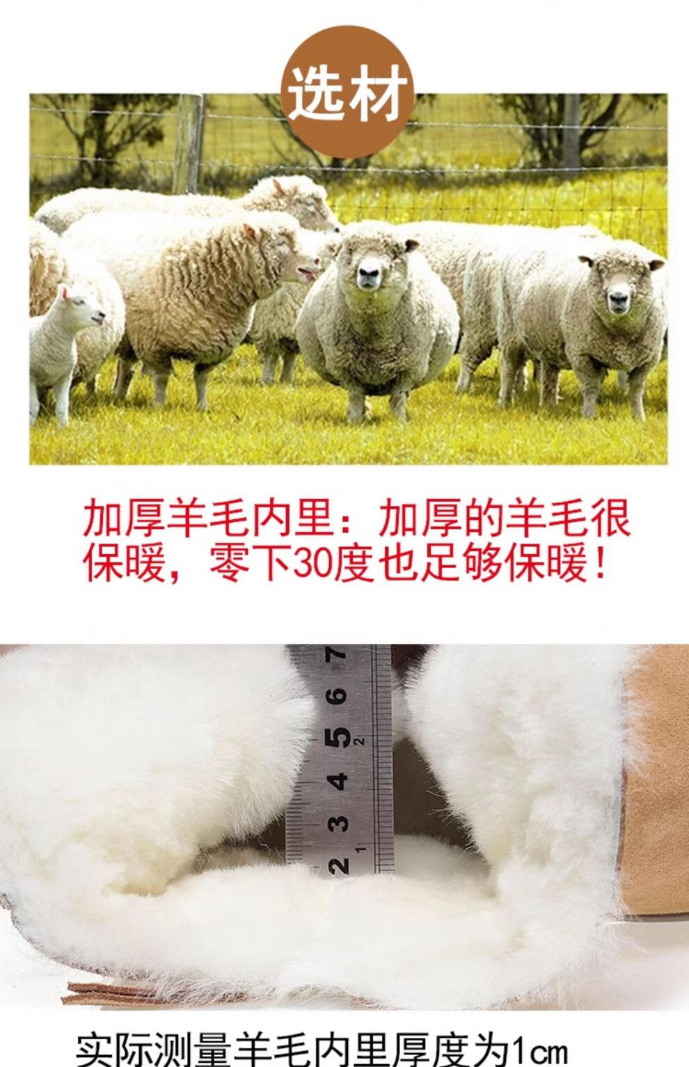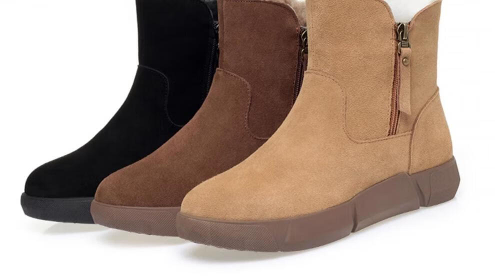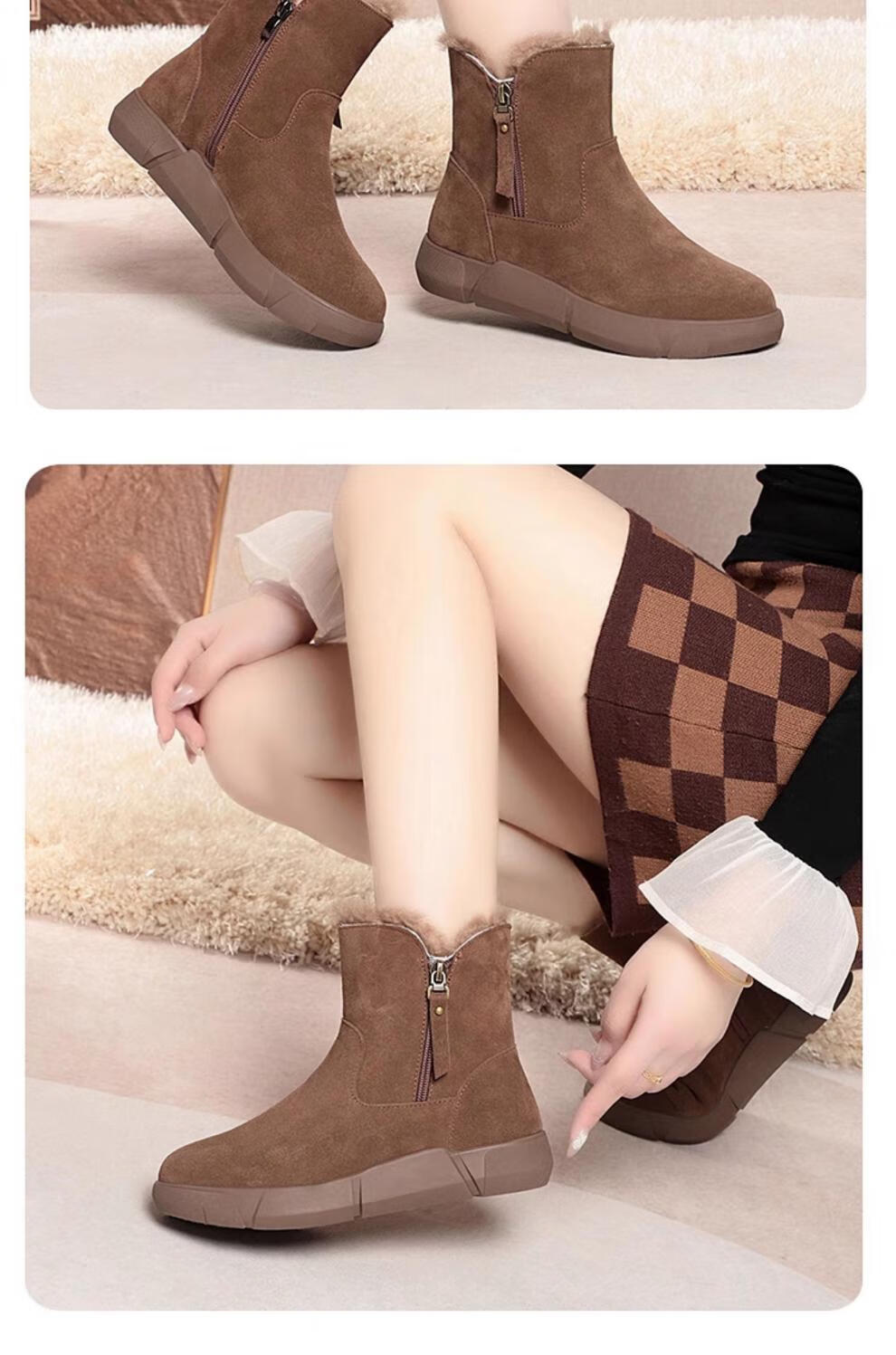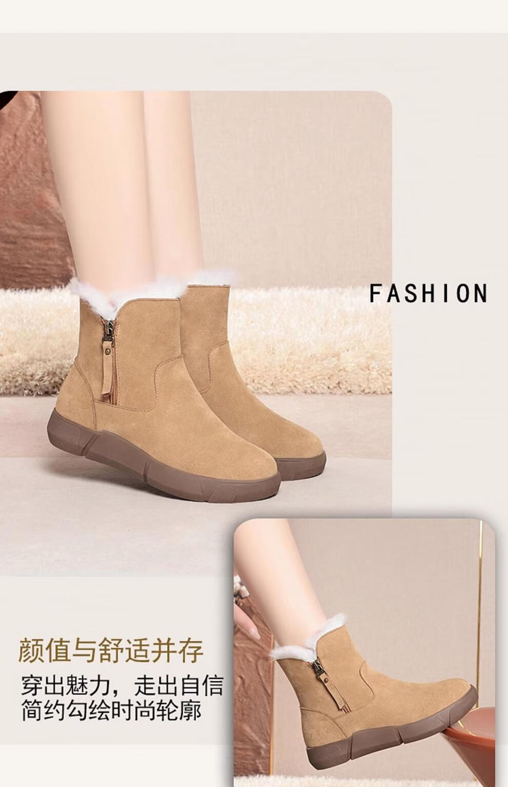 Belle fur-in-one genuine leather snow boots for women Martin boots plus velvet thick-soled short boots for women mother cotton shoes wool yellow (fleece lining) 39