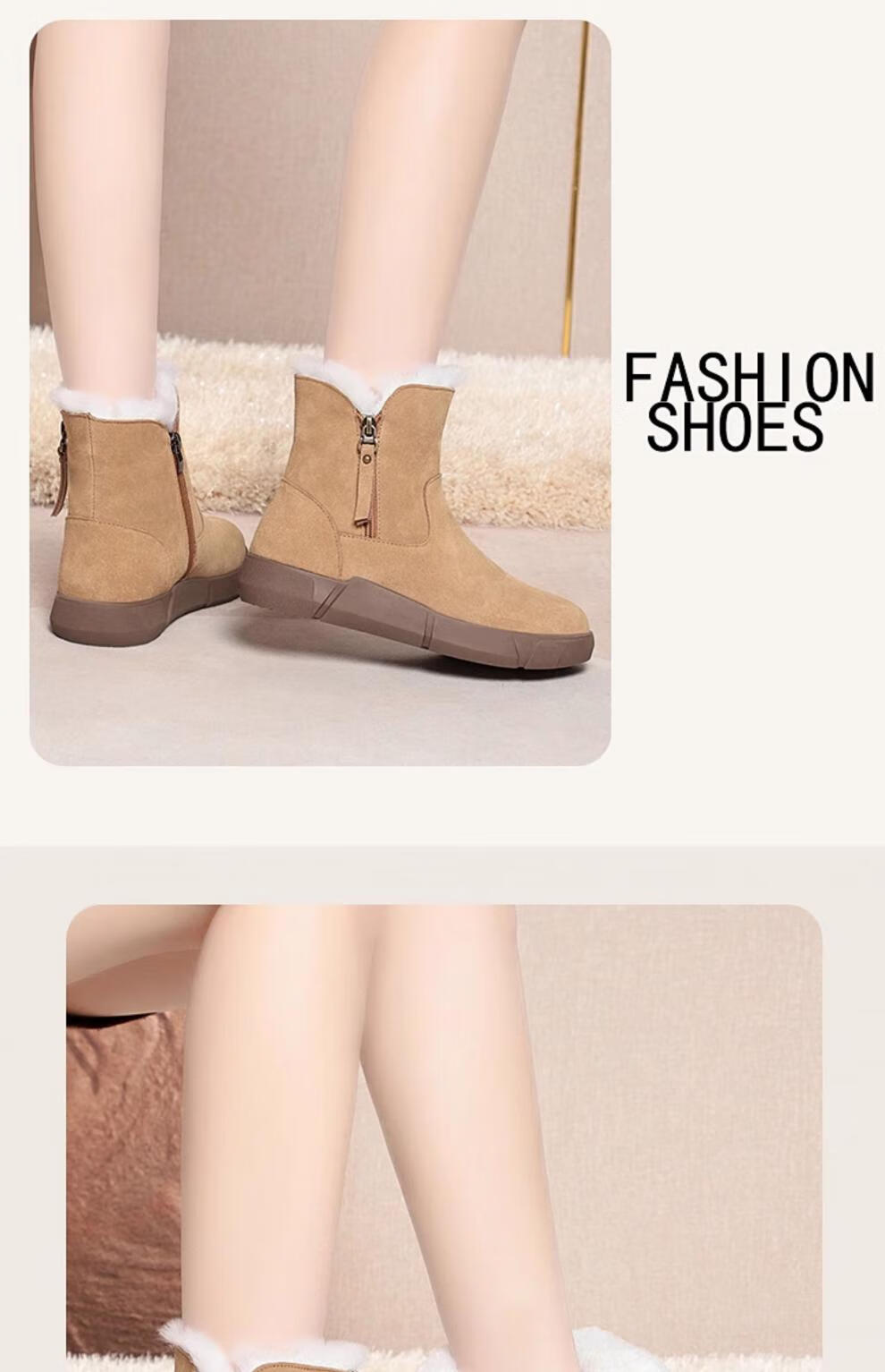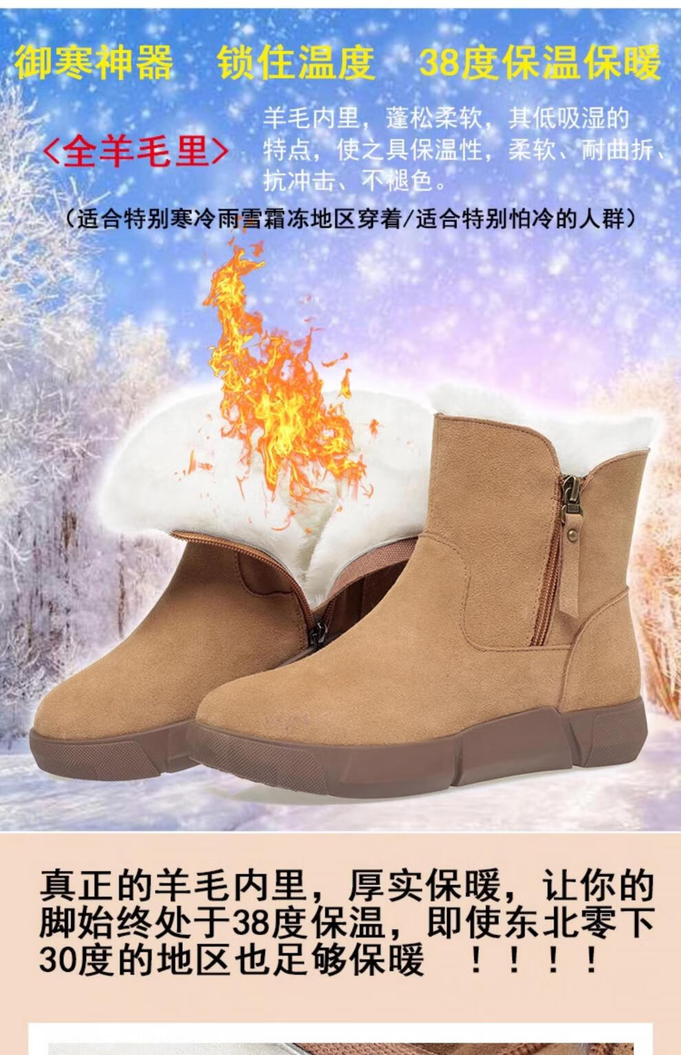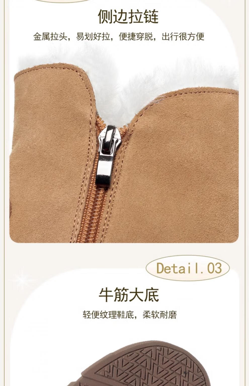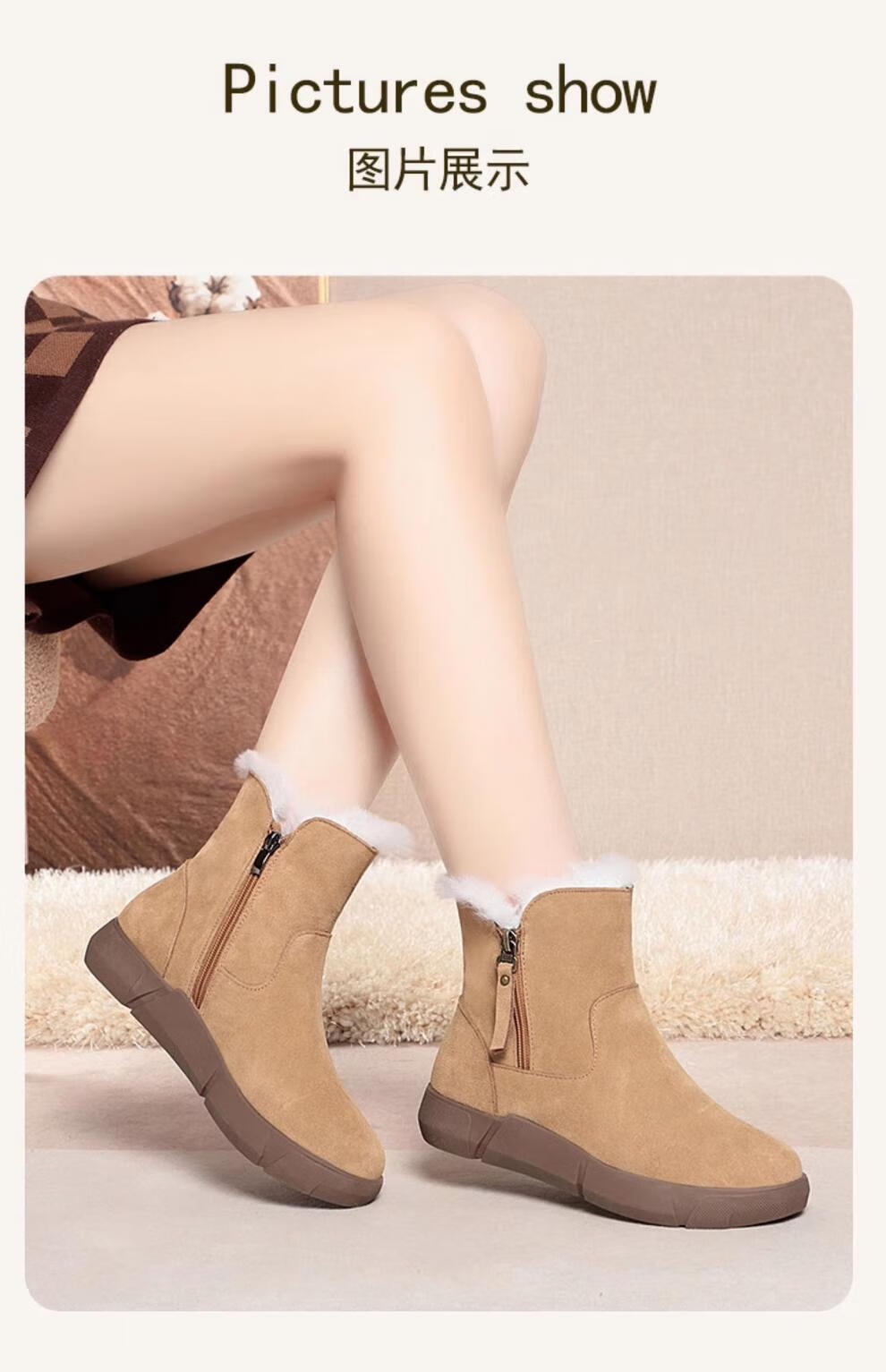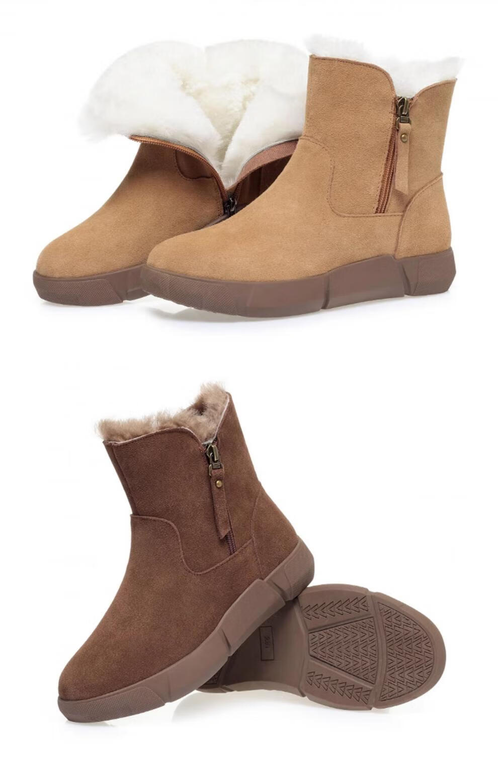 Belle fur-in-one genuine leather snow boots for women Martin boots plus velvet thick-soled short boots for women mother cotton shoes wool yellow (fleece lining) 39