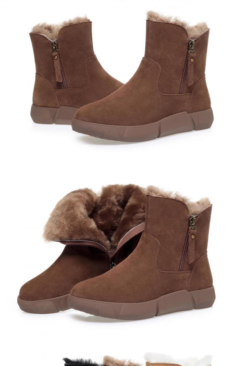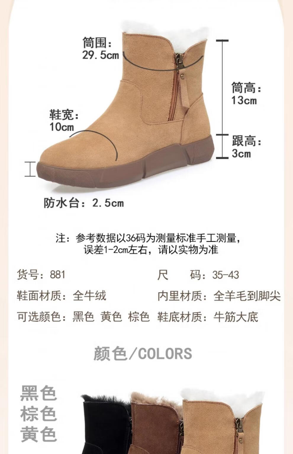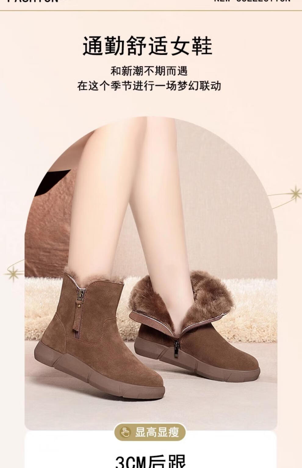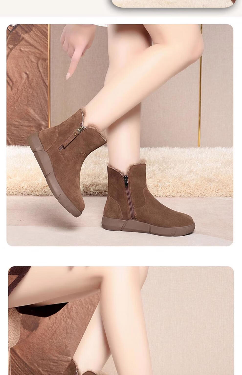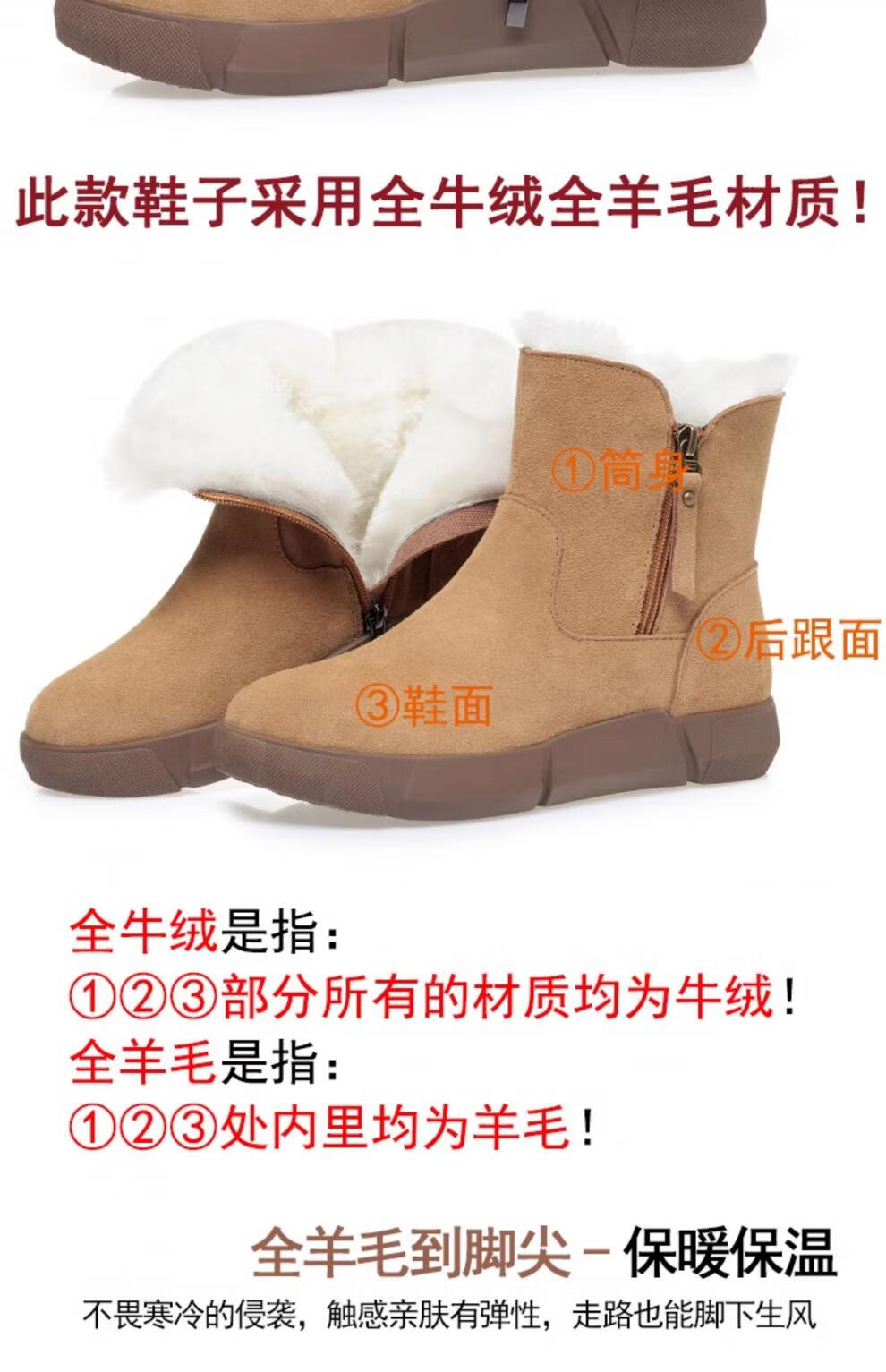 Belle fur-in-one genuine leather snow boots for women Martin boots plus velvet thick-soled short boots for women mother cotton shoes wool yellow (fleece lining) 39