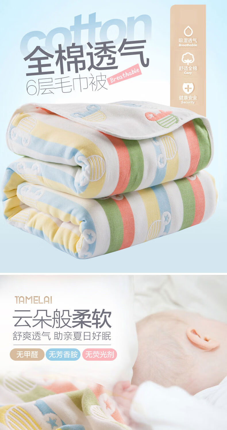 Pick-up cat six-layer gauze towel quilt single double nap quilt summer cool quilt children's baby nap blanket cover six-layer colorful cloud powder 90X100cm six-layer yarn Class A formaldehyde-free