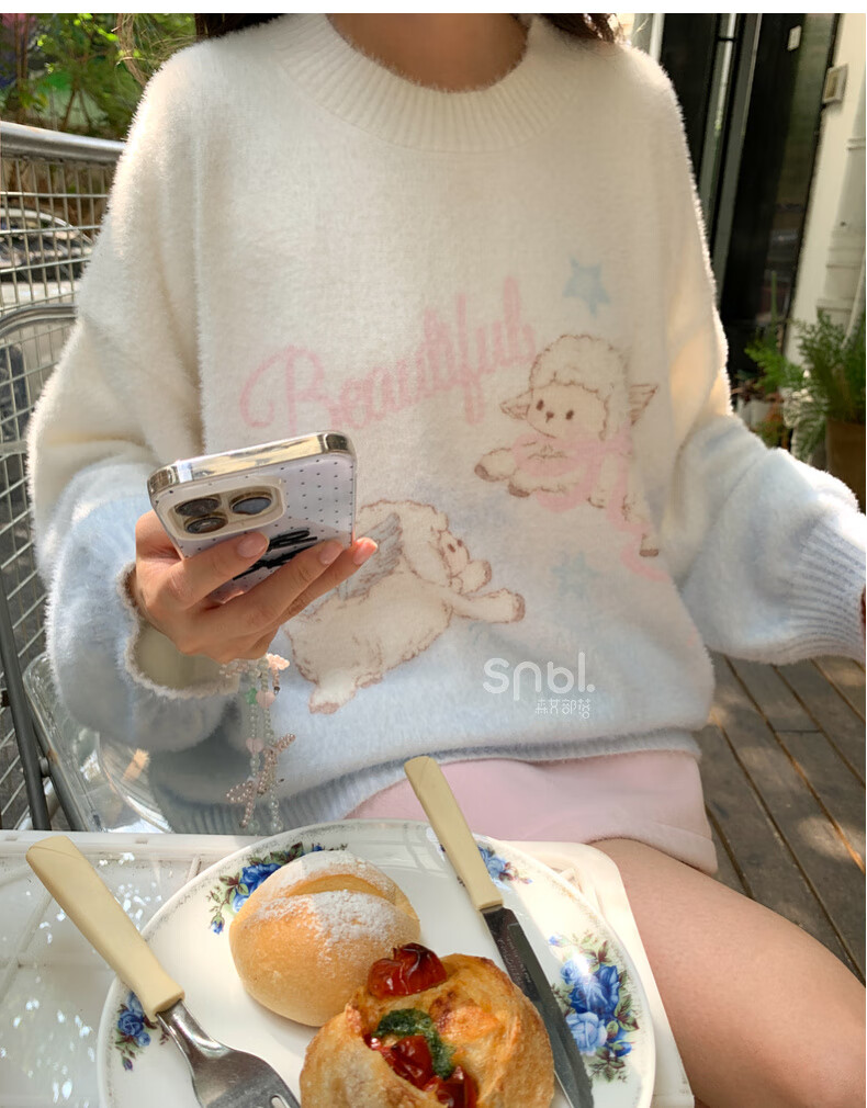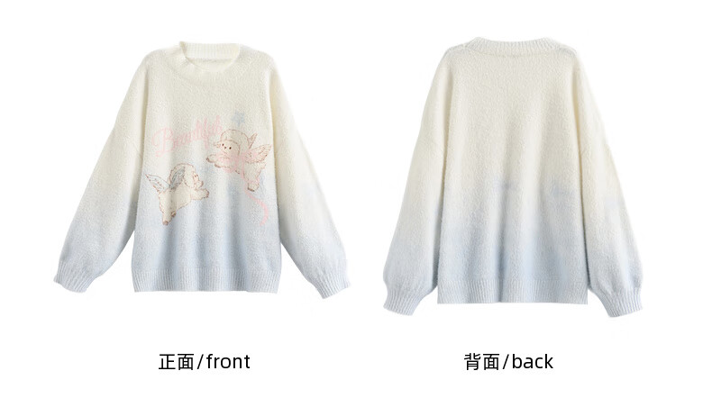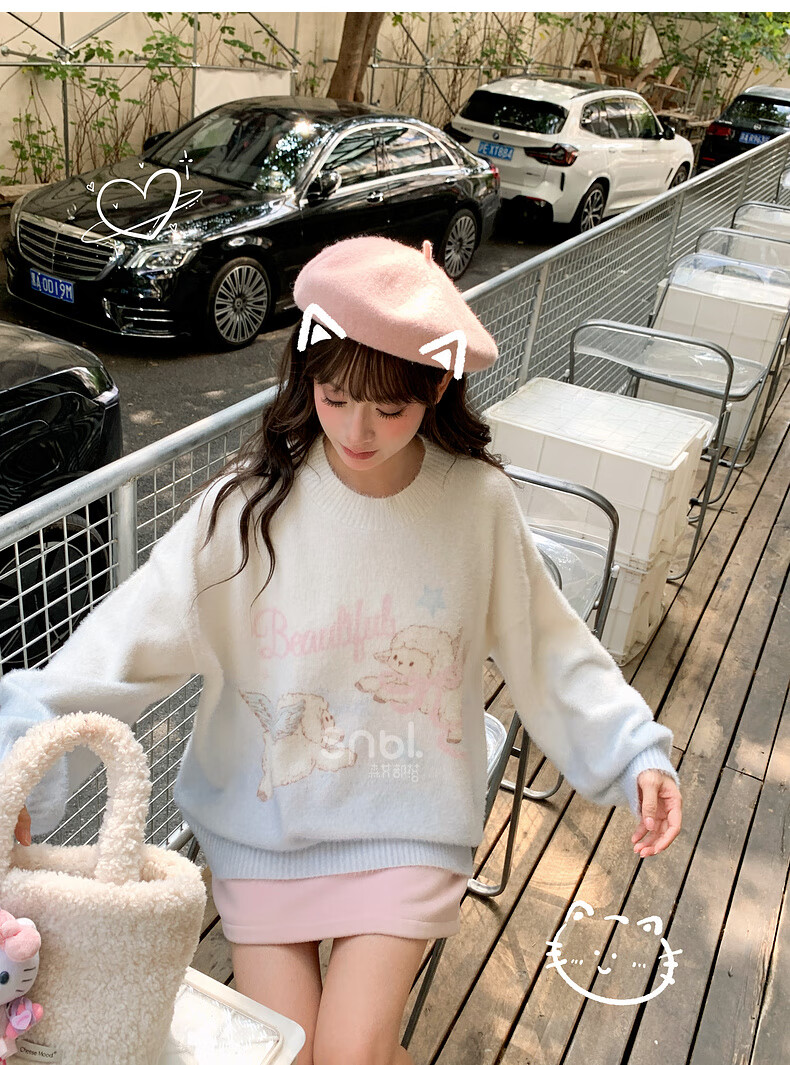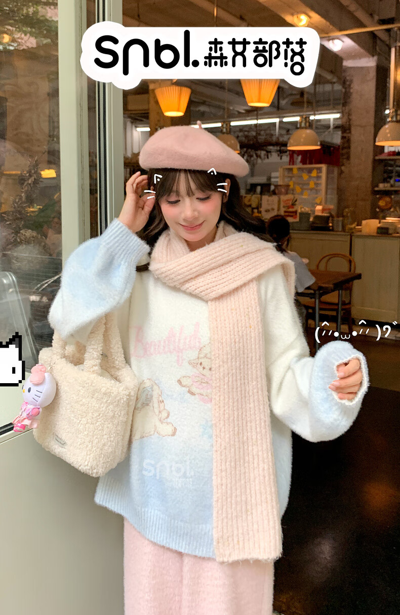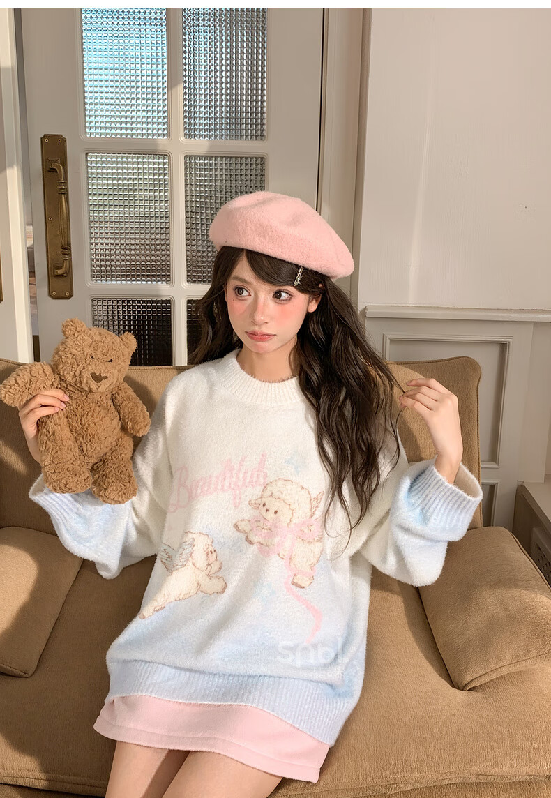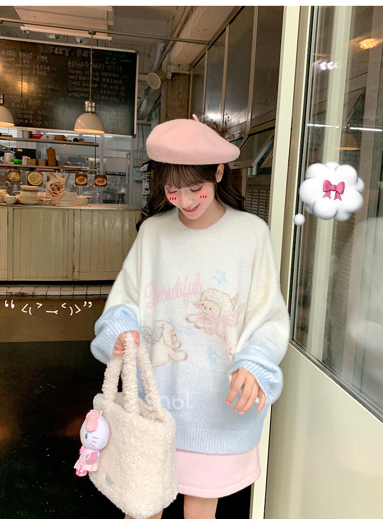 Mori Girl Tribe Sweet Style Gradient Pullover Sweater Women 2025 New Autumn Cartoon Jacquard Design Loose Top White Sweater S Model Code