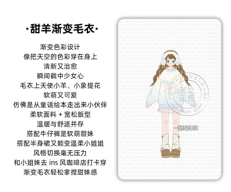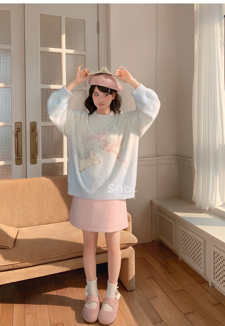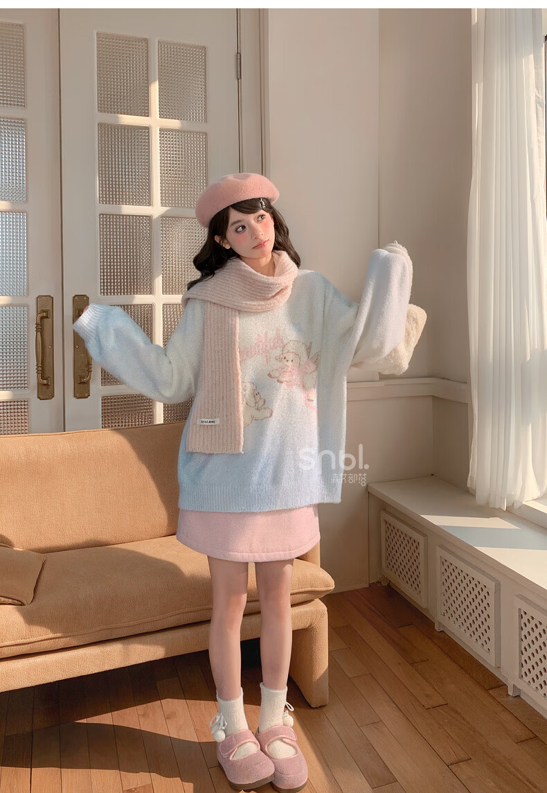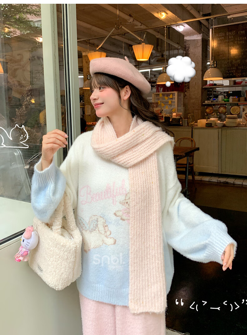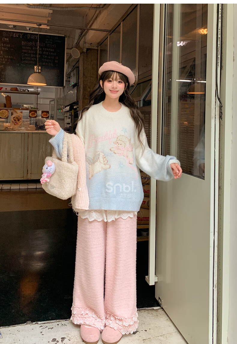 Mori Girl Tribe Sweet Style Gradient Pullover Sweater Women 2025 New Autumn Cartoon Jacquard Design Loose Top White Sweater S Model Code