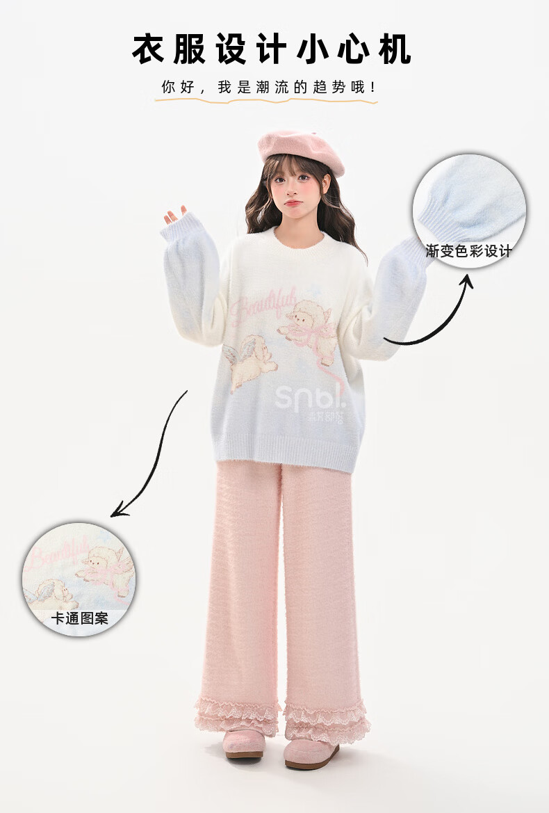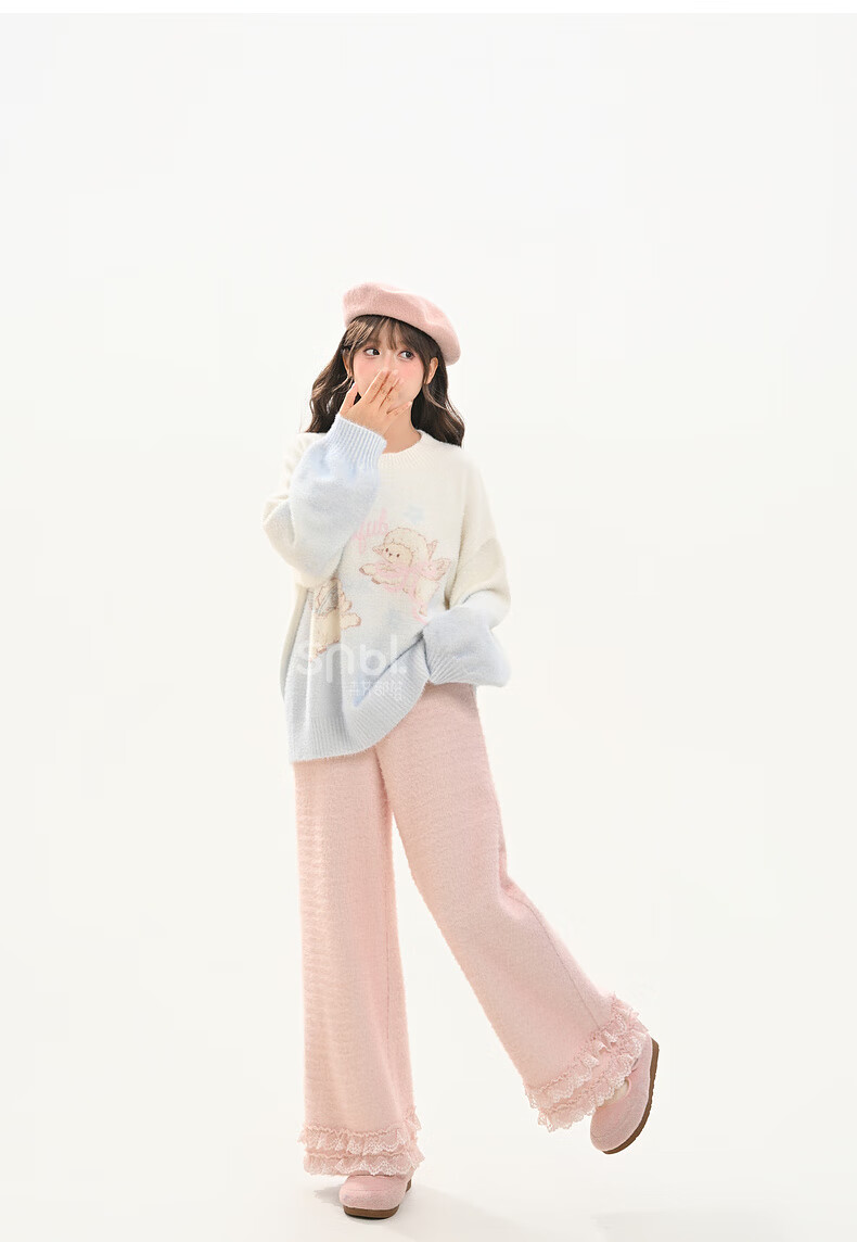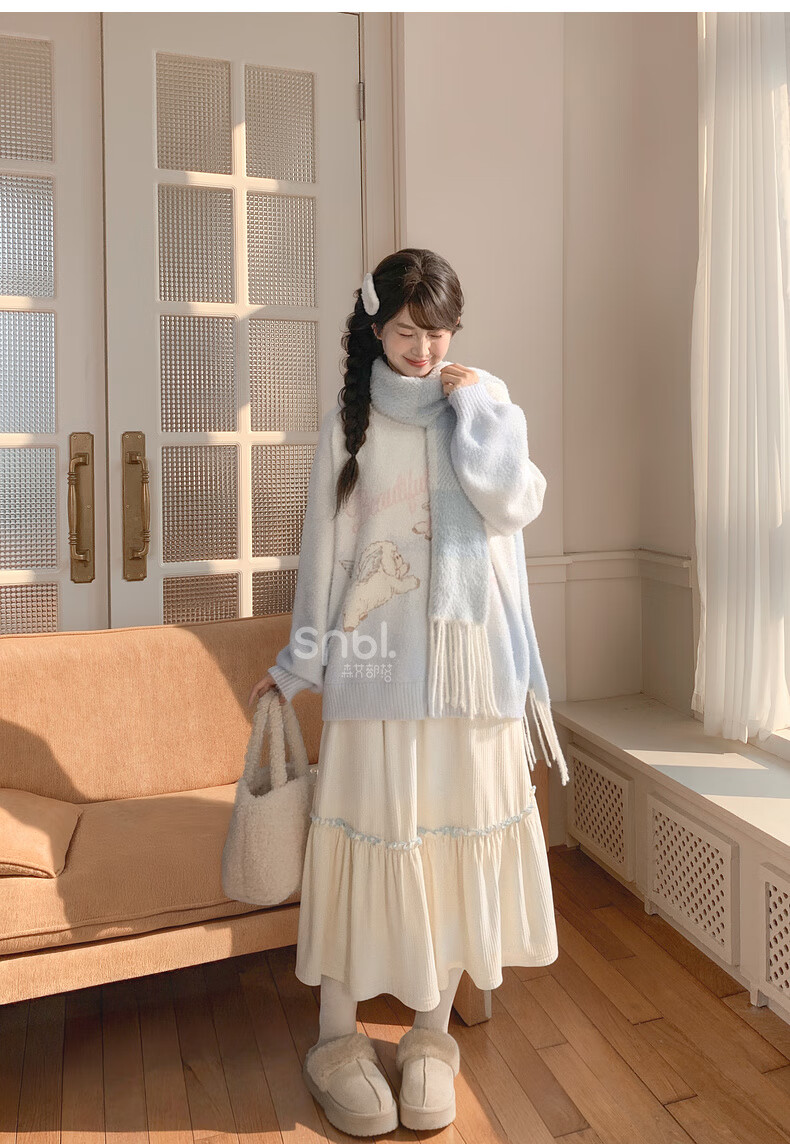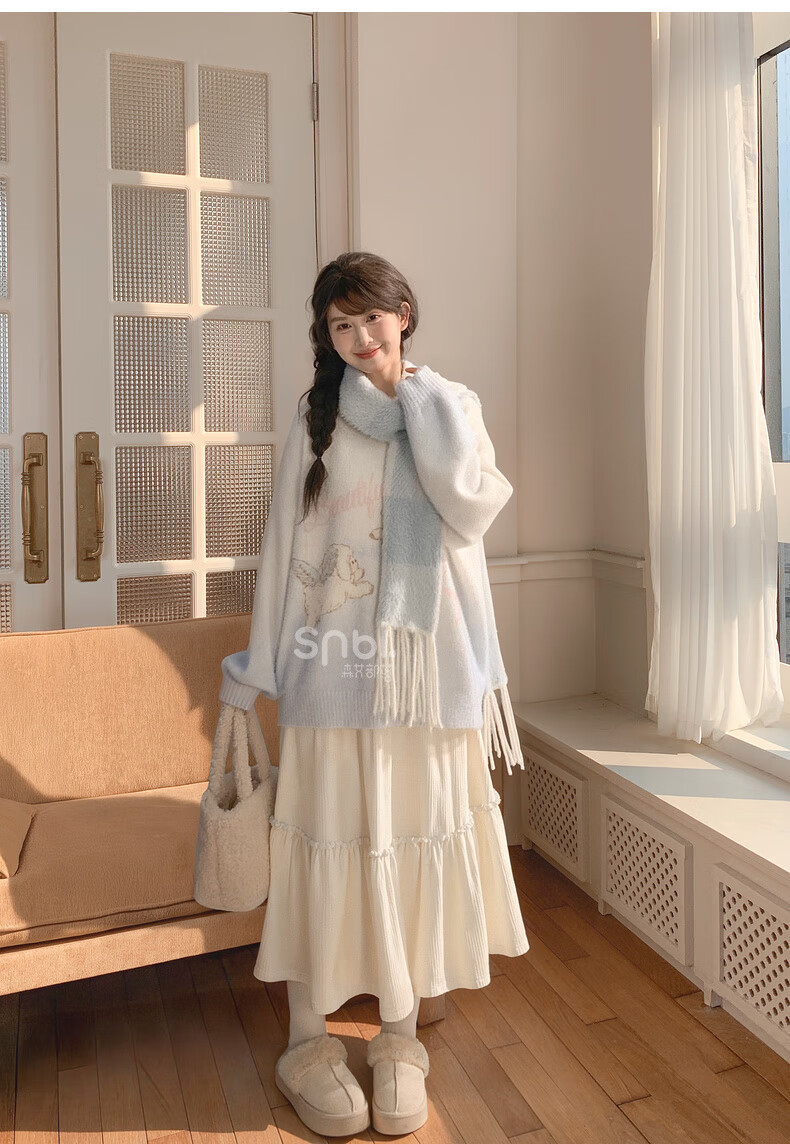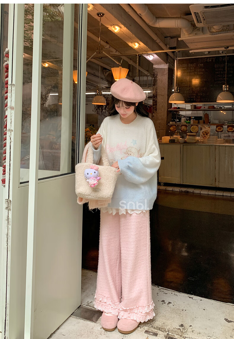 Mori Girl Tribe Sweet Style Gradient Pullover Sweater Women 2025 New Autumn Cartoon Jacquard Design Loose Top White Sweater S Model Code