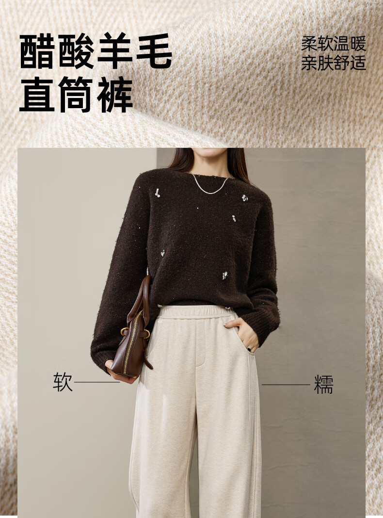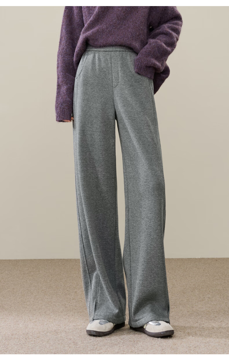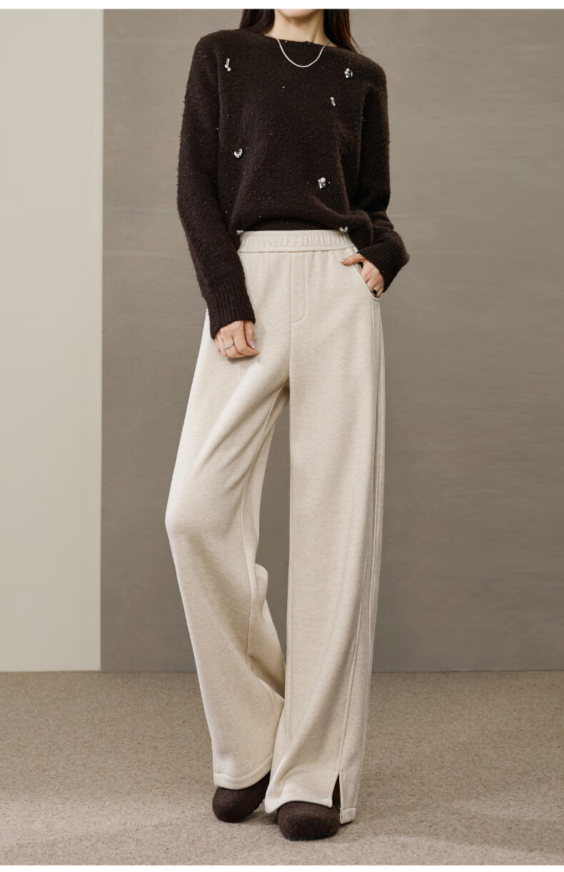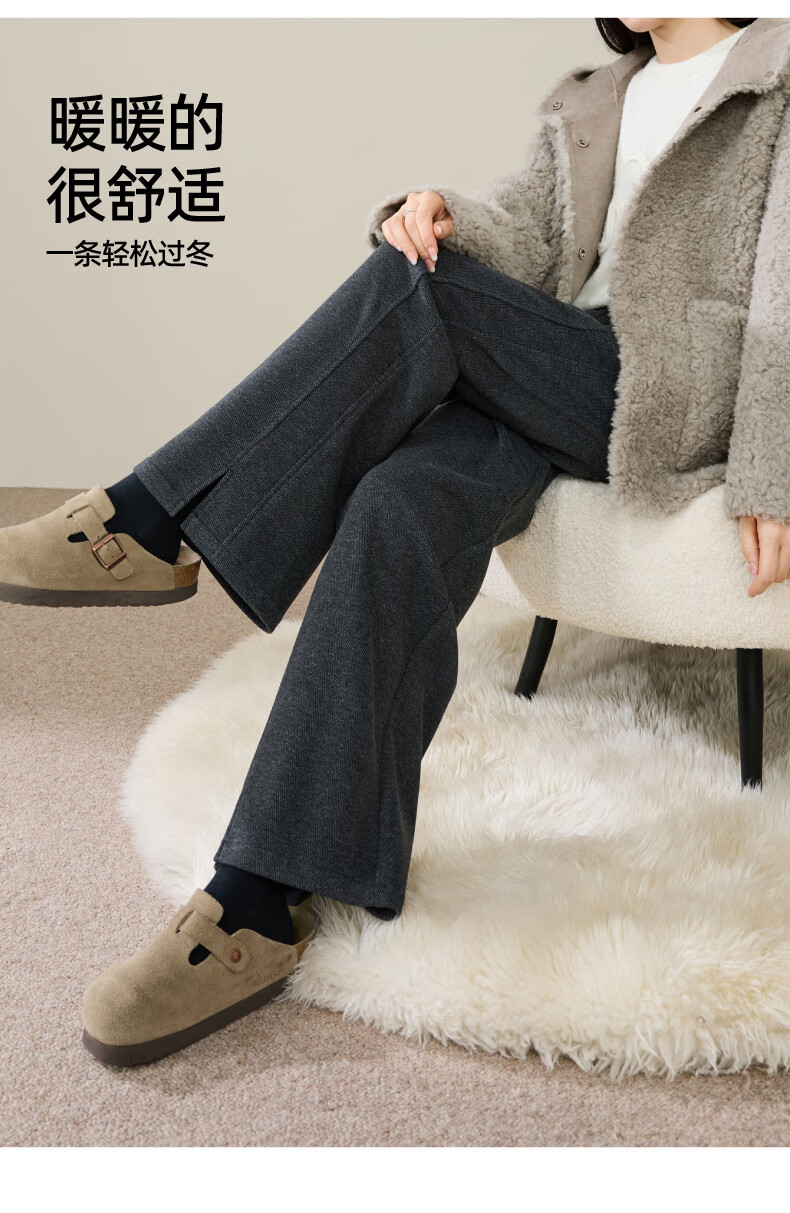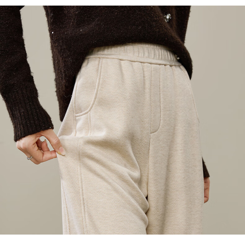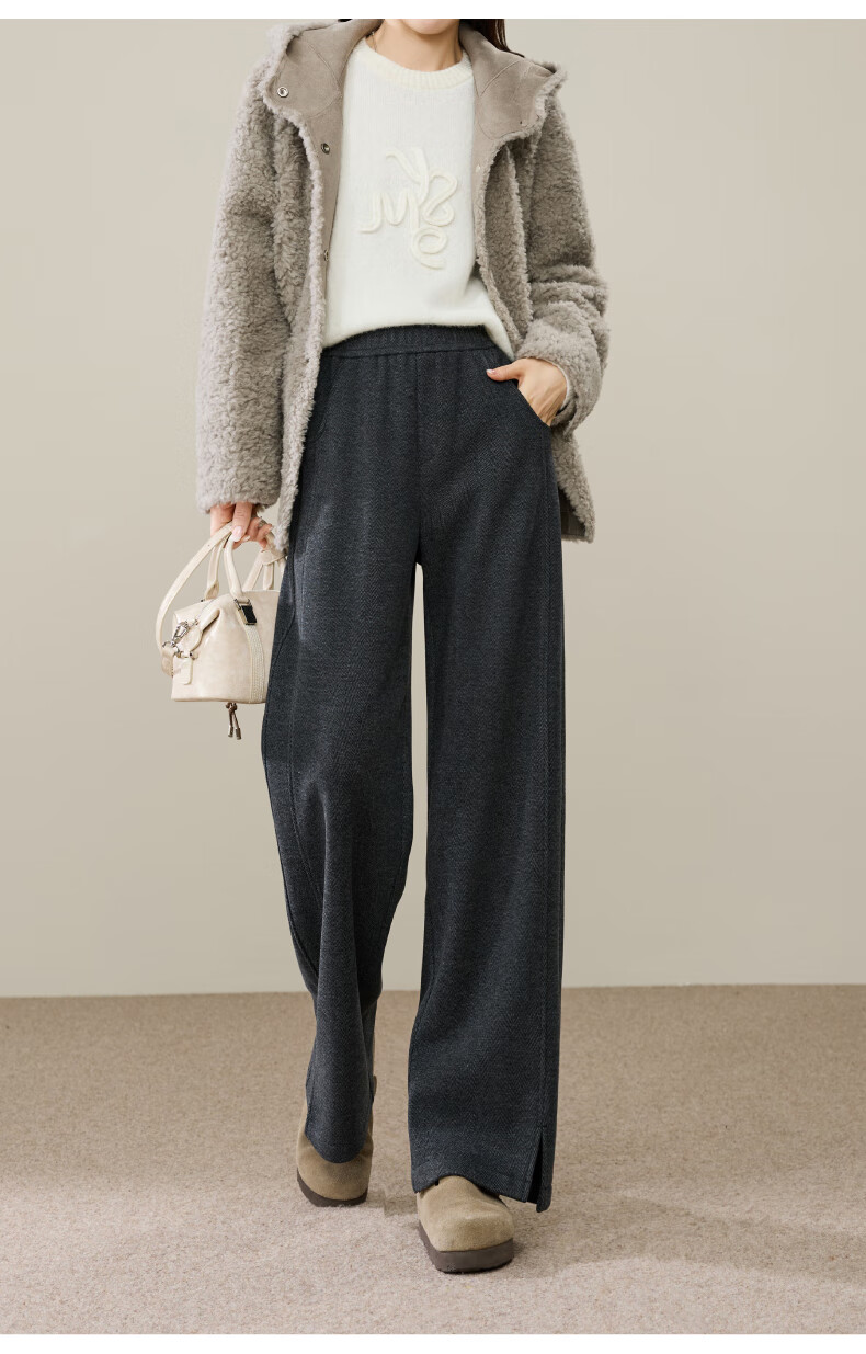 ESE-Y herringbone pattern acetate wool plus velvet narrow straight pants for women winter thick high waist drape casual wide leg white pants black gray 28