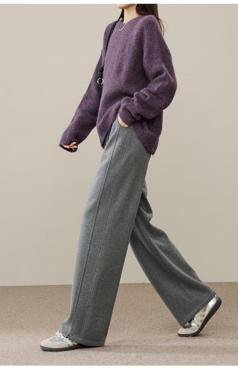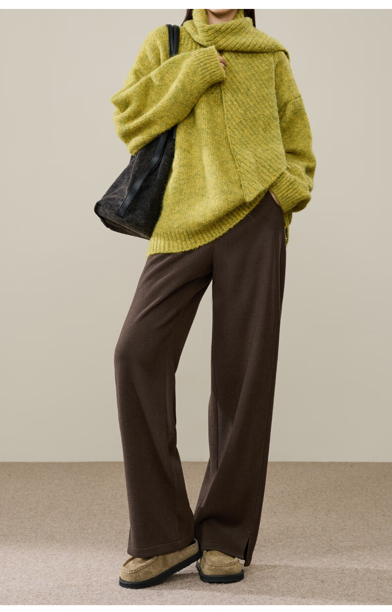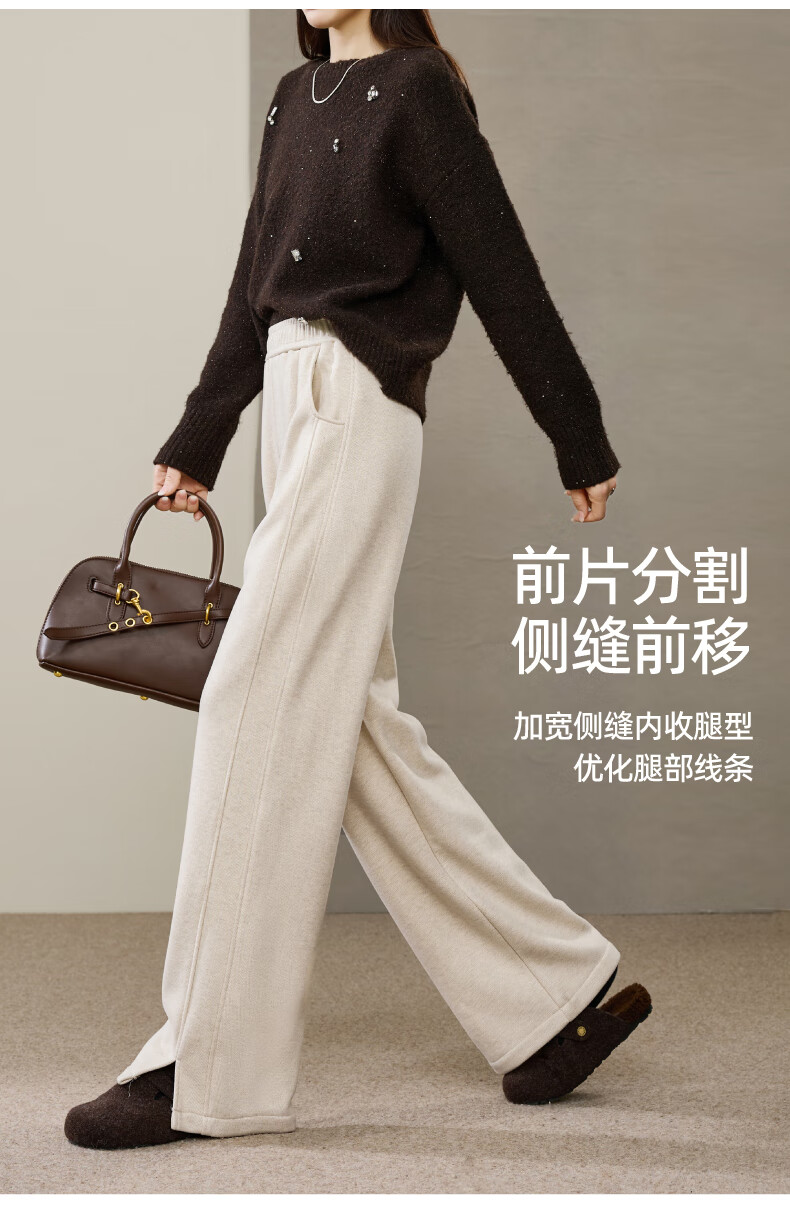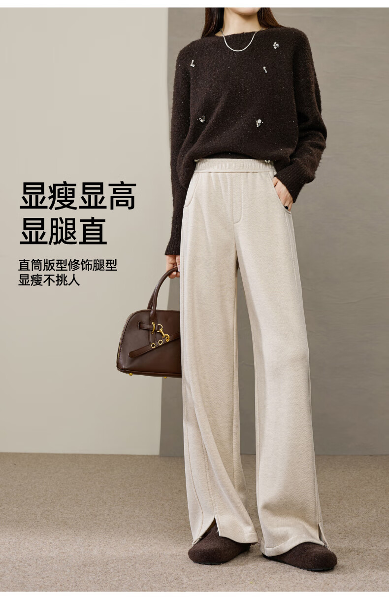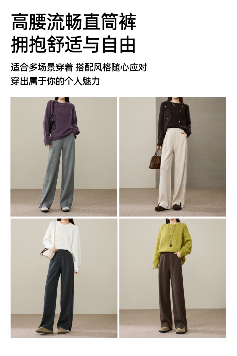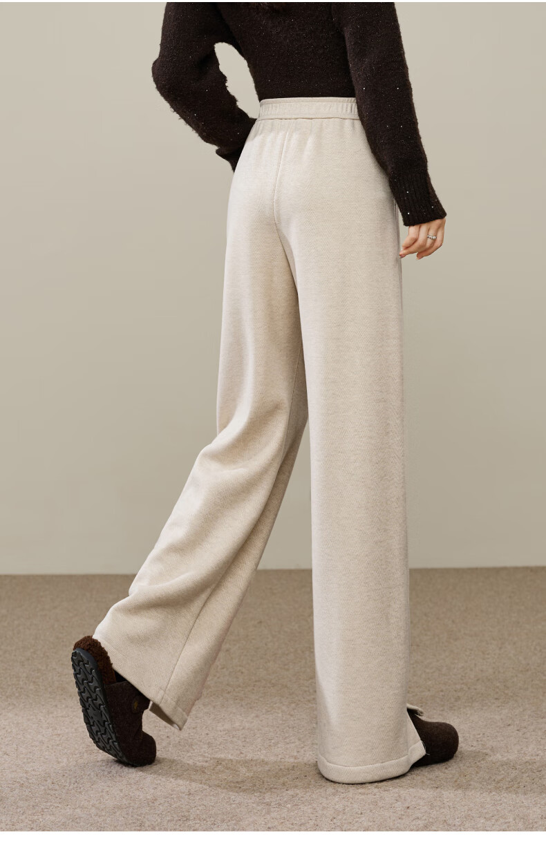 ESE-Y herringbone pattern acetate wool plus velvet narrow straight pants for women winter thick high waist drape casual wide leg white pants black gray 28