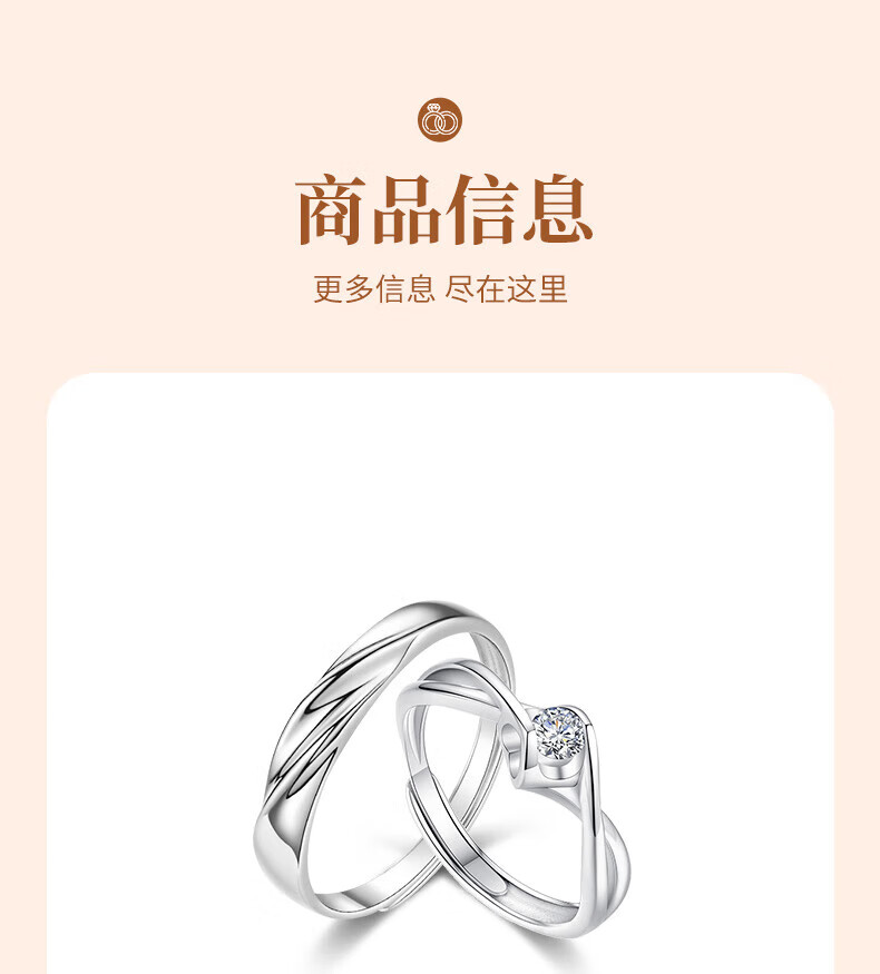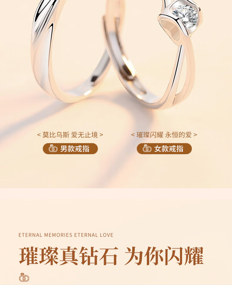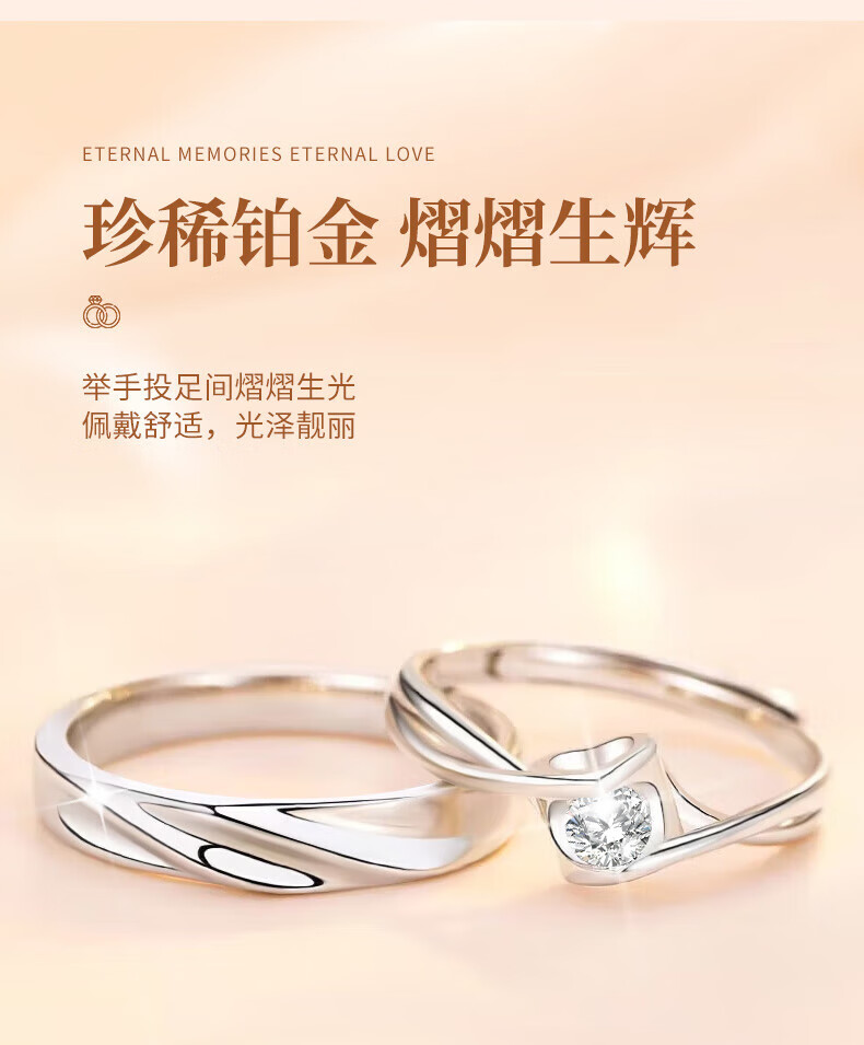Ji Sifan Light Luxury Platinum Ring Couple Ring Pair of Fashion Jewelry Simple High-end Birthday Gift for Wife on Anniversary Eternal Love Couple Ring Platinum Style Live Design Adjustable