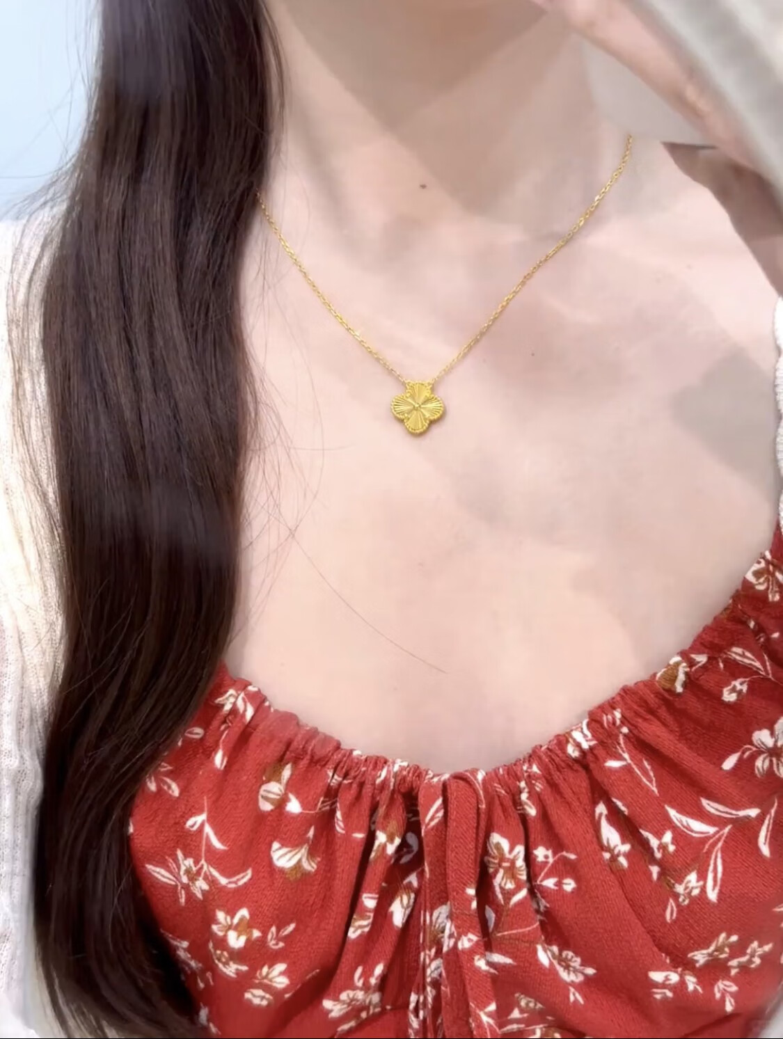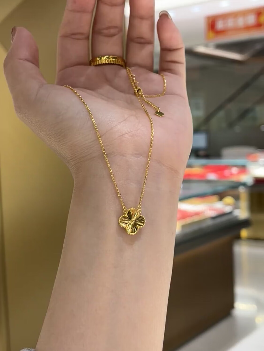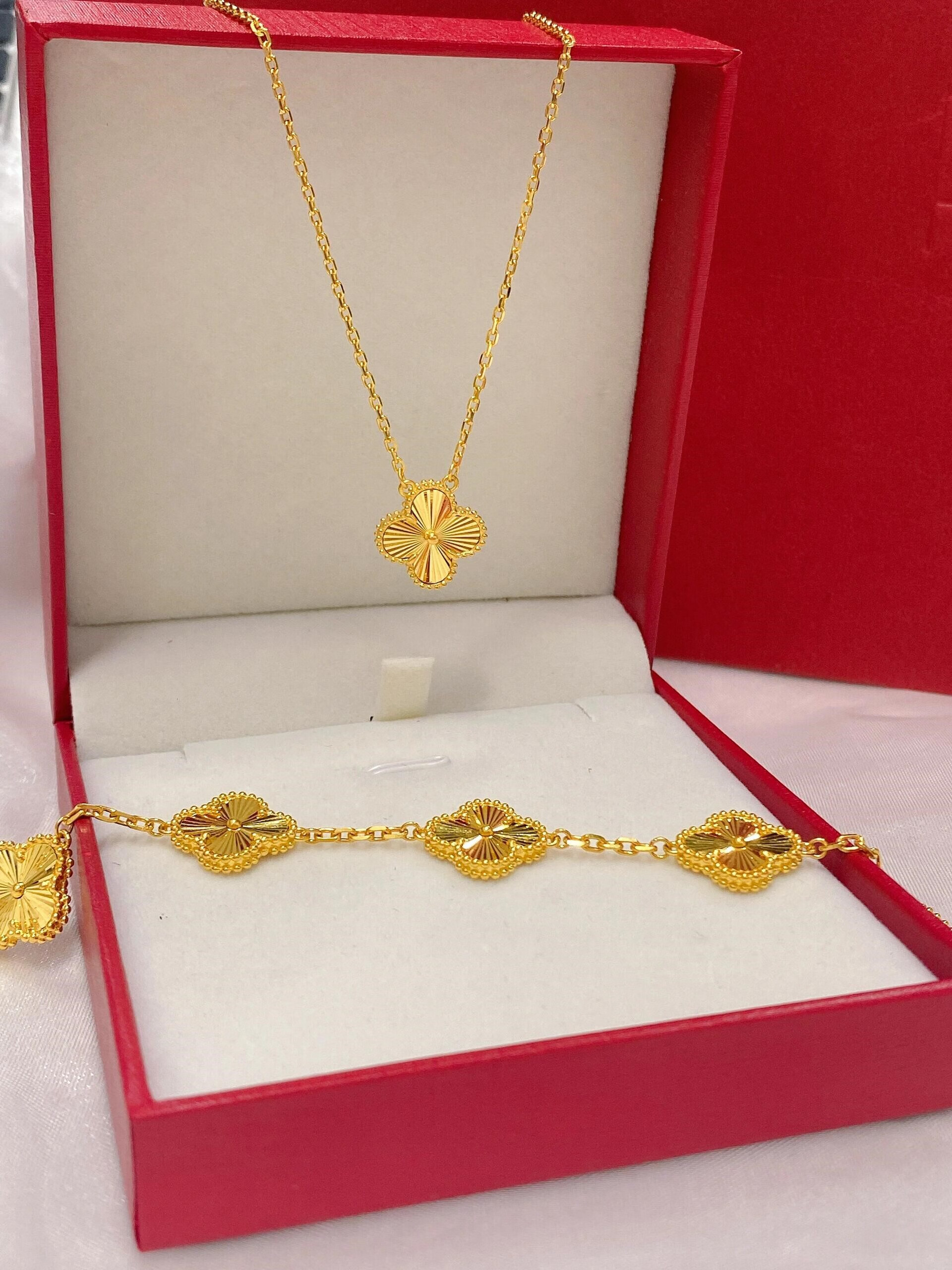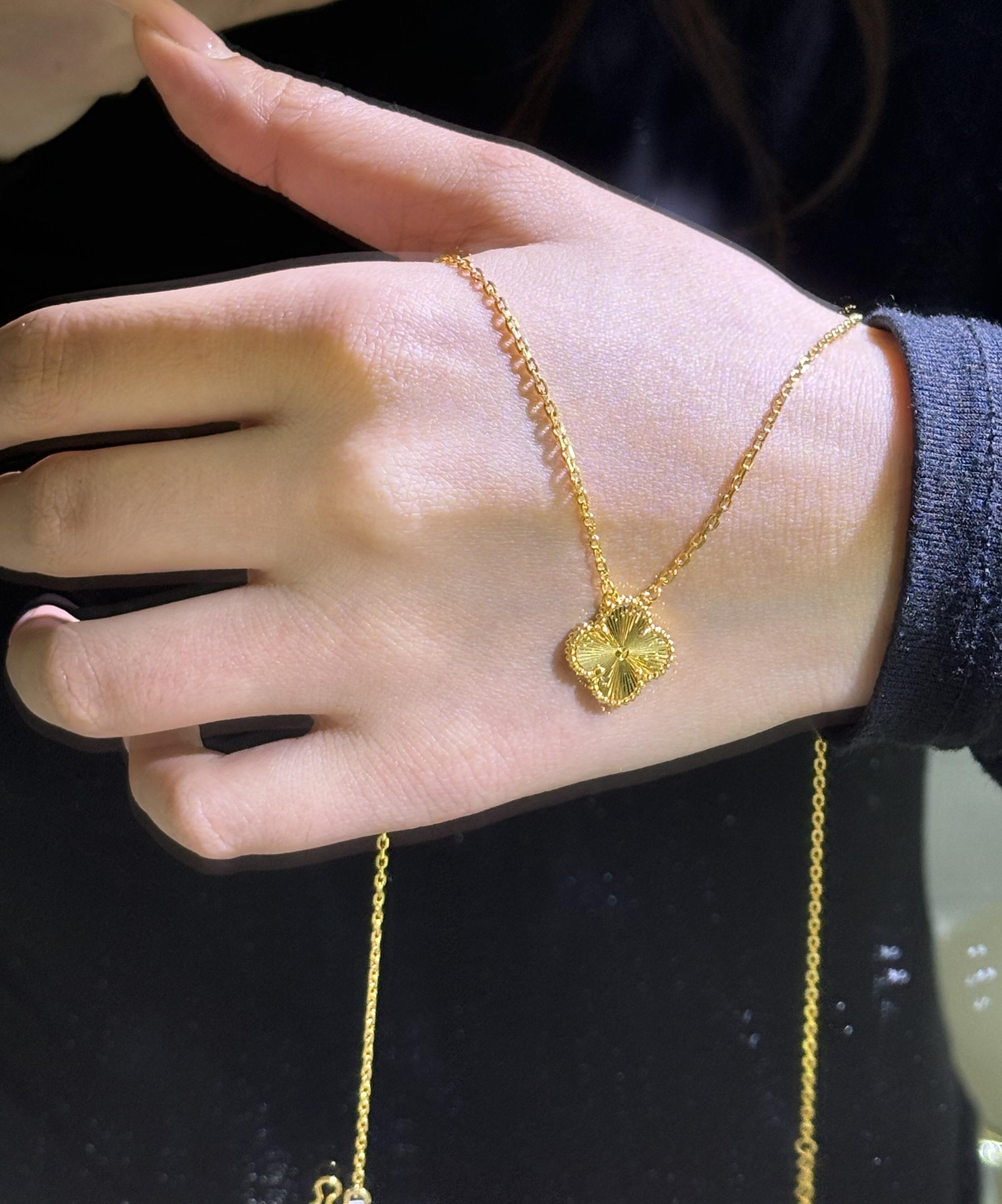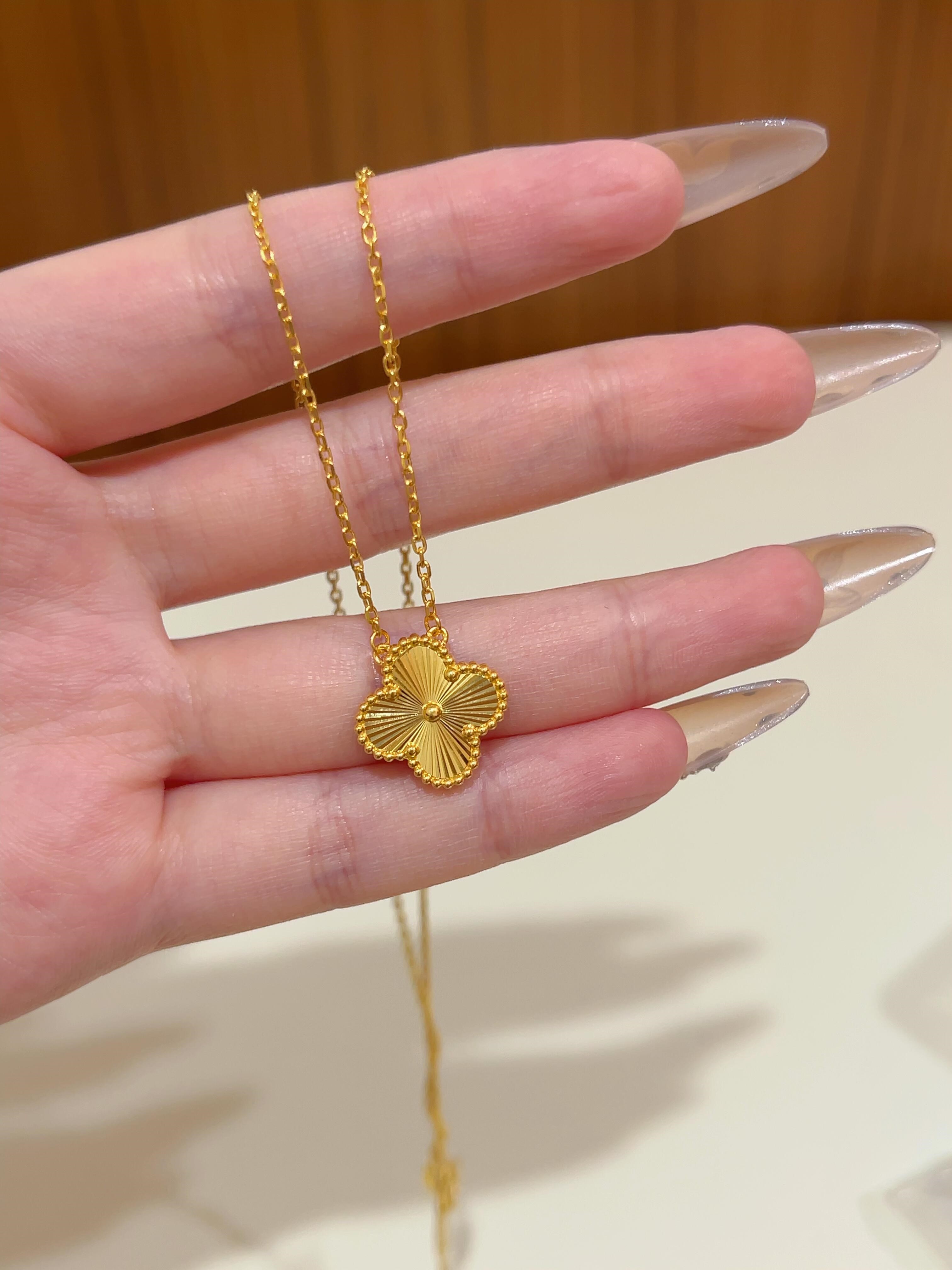 Lao Phoenix 999 Vietnamese sand gold lucky four-leaf clover necklace simulated gold laser clavicle chain light luxury four-leaf clover necklace about 40cm 5cm extension cord
