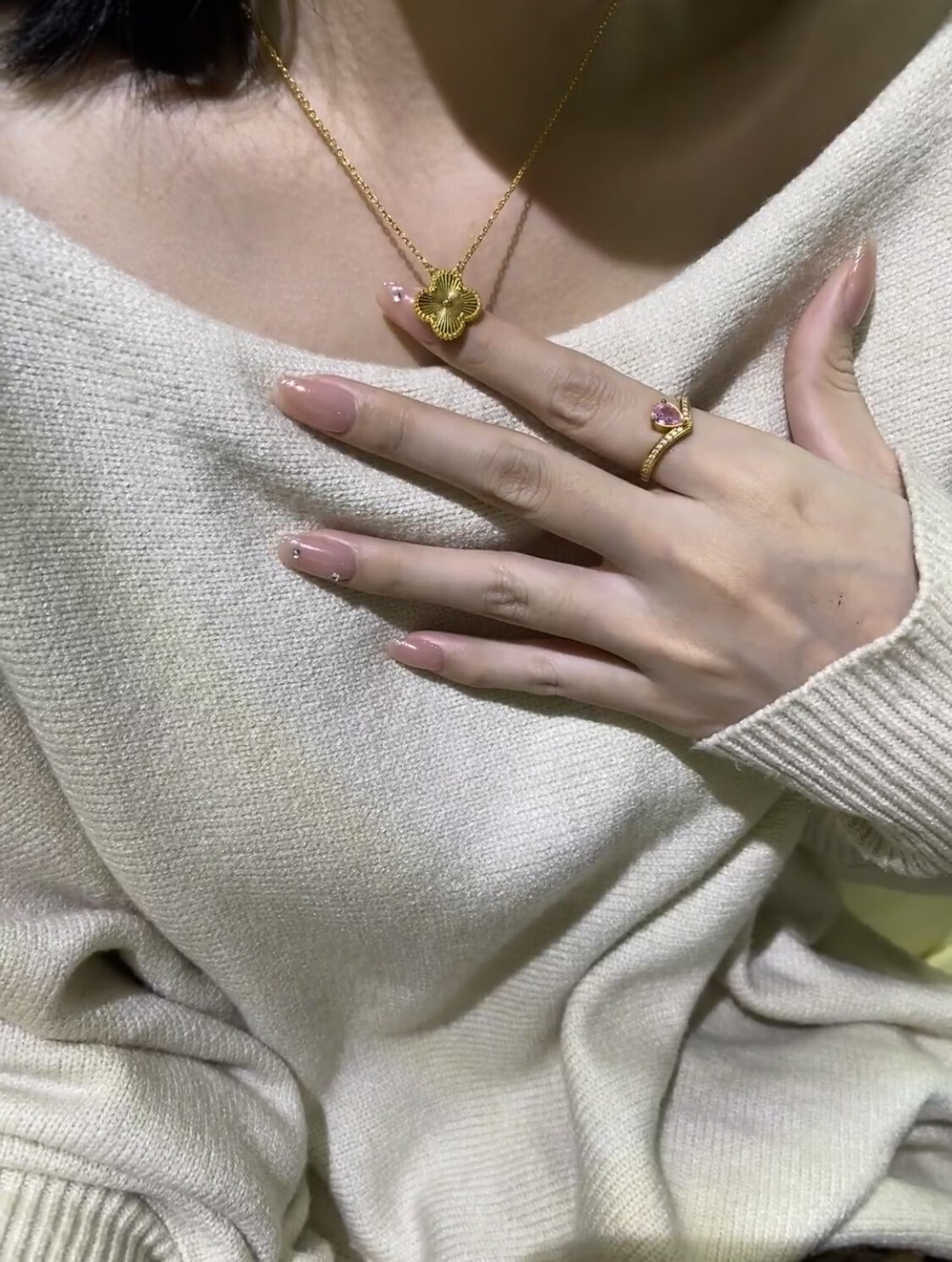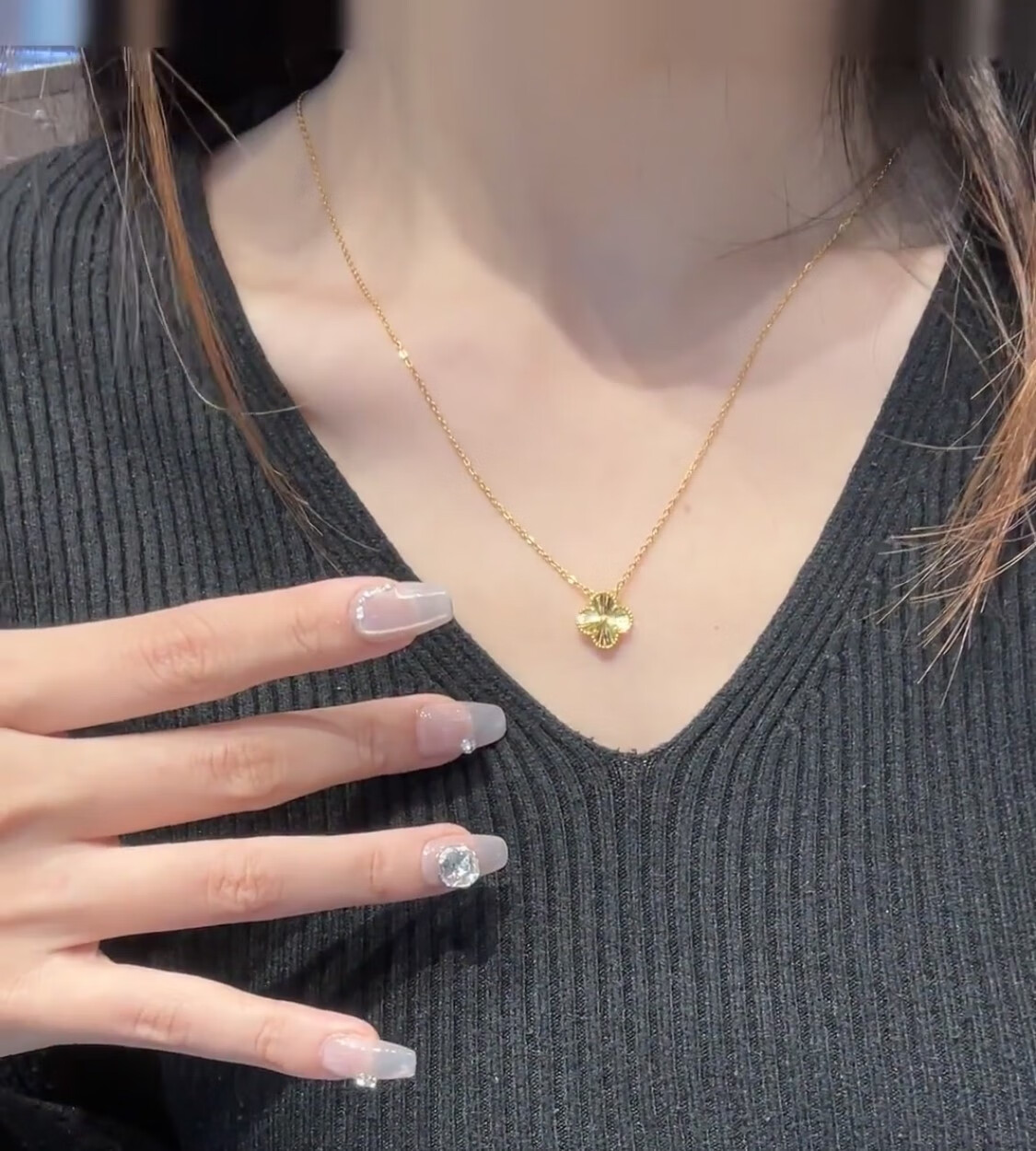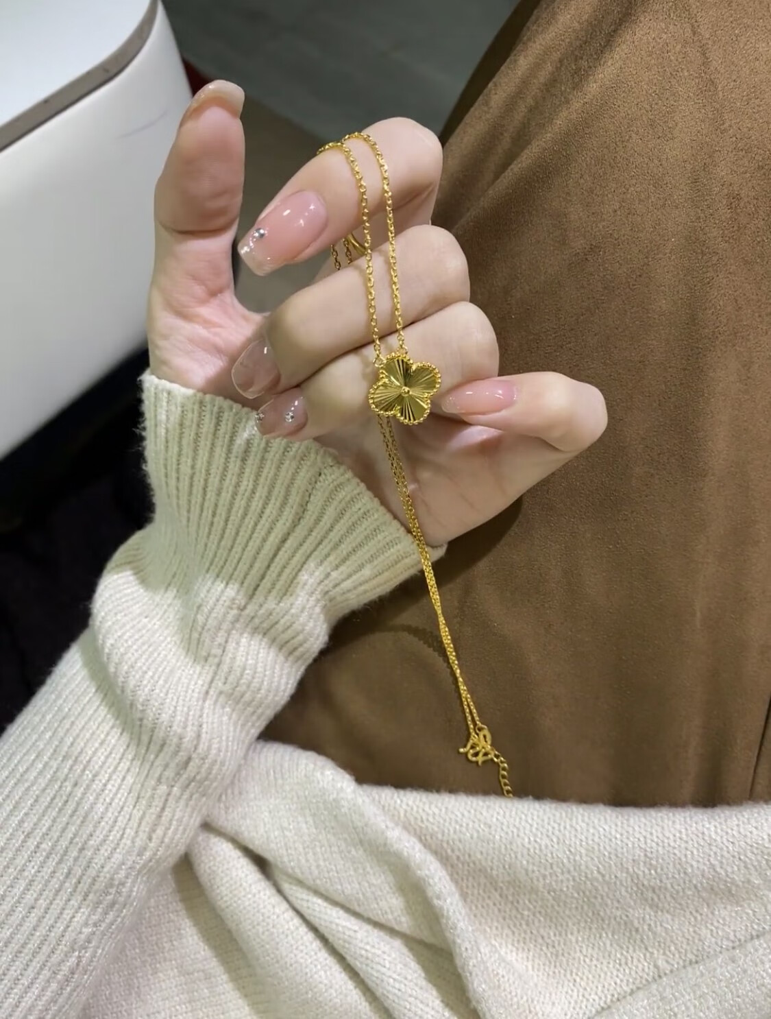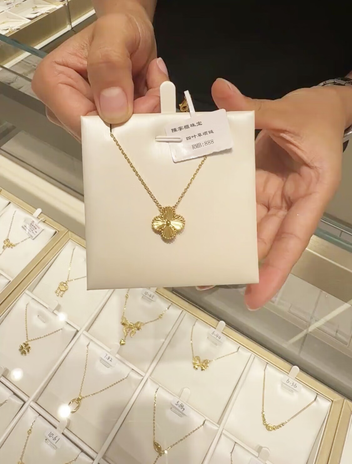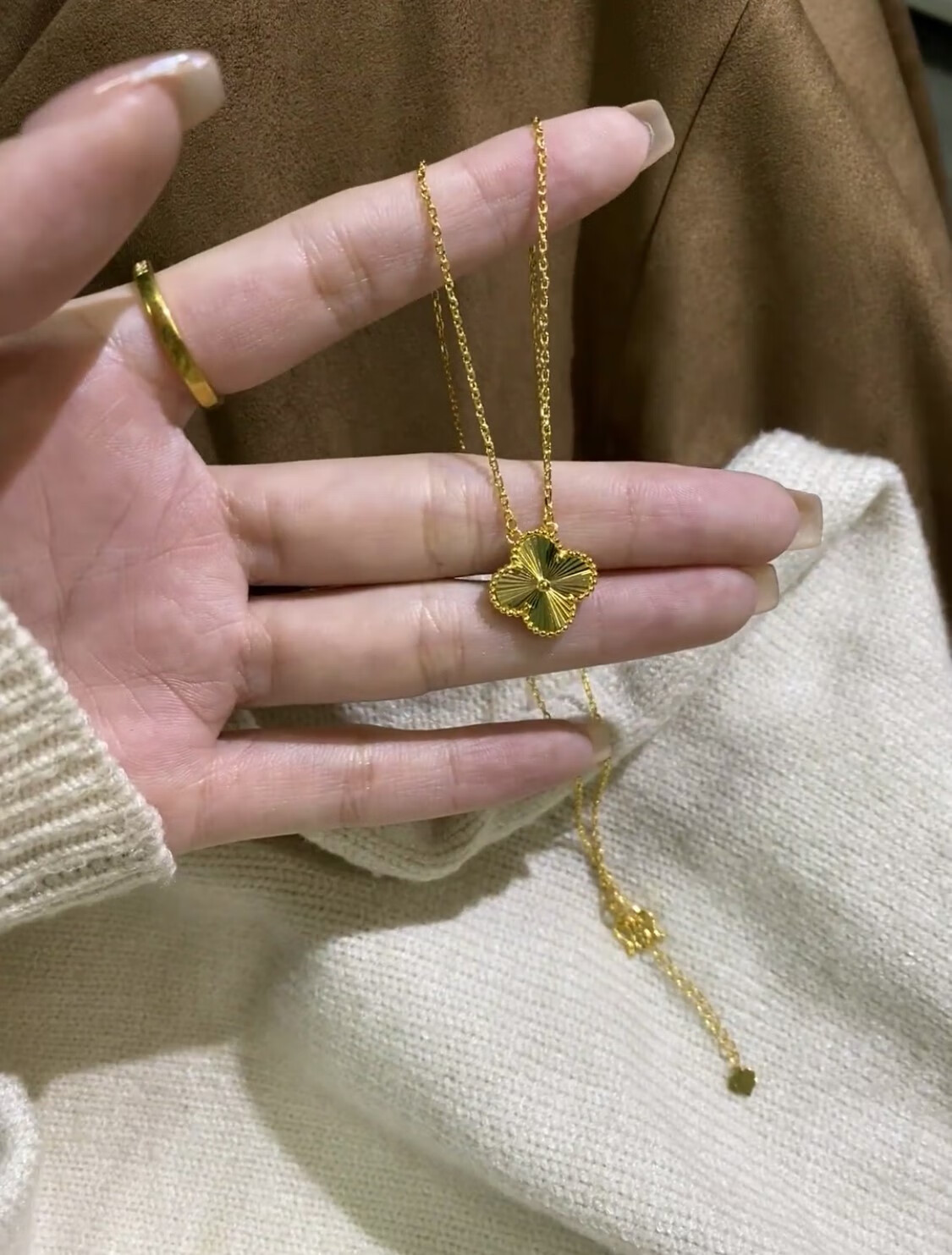 Lao Phoenix 999 Vietnamese sand gold lucky four-leaf clover necklace simulated gold laser clavicle chain light luxury four-leaf clover necklace about 40cm 5cm extension cord