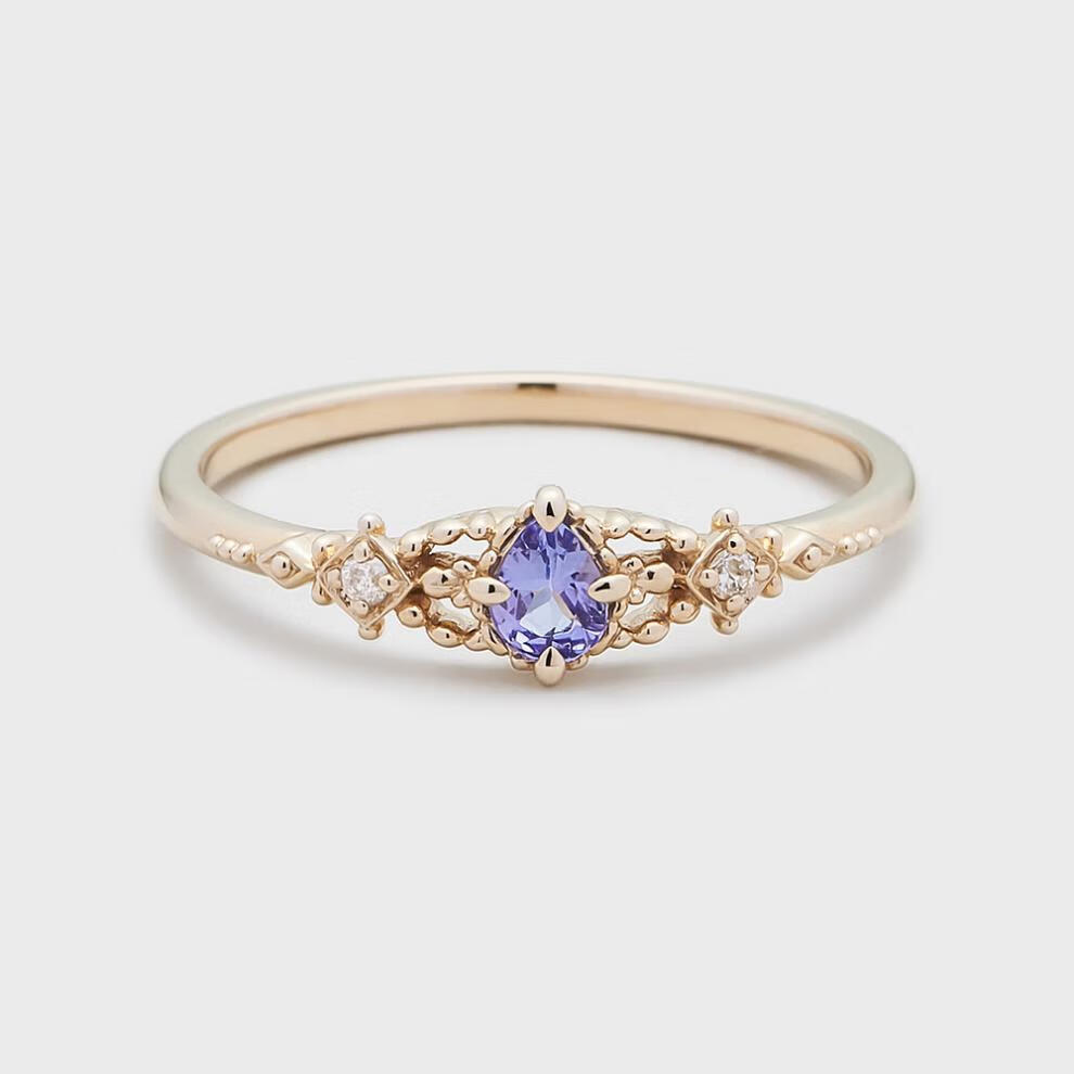 Zhanbo Japanese Light Luxury Niche Violet Vine Tanzanite 925 Silver Ring Simple and Versatile Silver Ring Ring No. 5 Opening Adjustable