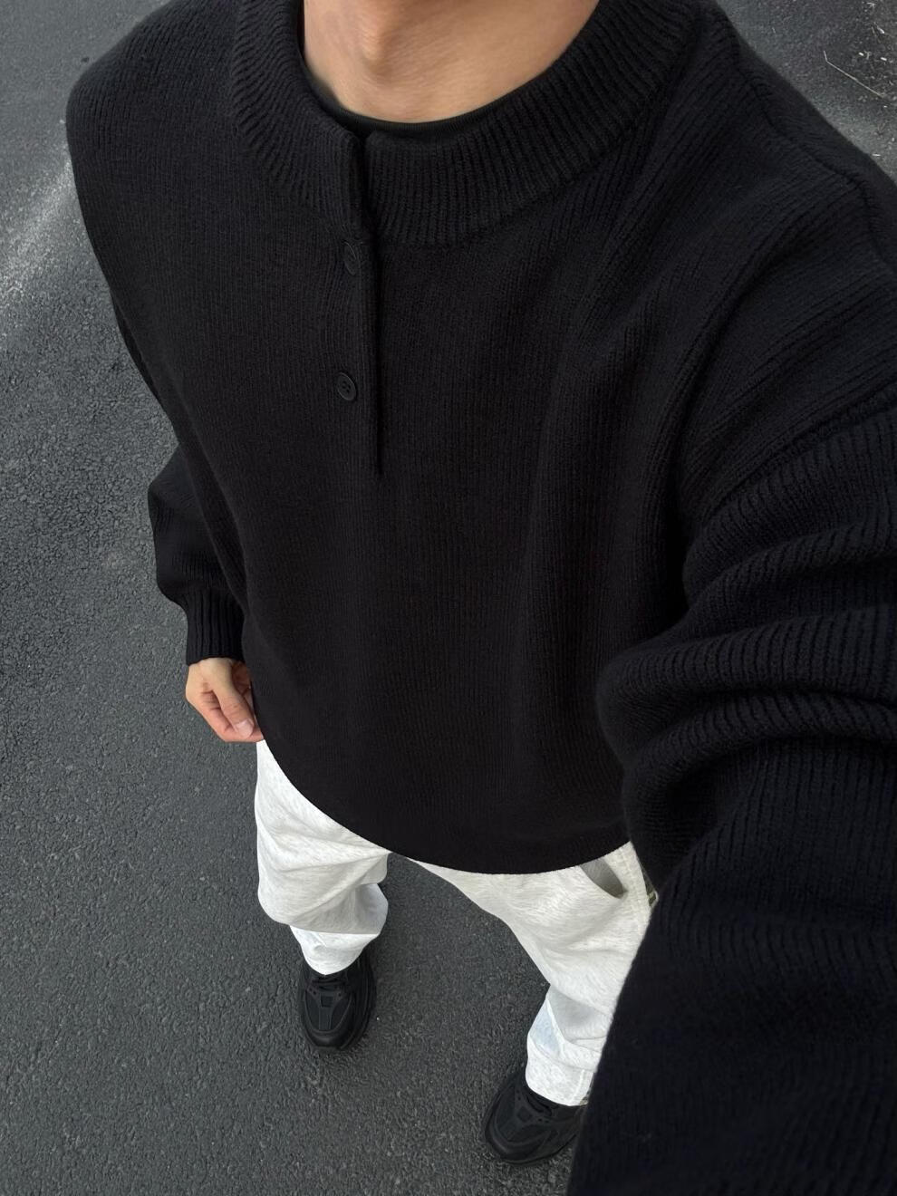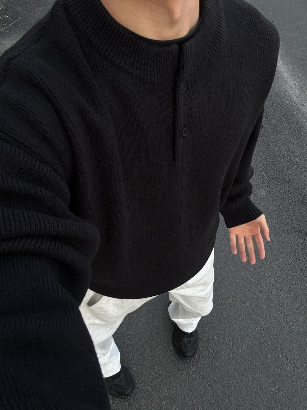 JEEP SPIRIT black Henry collar sweater men's spring and autumn mature and stable POLO knitted bottoming shirt lazy style inner sweater black M